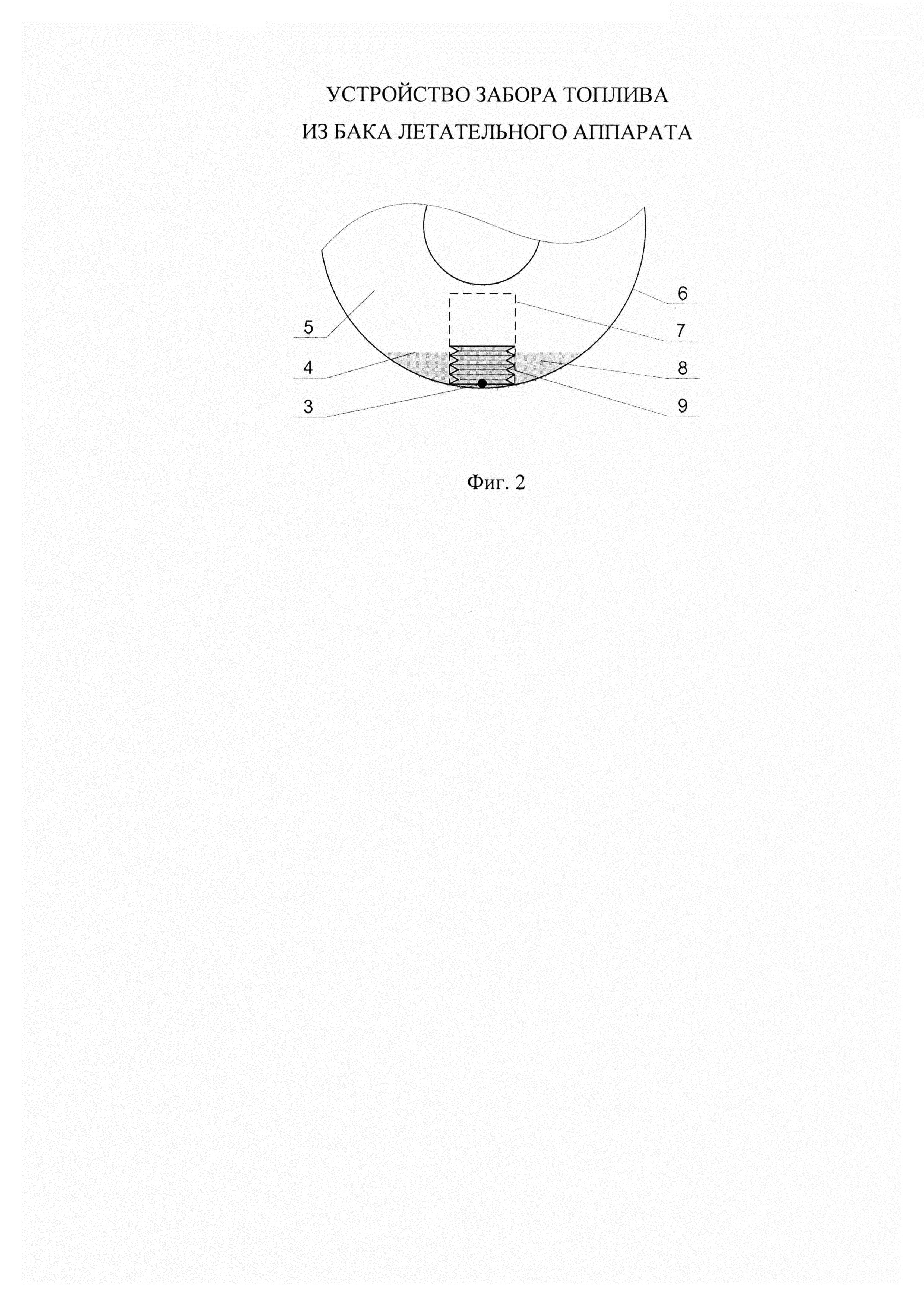 Изобретение относится к устройствам забора топлива из бака высокоманевренного летательного аппарата, использующего в системе топливоподачи капиллярные заборные устройства. Устройство забора топлива из бака летательного аппарата представляет собой размещенную в баке тонкостенную оболочку с проницаемой боковой поверхностью. Одна торцевая поверхность оболочки соединена с трубопроводом забора топлива, другая заглушена. Боковая поверхность оболочки выполнена с возможностью капиллярного разделения газовой и жидкой фаз из капиллярного объемно-пористого сетчатого материала с разбросом структурных параметров, определяющих его капиллярную удерживающую способность, не более 10%. Боковая поверхность оболочки может быть выполнена в виде гофр. Техническим результатом изобретения является обеспечение минимизации остатков топлива в процессе его выработки из бака в условиях эксплуатации летательного аппарата. 1 з.п. ф-лы, 2 ил.