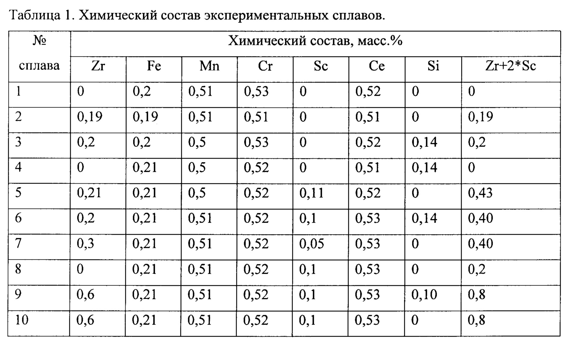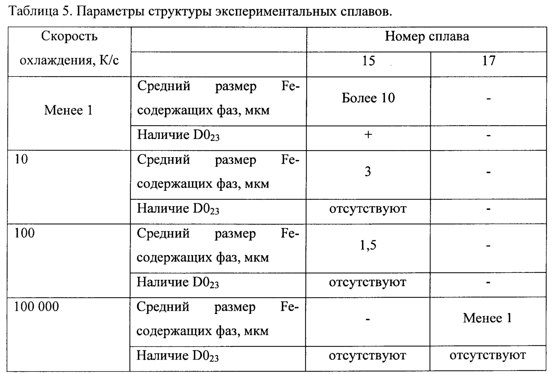 1. Алюминиевый сплав, содержащий цирконий, железо, марганец, хром, скандий и необязательно магний, отличающийся тем, что он дополнительно содержит по меньшей мере один эвтектикообразующий элемент, выбранный из группы, содержащей кремний, церий и кальций, при следующем соотношении компонентов, мас. %: цирконий от 0,10 до 0,50 железо от 0,10 до 0,30 марганец от 0,40 до 1,5 хром от 0,15 до 0,6 скандий от 0,09 до 0,25 титан от 0,02 до 0,10 по меньшей мере один элемент, выбранный из группы: кремний от 0,10 до 0,50 церий от 0,10 до 5,0 кальций от 0,10 до 2,0 необязательно магний от 2,0 до 5,2 алюминий и неизбежные примеси остальное, при этом структура сплава представляет собой алюминиевую матрицу, содержащую кремний и необязательно магний, вторичные выделения фаз Al3(Zr,X) с решеткой типа L12 и с размером не более 20 нм, где X-Ti и/или Sc, вторичные выделения Al6Mn и Al7Cr, и эвтектические фазы, содержащие железо и по меньшей мере один элемент из группы, содержащей кальций и церий, со средним размером частиц не более 1 мкм, при следующем соотношении фаз, мас. %: 2. Сплав по п. 1, отличающийся тем, что расстояние между частицами фаз Al3(Zr,X) вторичных выделений составляет не более 50 нм. 3. Сплав по п. 1, отличающийся тем, что содержание циркония, скандия и титана в сплаве удовлетворяют следующему условию: Zr+Sc*2+Ti>0,4 мас. %.вторичные выделения Al3(Zr,Sc) 0,5-1,0 вторичные выделения Al6Mn и Al7Cr 2,0-3,0 эвтектические фазы, содержащие железо и по меньшей мере один элемент из группы, содержащей кальций и кремний 0,5-6,0 алюминиевая матрица остальное