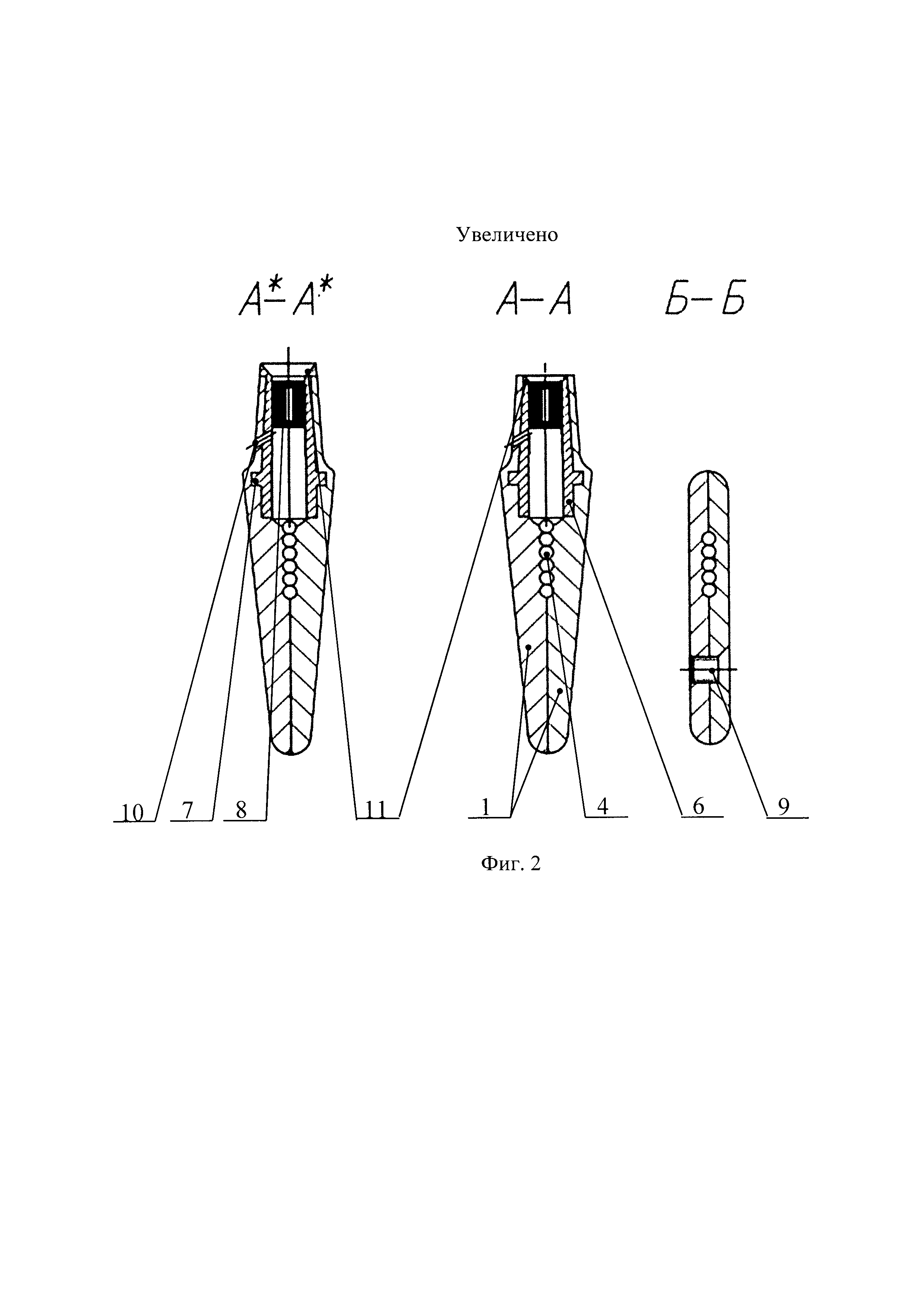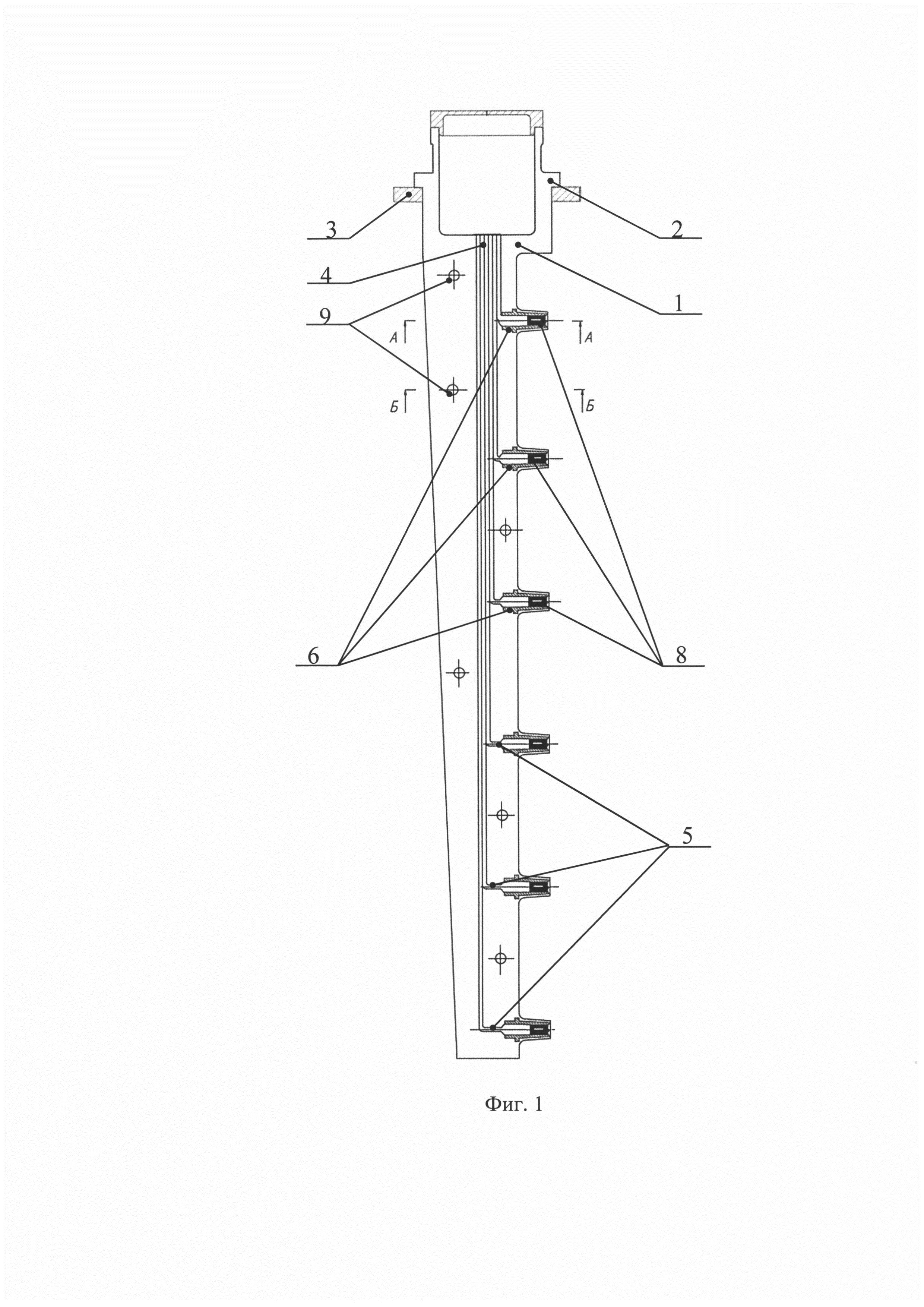 Изобретение относится к области устройств для измерения параметров газового потока, преимущественно в турбомашиностроении, а именно к гребенкам замера параметров газового потока. Известна гребенка приемников полного давления потока, содержащая обтекаемый корпус с продольными и поперечными каналами, сообщенными между собой, датчики, установленные в поперечных каналах, со стороны набегающего потока газа (А.Н. Петрунин, «Методы и техника измерений параметров газового потока (приемники давлений и скоростного напора)», Машиностроение, Москва, 1972 г., стр. 50, рис. 1.47). Недостатками известной гребенки является неразборный корпус, выполненный под определенные условия набегания газового потока и определенный тип датчика, что требует изготовления отдельной гребенки как под определенные условия набегания газового потока, так и под определенный тип датчиков, то есть отсутствует универсальность применения устройства. Техническим результатом, достигаемом при использовании заявленного изобретения, является устранение недостатка известной гребенки за счет ее комплектации набором различных взаимозаменяемых втулок, то есть расширение возможности применения заявленного устройства в различных условиях набегания потока газа и с различным типом датчиков, что обеспечивает универсальность устройства при сохранении требуемой погрешности измерений и приводит к снижению затрат на испытания в целом. Указанный технический результат достигается тем, что согласно заявленному изобретению устройство для измерения параметров потока газа, содержит обтекаемый корпус, с продольными и поперечными каналами, сообщенными между собой, датчики, установленные в поперечных каналах, со стороны набегающего потока газа, кроме того, оно снабжено набором съемных различных втулок с пояском, фланцем, выполненным на корпусе, при этом корпус выполнен разъемным, состоящим из двух частей с ответными отверстиями под соединительные элементы, для фиксации частей корпуса, при этом продольные и поперечные каналы образованы ответными канавками, выполненными на поверхностях разъемных частей корпуса, а датчики установлены в съемных втулках, зафиксированных в поперечных каналах корпуса. Кроме того, на внутренней поверхности съемной втулки, со стороны набегающего потока газа, выполнена кольцевая фаска, при этом ее угол составляет не более 60 градусов к продольной оси съемной втулки. Кроме того, в съемной втулке и в корпусе выполнено по меньшей мере по одному сквозному соосному отверстию. Кроме того, в корпусе выполнено по меньшей мере одно сквозное отверстие соосное со съемной втулкой. Кроме того, корпус в области установки съемных втулок выполнен расширяющимся. Кроме того, поперечные каналы, в области выхода из корпуса, выполнены повторяющими форму наружной поверхности соответствующей съемной втулки. Кроме того, на пояске съемной втулки выполнена лыска. Кроме того, съемная втулка выступает из корпуса. Кроме того, датчик выступает из съемной втулки. Общеизвестно, что погрешность измерения параметра газового потока зависит от геометрических параметров гребенки в области установки датчика, в частности, от геометрических параметров съемной втулки, которая является приемником газового потока, ее расположения относительно корпуса устройства (внутри или с вы