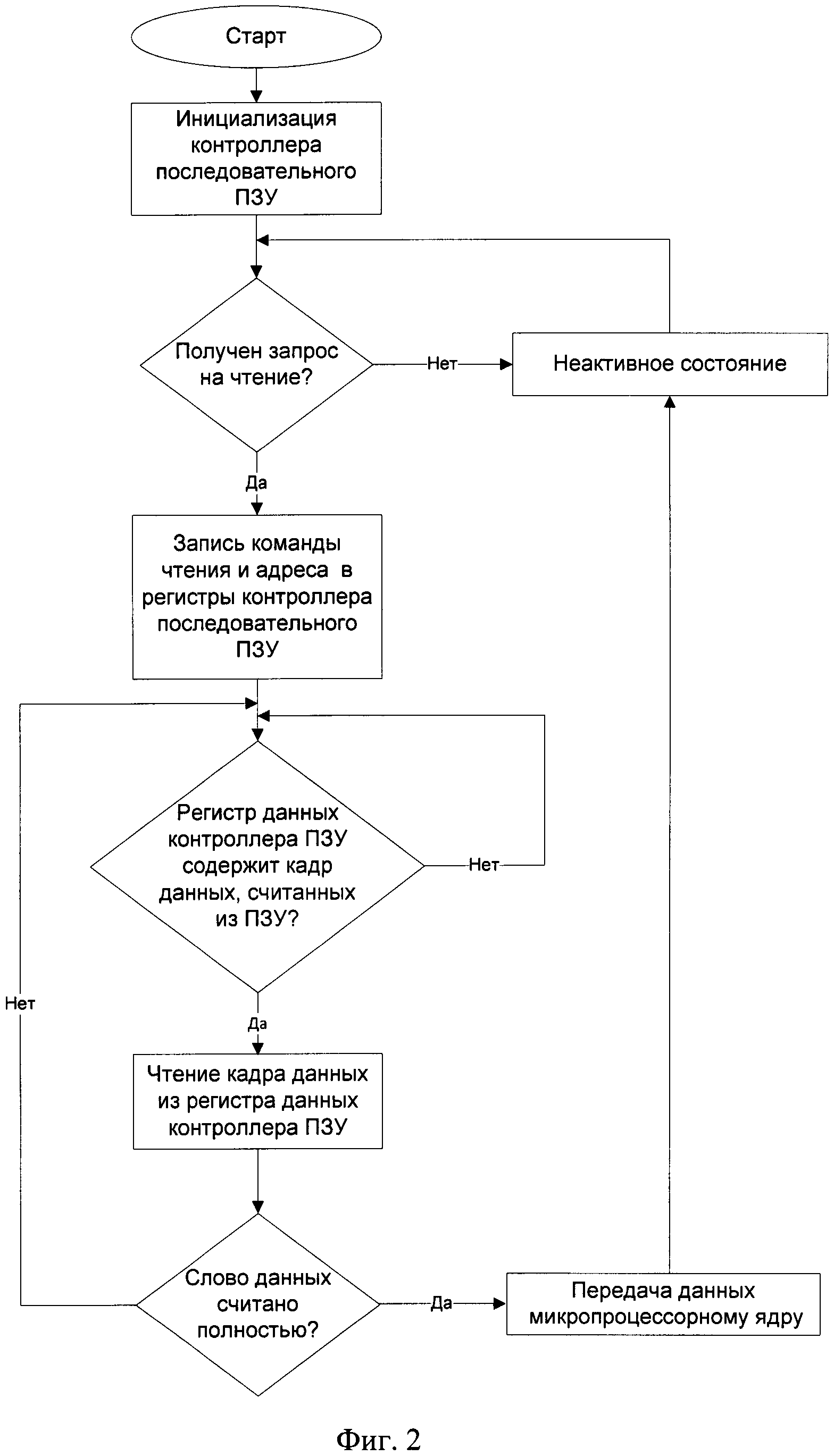 и передачи по шине данных последовательности слов данных, считанных из внешнего последовательного ПЗУ, в микропроцессорное ядро.