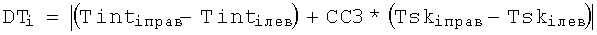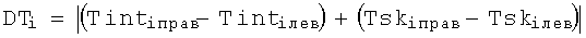 DTi - значение разницы температур между правой и левой молочной железой в заданных точках, определяемое по следующей формуле: