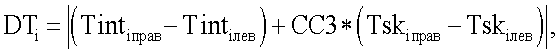 DTi - значение разницы температур в точках измерения правого и левого парного органа.