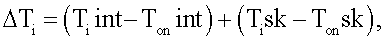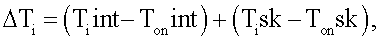 ΔTi - повышение температуры внутренних тканей в заданных точках измерения по сравнению с температурой внутренних тканей в опорной точке, определяемое по следующей формуле: