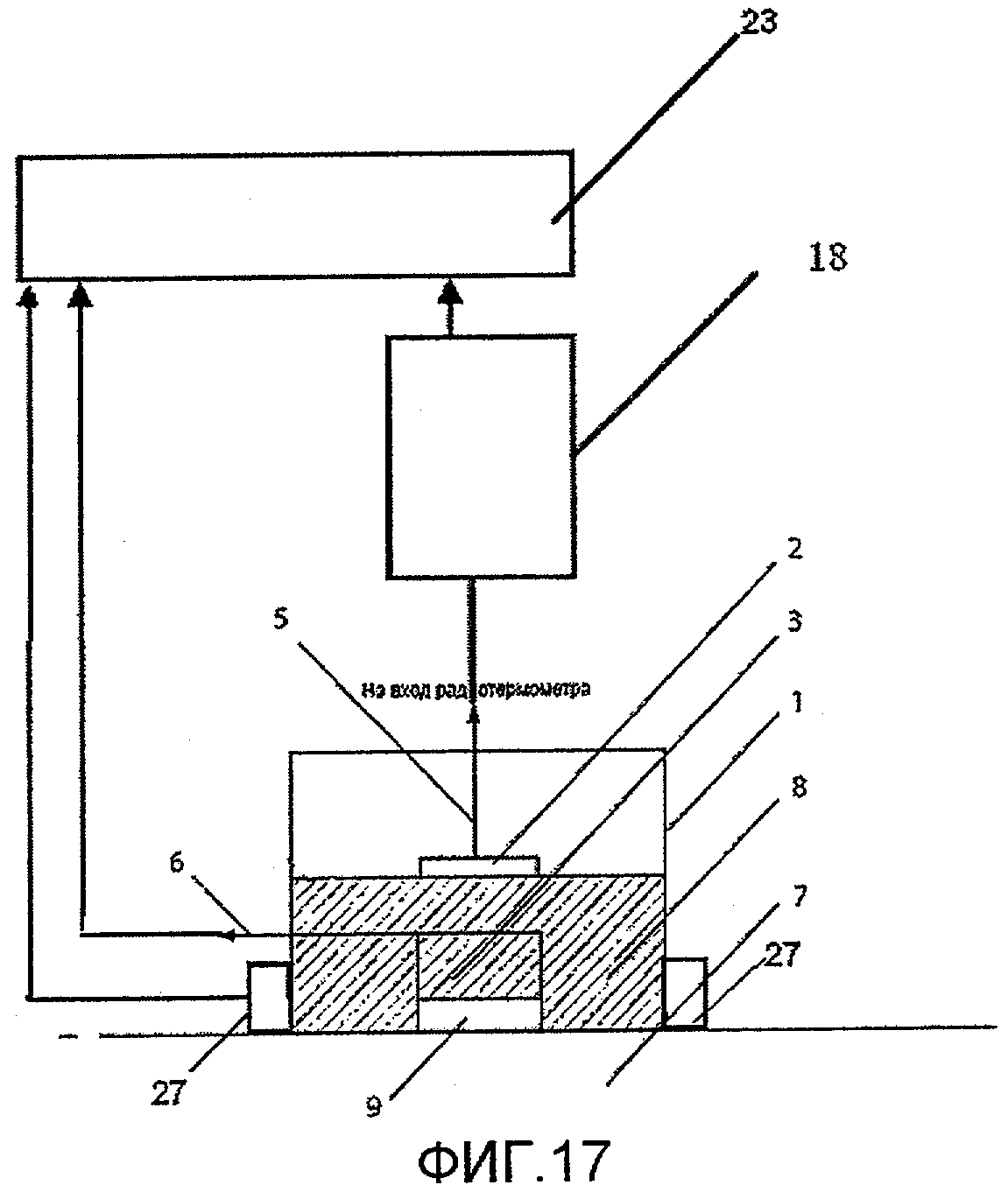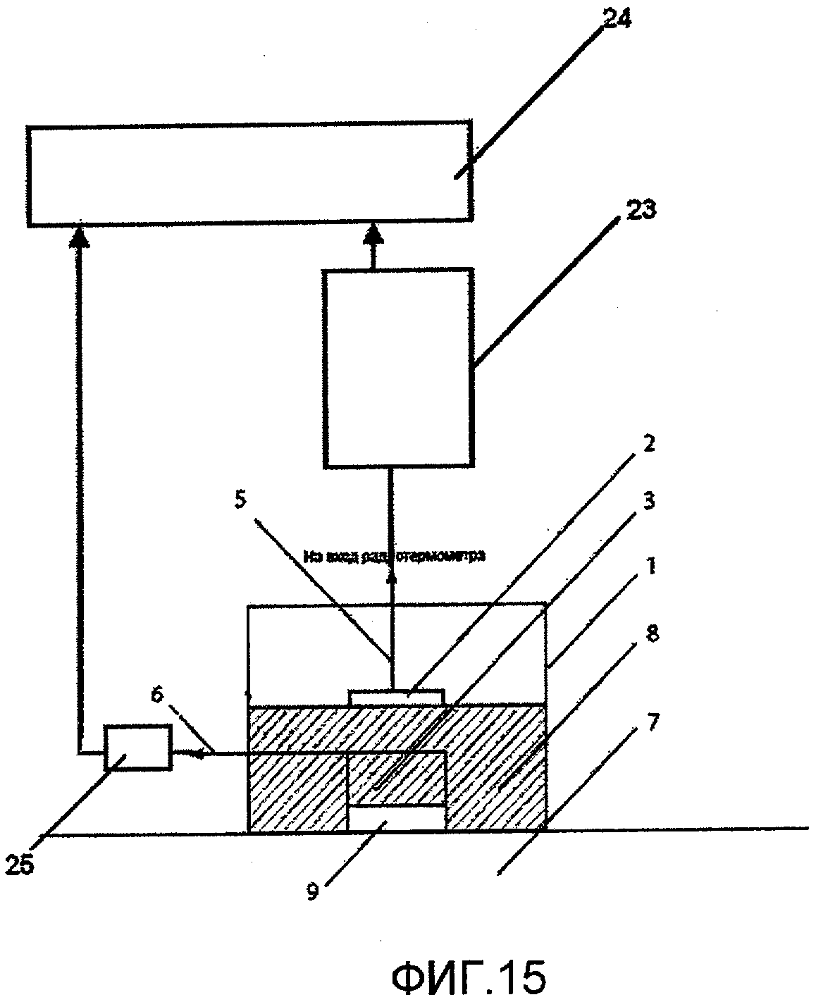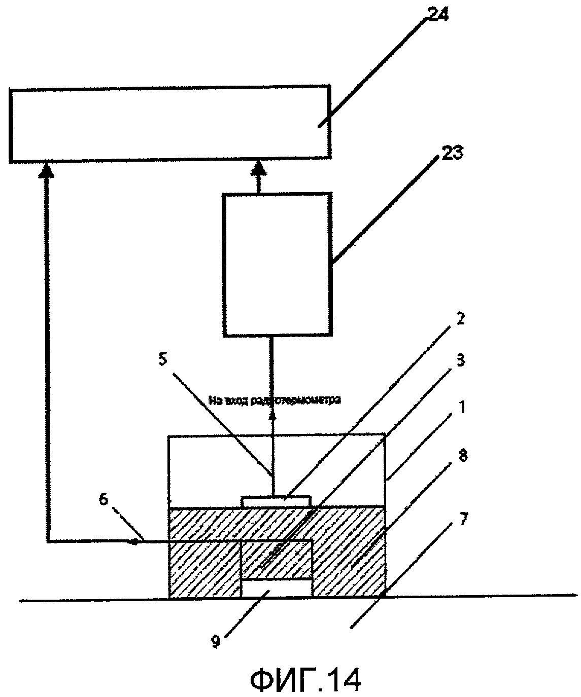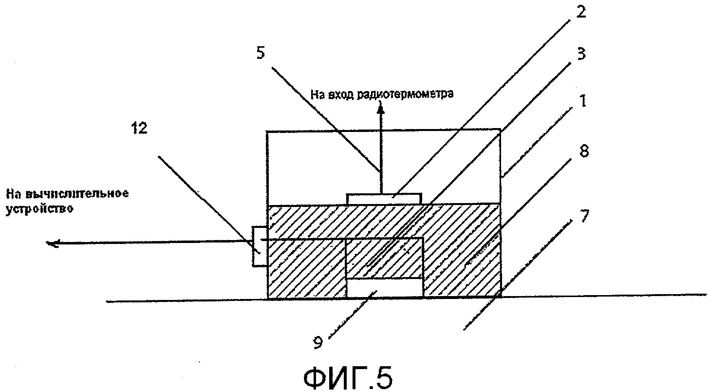 1. Антенна-аппликатор для определения температурных изменений внутренних тканей биологического объекта, содержащая: отрезок волновода, частично или полностью заполненный диэлектриком, имеющий один закрытый конец и противоположный открытый конец, контактирующий с биологическим объектом, 2. Антенна-аппликатор по п.1, отличающаяся тем, что датчик температуры кожи соединен с вычислительным устройством проводниками, расположенными ортогонально вектору электрического поля антенны-аппликатора. 3. Антенна-аппликатор по п.1, отличающаяся тем, что она содержит контактный экранированный датчик температуры, расположенный на открытом конце волновода, контактирующем с биологическим объектом. 4. Антенна-аппликатор по п.1, отличающаяся тем, что она содержит инфракрасный экранированный датчик температуры кожи, расположенный внутри отрезка волновода на расстоянии от открытого конца волновода с зазором между инфракрасным датчиком температуры и биологическим объектом. 5. Антенна-аппликатор по п.1, отличающаяся тем, что она дополнительно содержит разделительный фильтр нижних частот на выходе датчика температуры кожи. 6. Антенна-аппликатор по п.1, отличающаяся тем, что она дополнительно содержит металлизированный фланец, расположенный на расстоянии от открытого конца волновода. 7. Антенна-аппликатор по п.1, отличающаяся тем, что она дополнительно содержит диэлектрическую пластину, частично или полностью выполненную из материала, пропускающего волны ближнего инфракрасного диапазона, расположенную на открытом конце отрезка волновода, причем между диэлектрической пластиной и диэлектриком, заполняющим волновод, имеется зазор, заполненный воздухом или другим диэлектрическим материалом с низкой теплопроводностью, низкой диэлектрической проницаемостью и пропускающий волны инфракрасного диапазона. 8. Антенна-аппликатор по п.1, отличающаяся тем, что она дополнительно содержит систему подогрева. 9. Антенна-аппликатор по п.1, отличающаяся тем, что она содержит один или несколько последовательно соединенных отрезков волновода, имеющих разное поперечное сечение. 10. Антенна-аппликатор по п.1, отличающаяся тем, что она содержит один или несколько последовательно соединенных отрезков круглого волновода, имеющих разное поперечное сечение. 11. Антенна-аппликатор по п.1, отличающаяся тем, что она содержит один или несколько последовательно соединенных отрезков внутреннего волновода и расположенных снаружи от внутреннего волновода одного или нескольких отрезков внешнего волновода, причем зазор между отрезками внутреннего и внешнего волноводов частично или полностью заполнен диэлектриком. 12. Антенна-аппликатор по любому из пп.1-11, отличающаяся тем, что на диэлектрик со стороны открытого конца волновода путем металлизации нанесен согласующий элемент, обеспечивающий использование антенны-аппликатора для тканей с различной диэлектрической проницаемостью. 13. Антенна-аппликатор по любому из пп.1-11, отличающаяся тем, что она дополнительно снабжена датчиком температуры, измеряющим температуру антенны-аппликатора и передающим информацию на вычислительное устройство. 14. Антенна-аппликатор по любому из пп.1-11, отличающаяся тем, что она дополнительно содержит датчик для измерения температуры датчика температуры кожи, расположенный на корпусе датч