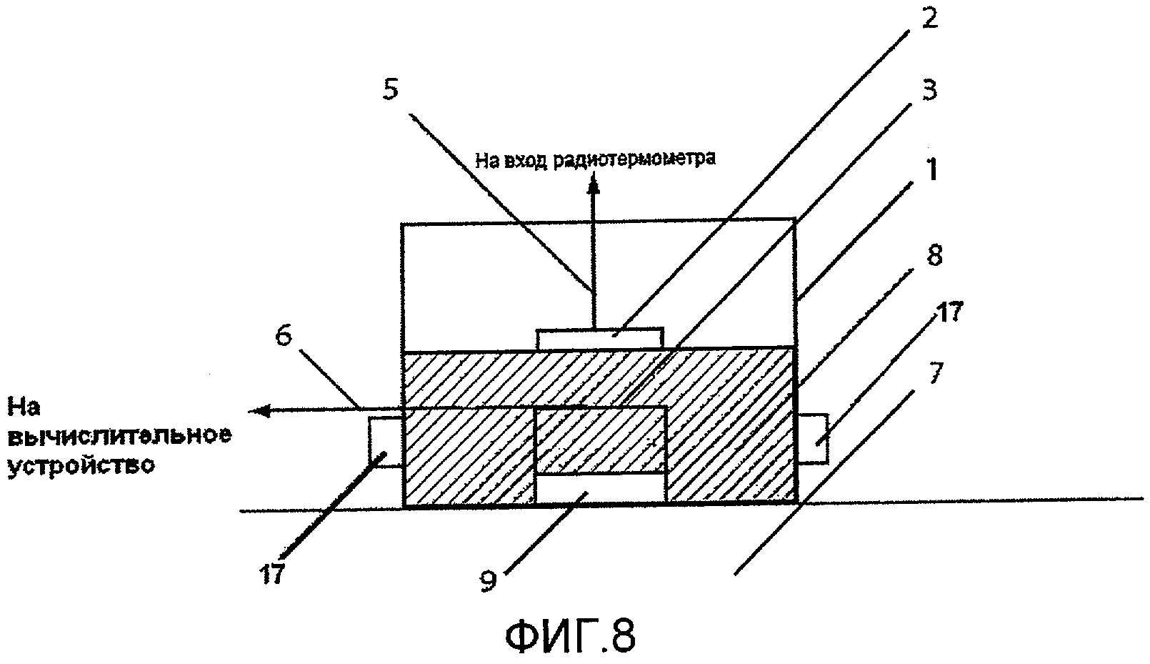 вычислительное устройство, выполненное с возможностью приема информации от датчика температуры кожи и от микроволнового радиотермометра и определения изменения температуры внутренних тканей.