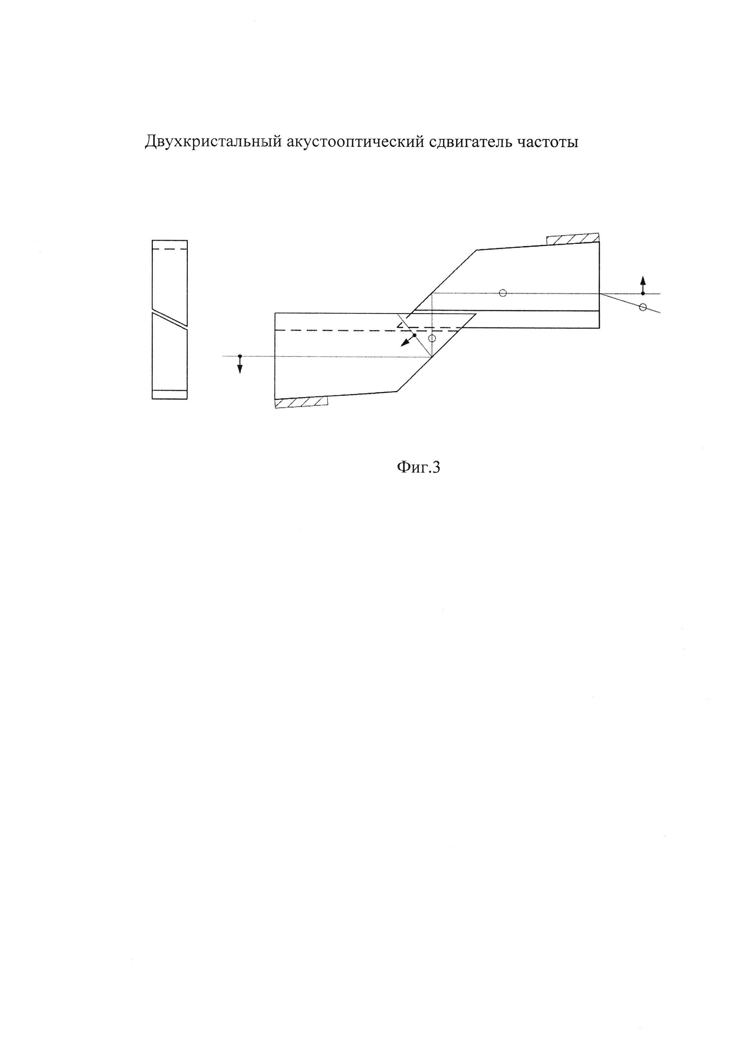 Изобретение относится к технологиям сетевой связи. Технический результат заключается в повышении надежности эксплуатации оборудования. Двухкристальный акустооптический сдвигатель частоты оптического излучения с двукратным сдвигом по частоте и стабильностью углового положения выходного пучка, отличающийся тем, что стабильность углового положения выходного пучка света обеспечивается последовательной дифракцией светового пучка в двух симметрично расположенных акустооптических ячейках с одинаковой геометрией акустооптического взаимодействия, при этом между ячейками устанавливается устройство подавления непродифрагировавшей в первой ячейке части пучка света с поляризацией аналогичной поляризации входного пучка. 3 з.п. ф-лы, 3 ил.