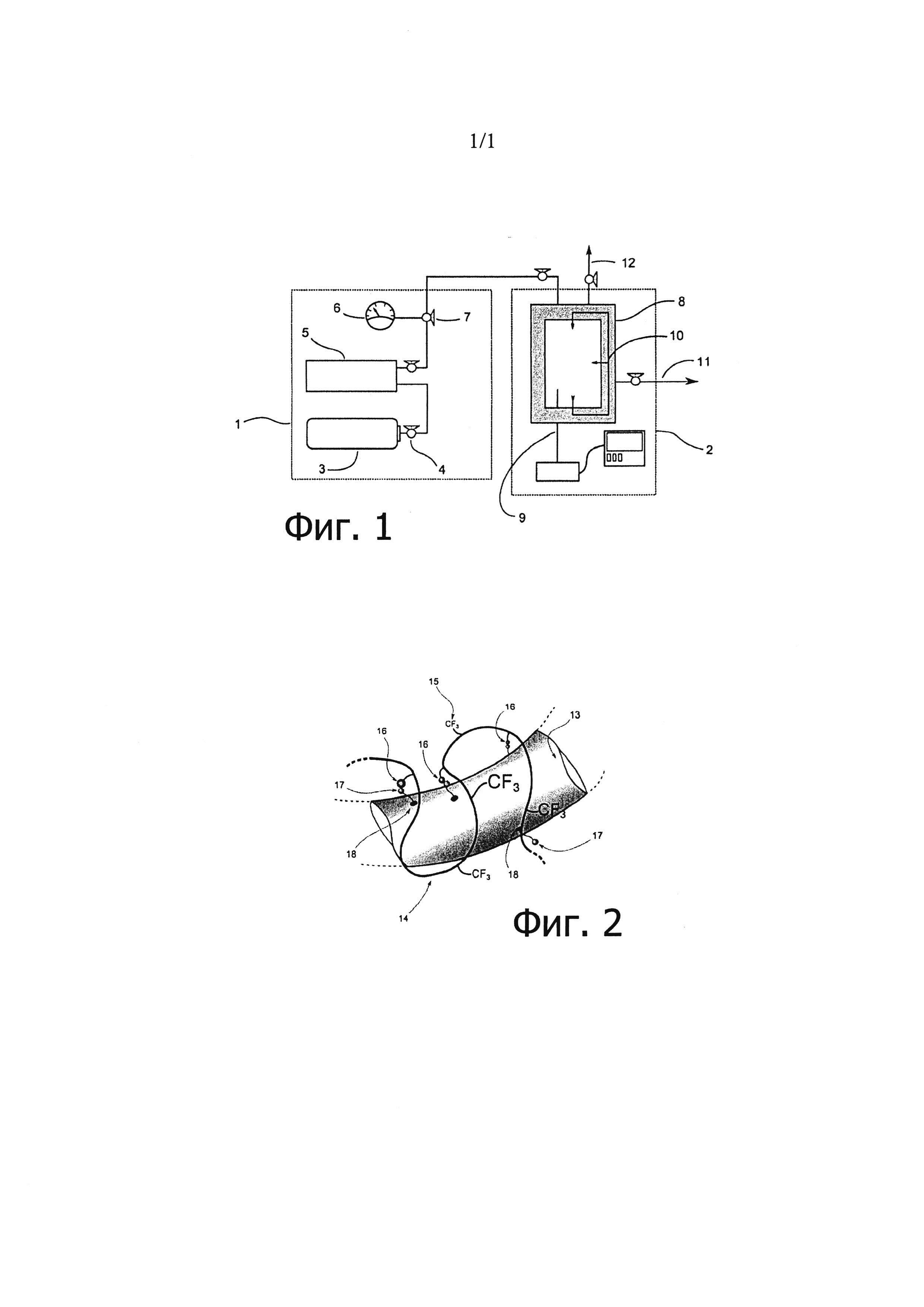 Область техники, к которой относится изобретение Настоящее изобретение относится к области финишной обработки текстильных материалов. Более конкретно, изобретение относится к области нанесения на тканые и нетканые текстильные материалы гидрофобных и олеофобных покрытий, устойчивых к износу, многократным циклам машинной стирки, не снижающих паропроницаемость материала. В частности, изобретение относится к способу нанесения гидрофобного и олеофобного фторполимерного покрытия с использованием раствора фторсодержащего сополимера и сшивающего агента в сверхкритическом диоксиде углерода. Способ в соответствии с изобретением позволяет формировать гидрофобные и олеофобные покрытия на текстильных материалах из синтетических и натуральных тканей, нетканых материалов, в том числе нетканых фильтровальных материалов, придающие им водо- и маслоотталкивающие свойства, сохраняющиеся после многократных циклов машинной стирки. Уровень техники Из уровня техники известен способ создания грязезащитного покрытия на текстильных материалах – тканях, при котором перфторированный модифицирующий агент полимерной природы и сшивающий агент наносятся на текстильный материал из их раствора или дисперсии на водной основе [US 2012/0094564 А1, 19.04.2012]. Недостатком этого способа является использование жидкого водного раствора или дисперсии для нанесения перфторированного модифицирующего агента. Использование жидкого водного раствора или дисперсии для пропитки текстильного материала перфорированным модифицирующим агентом не позволяет достичь однородности покрытия текстильного материала таким перфорированным агентом из-за наличия в жидком растворителе капиллярных эффектов, обусловленных поверхностным натяжением, на стадиях пропитки и сушки. Поверхностное натяжение жидкого растворителя не позволяет наносить равномерные покрытия в глубине малых пор материала, а также приводит к деструкции уже нанесенного покрытия при уходе жидкого растворителя в процессе его высушивания. Таким образом, указанный способ не позволяет производить обработку всей поверхности микро- и нанопористых материалов, а также приводит к формированию дефектов и неоднородностей в покрытии. Все это ухудшает устойчивость покрытия к износу, к многократным циклам машинной стирки, а также снижает паропроницаемость материала из-за частичной блокировки пор вследствие неоднородности распределения перфорированного модифицирующего агента по поверхности материала. Известны способы создания водоотталкивающего покрытия на шероховатых материалах, включая текстильные материалы, в которых фторированный полимер наносится из растворов в сверхкритическом диоксиде углерода [RU 2331532, 20.08.2008 и US 6,030,663 А, 29.02.2000]. Использование сверхкритического диоксида углерода в качестве растворителя позволяет создавать равномерное покрытие на материале, что приводит к высоким водоотталкивающим свойствам. Недостатком такого способа является низкая долговечность создаваемых покрытий. Из-за отсутствия химической связи полимера и текстильного материала получаемые таким способом покрытия на текстильных материалах не устойчивы к износу и к многократным циклам машинной стирки. Известен способ модификации пористой мембраны из экспандированного политетрафторэтилена для придания ей 