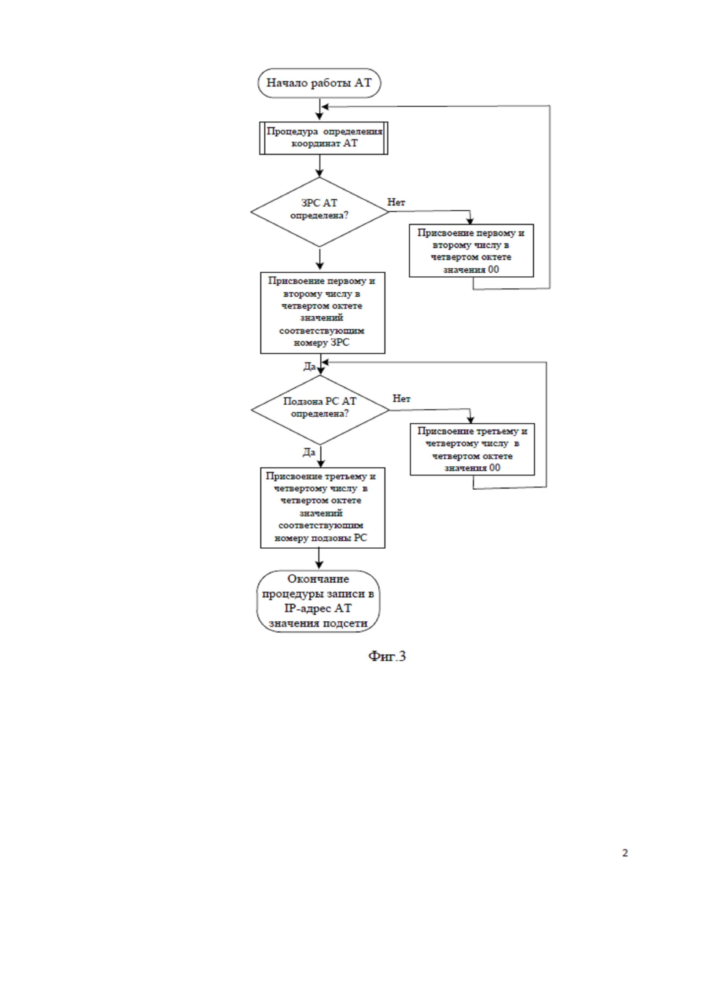 1. Способ назначения IP-адресов в сети персональной спутниковой связи на низкоорбитальных спутниках ретрансляторах с зональной регистрацией абонентских терминалов, включающий назначение цифр в первом, втором и третьем октетах IP-адреса в соответствии с адресом сети персональной спутниковой связи на низкоорбитальных спутниках ретрансляторах, одинаковым для всех объектов сети персональной спутниковой связи на низкоорбитальных спутниках ретрансляторах, отличающийся тем, что цифры четвертого квартета IP-адреса назначают в соответствии с адресом подсети, который в сети персональной спутниковой связи на низкоорбитальных спутниках ретрансляторах определяется зонами радиосвязи, которые образуют матрицу радиосвязи, таким образом, чтобы размер самой большой зоны радиосвязи, которая расположена у экватора, был не больше зоны радиопокрытия низкоорбитального спутника ретранслятора, которые в свою очередь делятся на подсети, определяемые подзонами радиосвязи. 2. Способ назначения IP-адресов по п.1, отличающийся тем, что третья и четвертая цифры в пятом квартете обозначают номер низкоорбитального спутника ретранслятора, в котором первая буква обозначает орбитальную плоскость, а вторая цифра обозначает номер рабочей точки в орбитальной плоскости, или номер шлюзовой станции, первую цифру в шестом квартете назначают в соответствии с видом радиолинии, вторая цифра в шестом квартете символизирует диапазоны, которые могут быть радиочастотным или оптическим, третья цифра в шестом квартете обозначает номер антенной системы, четвертая цифра в шестом квартете обозначает вид радиочастотного оборудования, которое может быть приемником или передатчиком, первая цифра седьмого квартета символизирует номер комплекта радиочастотного оборудования, вторая цифра седьмого квартета обозначает номер диапазона, а третья и четвертая цифры седьмого квартета символизируют номер поддиапазона, первая и вторая цифры восьмого квартета символизируют номер луча в абонентской радиолинии.