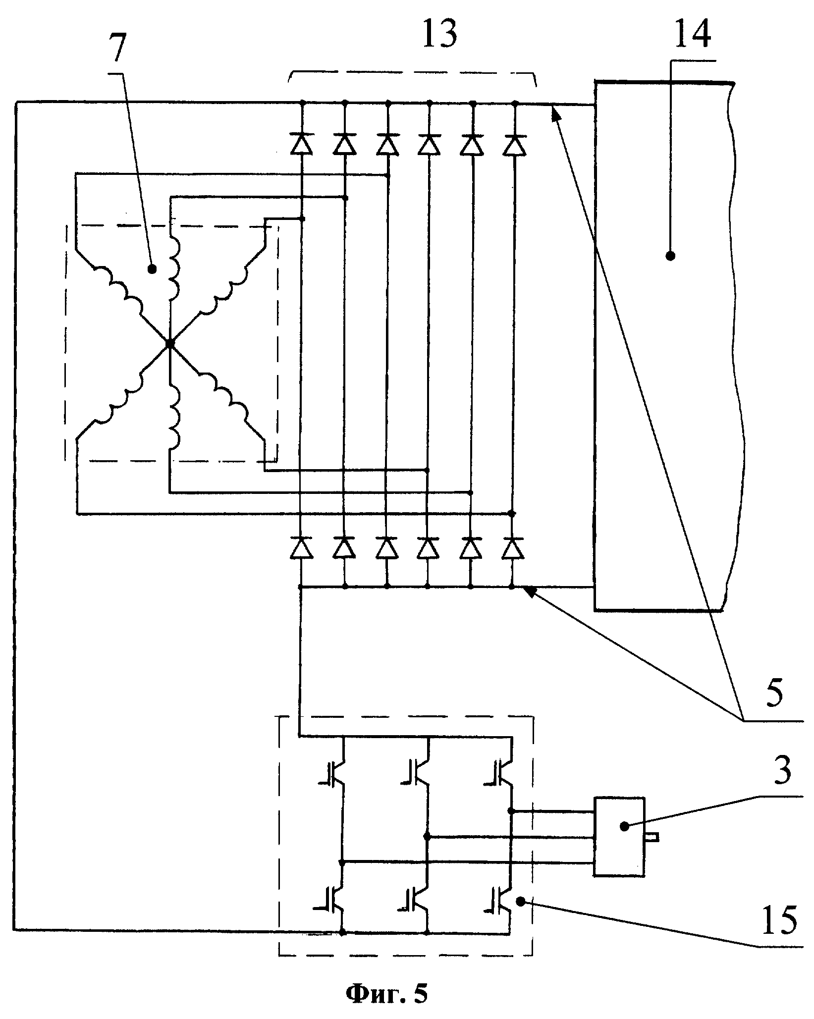 Напряжение многофазного генератора 7 переменного тока выпрямляется многофазным мостом 13