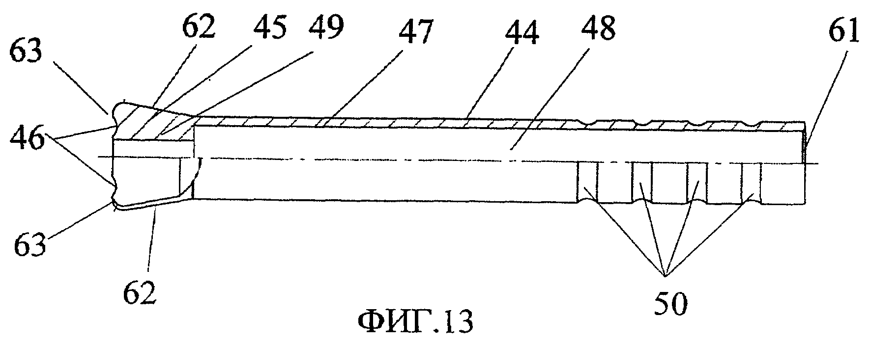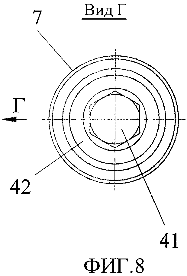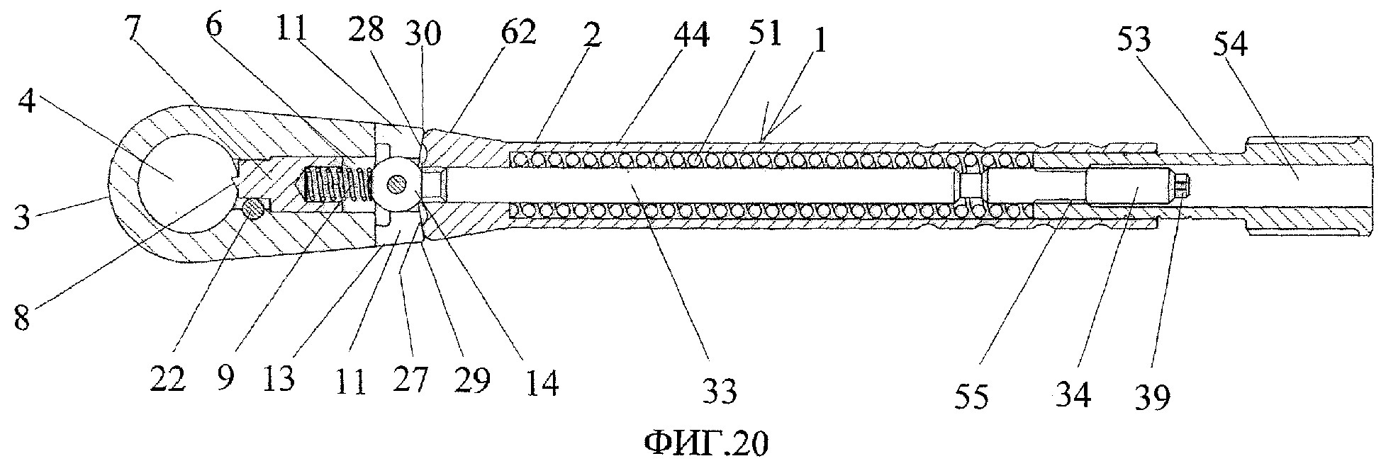 1. Устройство для завинчивания, включающее корпус и головную часть с поперечным отверстием, причем внутри головной части от поперечного отверстия до торца выполнено продольное отверстие, в котором размещены ползун с захватным шипом на торце и пружина, отличающееся тем, что в стенке продольного отверстия головной части от торца образована пара противоположных продольных пазов с поперечным пазом на концах, концевая часть корпуса выполнена с парой противоположно направленных выступов и в собранном положении установлена в продольном отверстии головной части, а концы его выступов - в поперечном пазу через посредство продольных пазов, причем пружина размещена между ползуном и концевой частью корпуса. 2. Устройство по п.1, отличающееся тем, что концевая часть корпуса выполнена шарообразной формы. 3. Устройство по п.1, отличающееся тем, что поперечные пазы головной части выполнены с дополнительными противоположными пазами, направленными в сторону торца, на который выходит продольное отверстие. 4. Устройство по п.1, отличающееся тем, что продольное отверстие и ползун выполнены цилиндрообразной формы, при этом стенка продольного отверстия между поперечным отверстием и поперечным пазом имеет выступ, а на торце ползуна имеется цилиндрообразный выступ с плоским продольным боковым срезом, и захватный шип образован на торце цилиндрообразного выступа, и, кроме того, в головной части выполнено дополнительное поперечное отверстие, частично пересекающее продольное отверстие между поперечным отверстием и поперечным пазом, в котором размещен штифт, причем в собранном положении плоский продольный боковой срез цилиндрообразного выступа контактирует с поверхностью штифта. 5. Устройство по п.4, отличающееся тем, что выступ выполнен кольцевой формы. 6. Устройство по п.1, отличающееся тем, что торец, на который выходит продольное отверстие, имеет угловые выступы, причем одна пара диагонально противоположных выступов имеет меньшую высоту, чем пара других, а торцевые поверхности между выступами, на которые выходят противоположные продольные пазы, выполнены наклонными от наружных ребер головной части во внутрь. 7. Устройство по п.6, отличающееся тем, что корпус имеет концевую часть с парой противоположно направленных выступов и основную часть, содержащую соединенный с концевой частью корпуса штырь, имеющий на противоположном конце участок с винтовой резьбой, охватывающий штырь трубчатый элемент, один конец которого заужен и оперт на торцевые наклонные поверхности между выступами головной части, причем в кольцевом зазоре между трубчатым элементом и штырем размещена пружина, одним концом опертая на выступ, выполненный на стенке полости трубчатого элемента с зауженного конца, а другим концом поджата торцом введенного в кольцевой зазор цилиндра с продольной полостью, имеющей винтовую резьбу на внутренней поверхности, навинченную на винтовую резьбу штыря. 8. Устройство по п.7, отличающееся тем, что на торце зауженного конца трубчатого элемента выполнена пара противоположных лунок с возможностью расположения каждого из них в собранном положении напротив соответствующего ей ребра, ограничивающего снаружи в собранном положении торцевую наклонную поверхность между выступами головной части. 9. Устройство по п.7, отличающееся тем, что штырь им