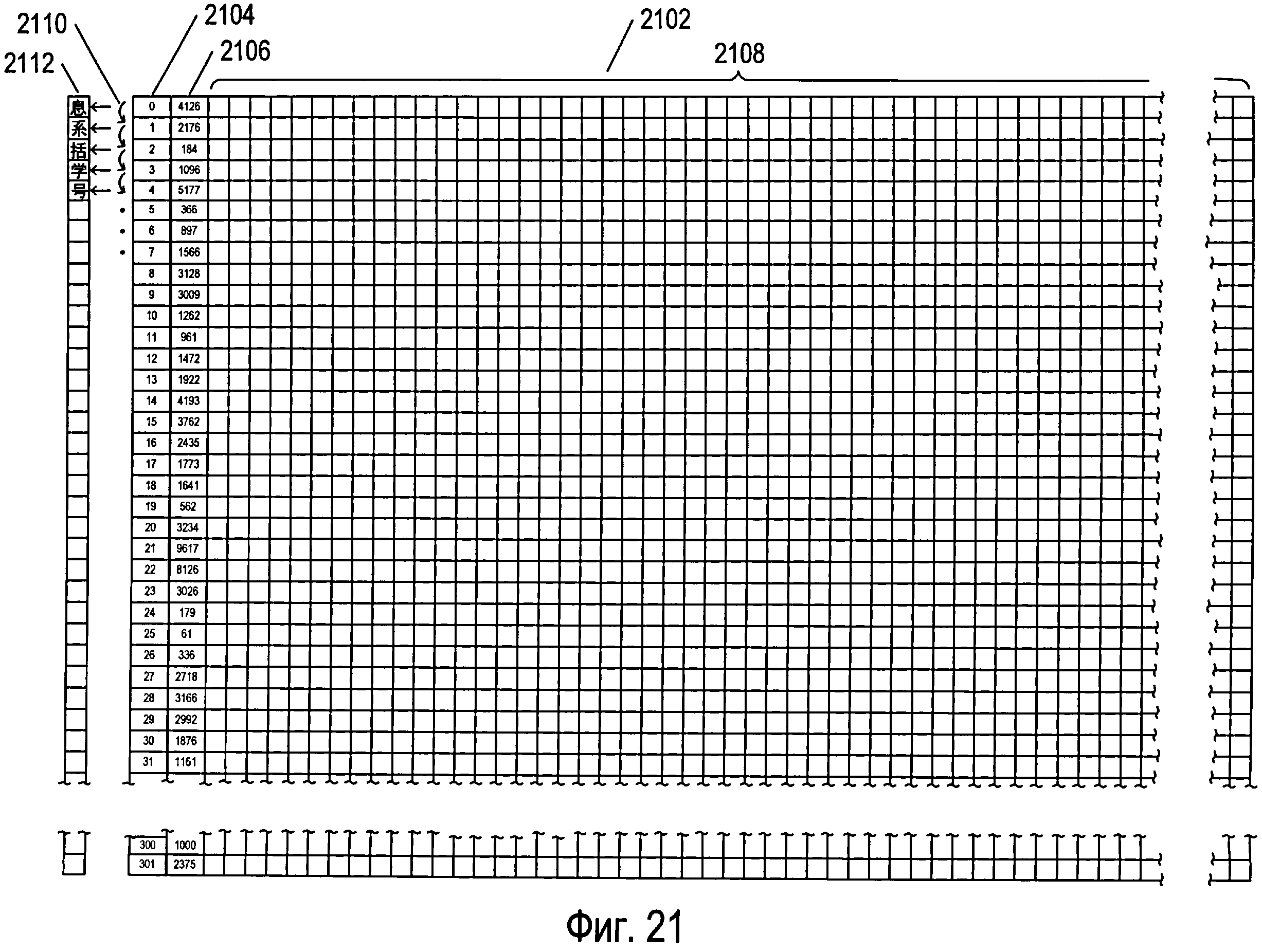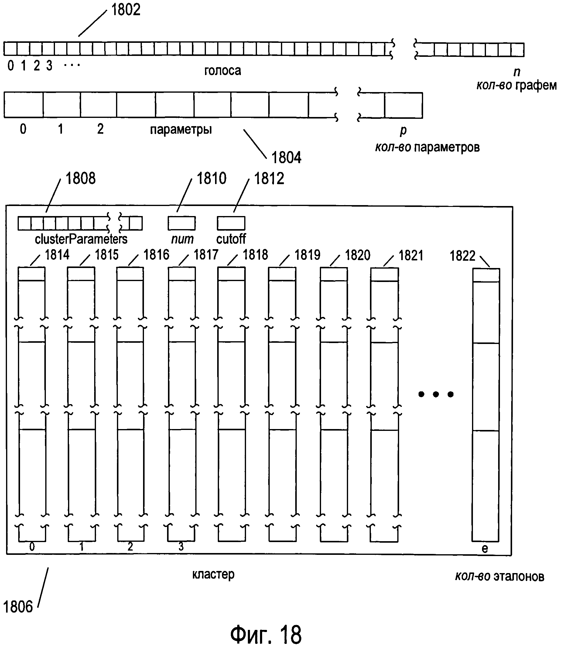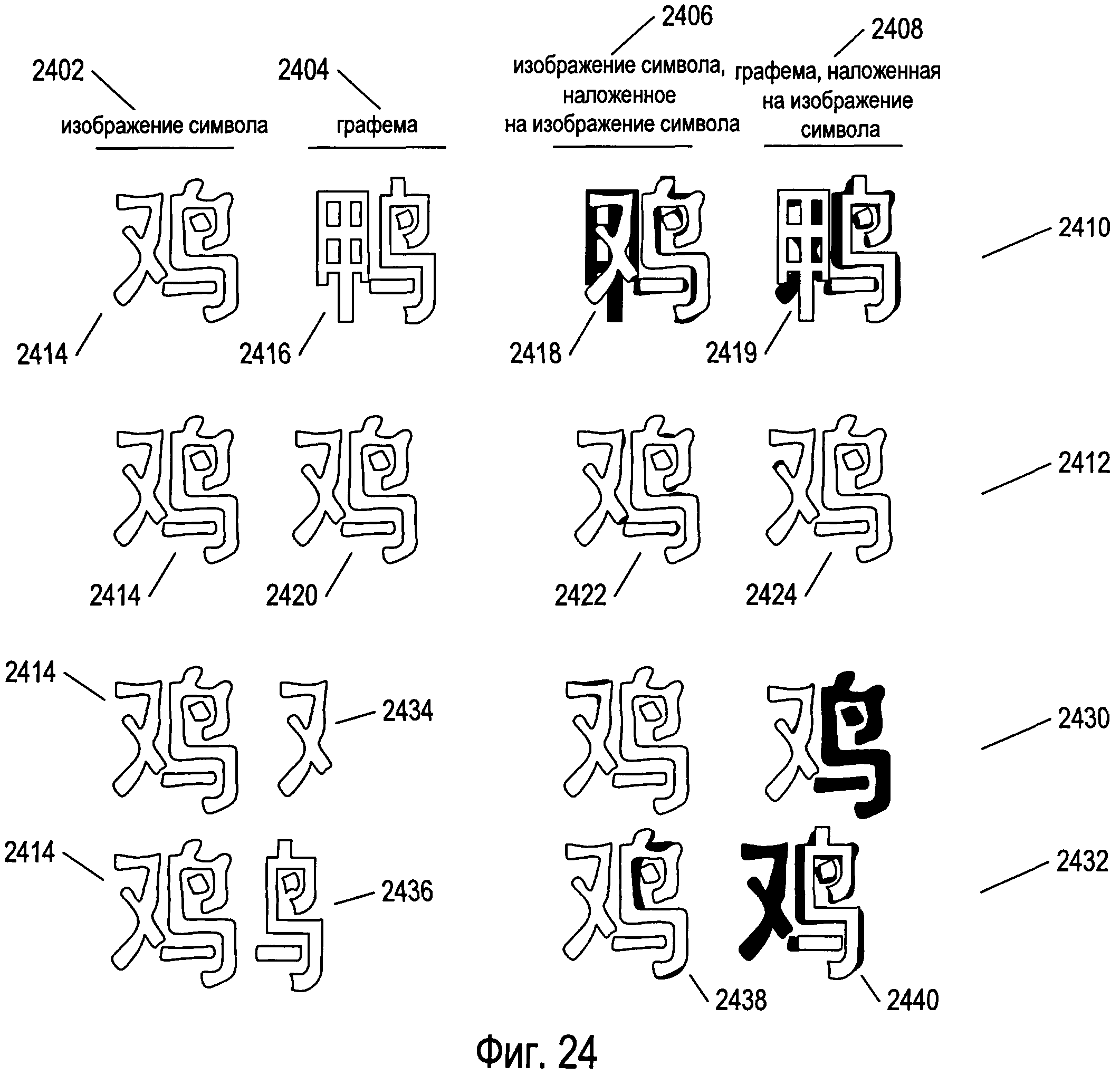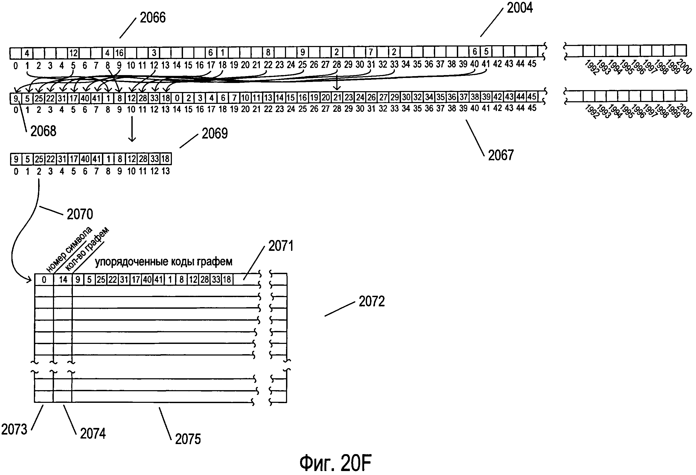 1722. Существует, конечно, штраф за начальную предварительную обработку, представленный коэффициентом «е» 1744. Однако, как указывалось выше, количество обрабатываемых изображений символов N по существу значительно меньше значения параметров P или Р′ для таких языков, как китайский, японский и корейский, и, следовательно, третий способ реализации подпрограммы «process» обеспечивает значительное снижение вычислительной сложности по сравнению как с первым, так и со вторым способами реализации, рассмотренными выше. Что более важно, третий способ реализации подпрограммы «process» гарантирует просмотр всех кластеров, пока не будет обнаружено некоторое максимальное количество потенциально соответствующих символов. Когда порог сходства для кластеров имеет относительно низкое значение, а порог сходства для эталонов имеет относительно высокое значение, существует очень большая вероятность, что список потенциально соответствующих символов, возвращаемый подпрограммой «process», будет включать в себя именно тот символ, который наиболее точно соответствует входному изображению символа.