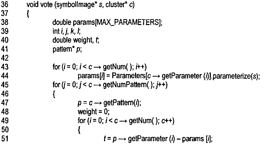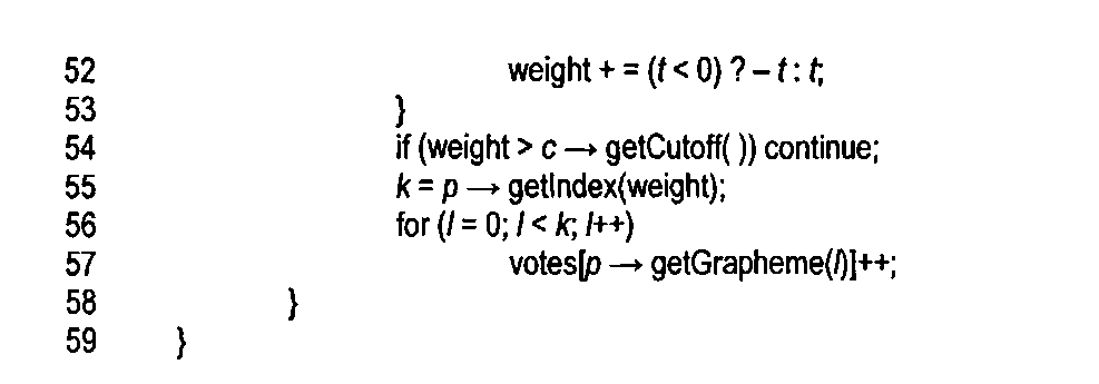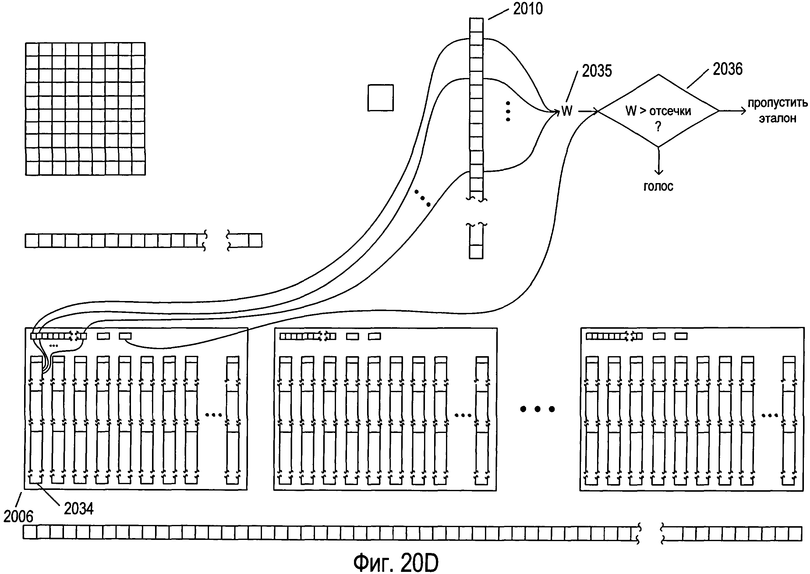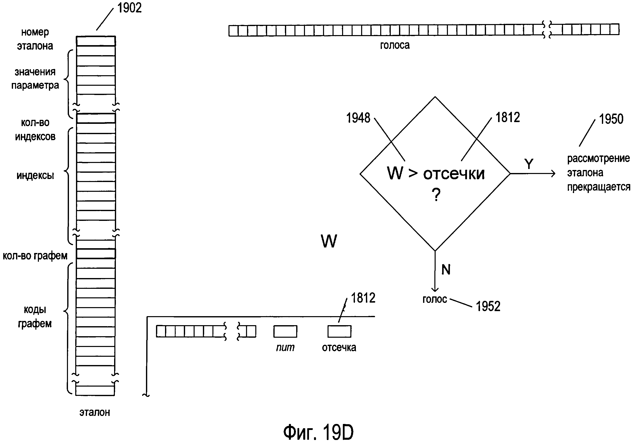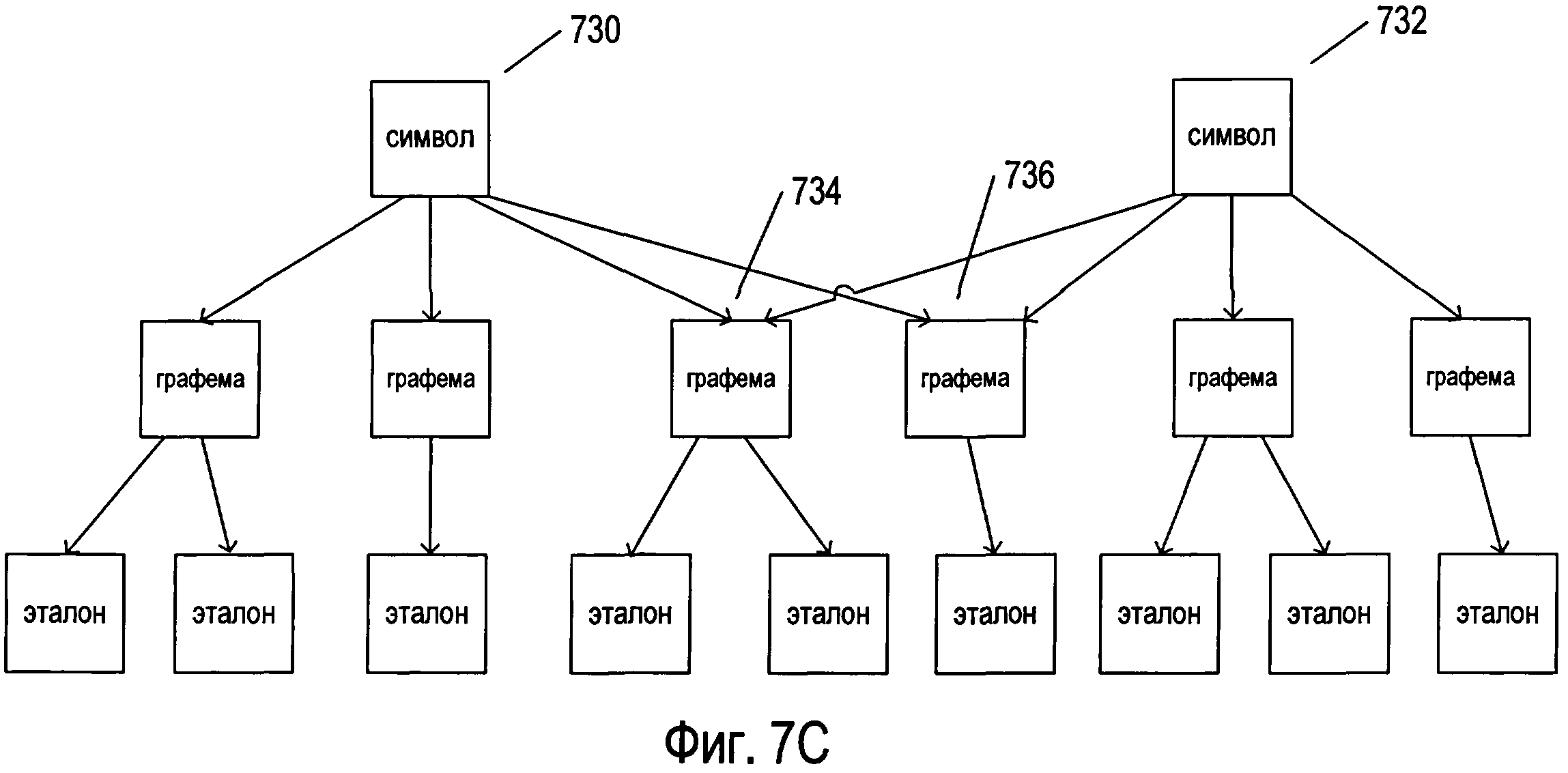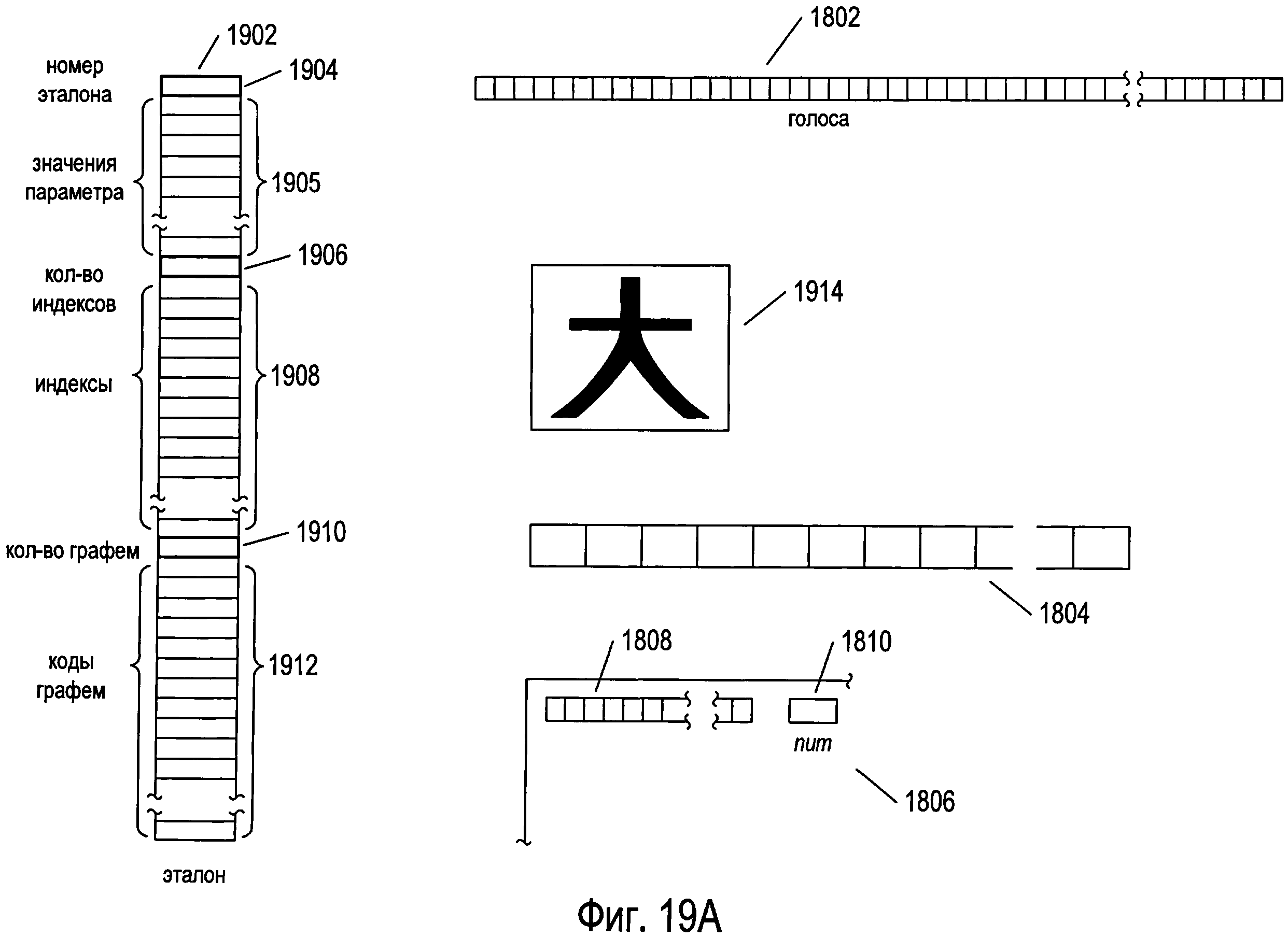 1722. Существует, конечно, штраф за начальную предварительную обработку, представленный коэффициентом «е» 1744. Однако, как указывалось выше, количество обрабатываемых изображений символов N по существу значительно меньше значения параметров P или Р′ для таких языков, как китайский, японский и корейский, и, следовательно, третий способ реализации подпрограммы «process» обеспечивает значительное снижение вычислительной сложности по сравнению как с первым, так и со вторым способами реализации, рассмотренными выше. Что более важно, третий способ реализации подпрограммы «process» гарантирует просмотр всех кластеров, пока не будет обнаружено некоторое максимальное количество потенциально соответствующих символов. Когда порог сходства для кластеров имеет относительно низкое значение, а порог сходства для эталонов имеет относительно высокое значение, существует очень большая вероятность, что список потенциально соответствующих символов, возвращаемый подпрограммой «process», будет включать в себя именно тот символ, который наиболее точно соответствует входному изображению символа.