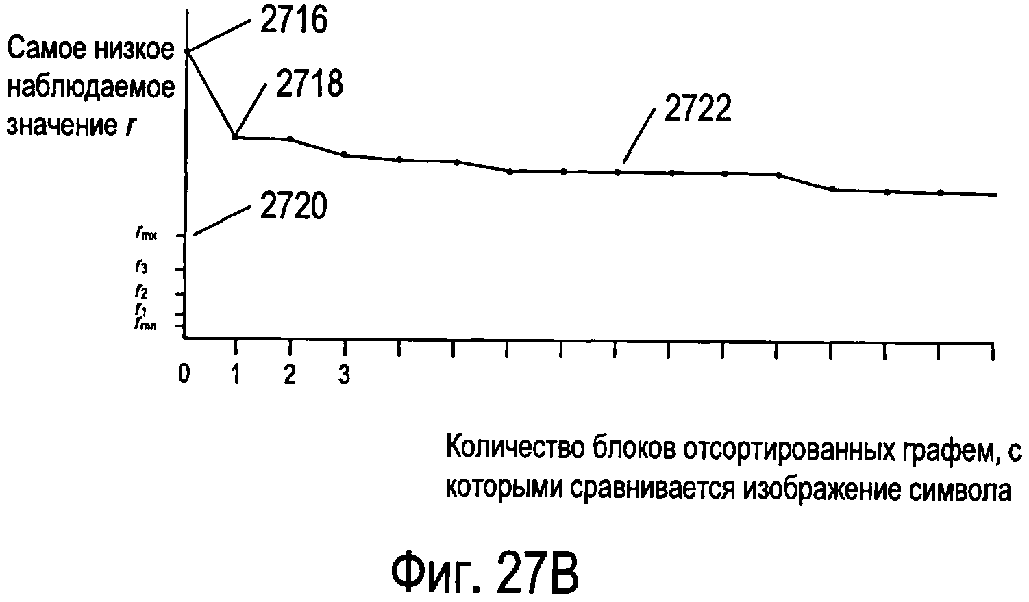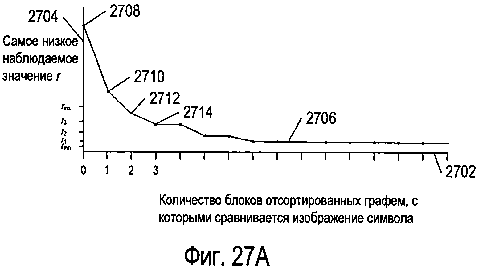 1. Система оптического распознавания символов, содержащая: 2. Система оптического распознавания символов по п. 1, дополнительно включающая в себя прерывание оценки потенциальных графем, когда в процессе наблюдения за прогрессом определяется, что вычислительные затраты на продолжение оценки потенциальных графем не компенсируются вероятностью обнаружения потенциальной графемы, которая сгенерирует значение сравнения относительно возможного изображения символа, указывающее лучшее соответствие, чем ранее оцененная потенциальная графема. 3. Система оптического распознавания символов по п. 1, в которой оценка потенциальной графемы, связанной с возможным изображением символа, дополнительно содержит: 4. Система оптического распознавания символов по п. 3, 5. Система оптического распознавания символов по п. 3, в которой функция сравнения генерирует значение сравнения посредством способа сравнения, включающего в себя одно или более из: 6. Система оптического распознавания символов по п. 3, в которой наблюдение за прогрессом обнаружения соответствующей потенциальной графемы дополнительно содержит: 7. Система оптического распознавания символов по п. 6, в которой прерывание оценки потенциальных графем, когда в процессе наблюдения за прогрессом определяется, что возможное изображение символа не содержит изображения символа, дополнительно содержит: 8. Система оптического распознавания символов по п. 7, в которой критерий оценки дополнительно содержит одно из: 9. Система оптического распознавания символов по п. 7, в которой оценка потенциальных графем прерывается, когда в процессе наблюдения за прогрессом определяется, что вычислительные затраты на продолжение оценки потенциальных графем не компенсируются вероятностью обнаружения потенциальной графемы, которая сгенерирует значение сравнения относительно возможного изображения символа, указывающее лучшее соответствие, чем уже оцененные потенциальные графемы, путем оценки вычисленного значения завершения и значения прогресса относительно дополнительного критерия оценки. 10. Система оптического распознавания символов по п. 9, в которой критерий оценки дополнительно содержит одно из: 11. Способ оптического распознавания символов, используемый системой оптического распознавания символов, содержащей один или более процессоров, один или более модулей памяти, одно или более запоминающих устройств и команды в машинном коде, которые хранятся на одном или более из одного или более запоминающих устройств и, будучи выполненными одним или более из одного или более процессоров, управляют системой оптического распознавания символов для реализации способа, причем способ содержит: 12. Способ оптического распознавания символов по п. 11, в котором оценка потенциальной графемы, связанной с возможным изображением символа, дополнительно содержит: 13. Способ оптического распознавания символов по п. 12, 14. Способ оптического распознавания символов по п. 13, в котором функция сравнения генерирует значение сравнения посредством способа сравнения, включающего в себя одно или более из: 15. Способ оптического распознавания символов по п. 12, в котором наблюдение за прогрессом обнаружения соответствующей потенциальной графемы дополнительно содержит: 16. Способ оптического распознавания символов по п.