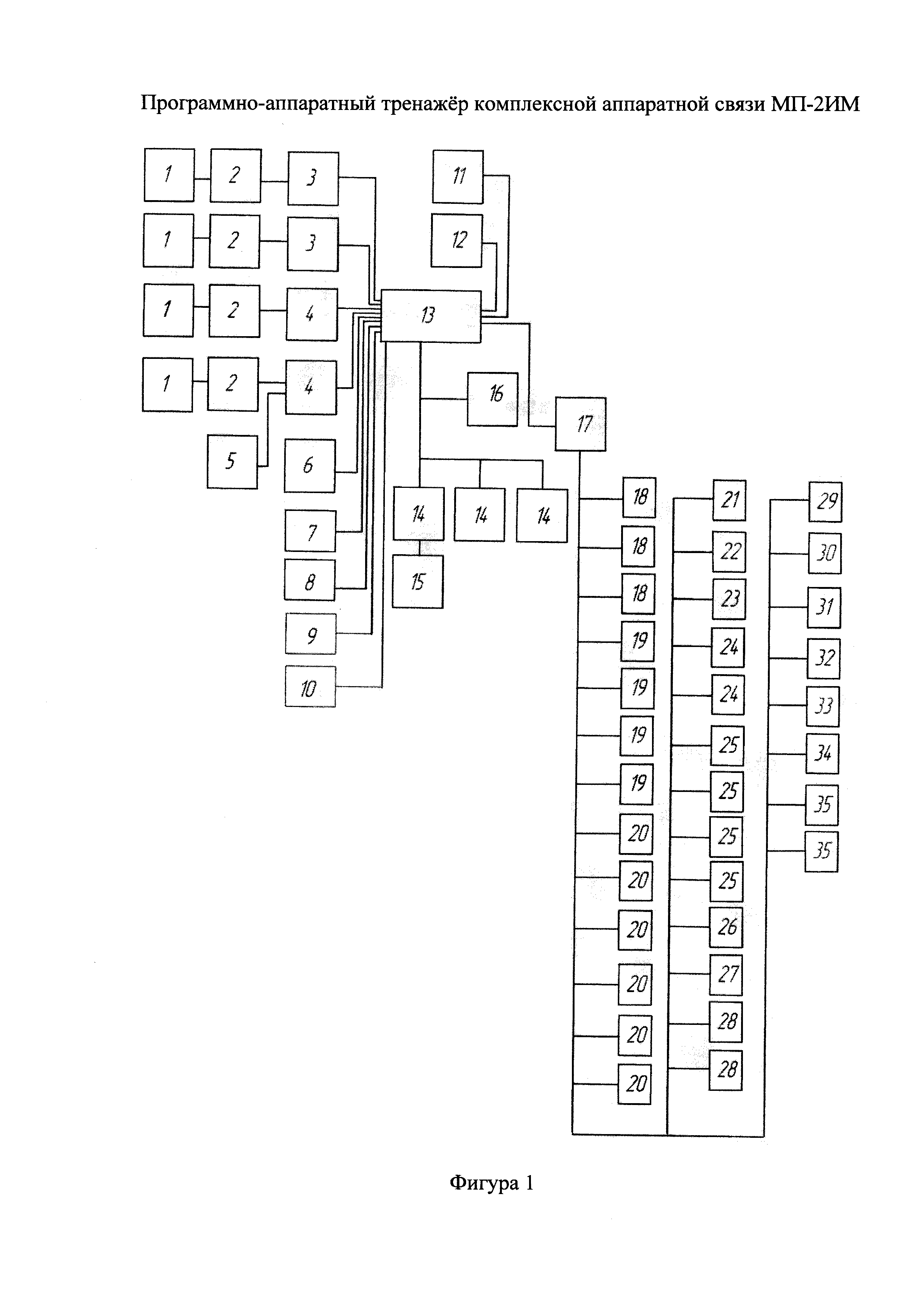 Программно-аппаратный тренажер комплексной аппаратной связи МП-2ИМ (ПАТ КАС МП-2ИМ) предназначен для обучения принципам работы каждого члена экипажа комплексной аппаратной связи МП-2ИМ в отдельности, обучения совместной работе членов экипажа МП-2ИМ. ПАТ КАС МП-2ИМ содержит корпус в виде шасси реальной машины. Органы управления движением и блок управления спидометром и тахометром подключены к системе визуализации внешнего пространства. Система визуализации внешнего пространства, ПАТ Р-168-25У-2, ПАТ Р-168-5УВ и ноутбук соединены посредством общей сети по интерфейсу «ETHERNET». Имитатор устройства преобразования сигналов АТ-3102, имитаторы аппаратуры шифрования телефонной информации Т-231-2А-4, Т-231-2А-6, Т-231-03-2, Т-231-3, имитаторы блока управления и индикации пультов управления должностного лица и имитаторы блока управления и индикации пультов управления радиста соединены с системой визуализации внешнего пространства. Имитаторы нагрудного переключателя и имитаторы гарнитуры с высокой шумоизоляцией подключены к имитаторам блока управления и индикации пультов управления пультов управления должностного лица и имитаторам блока управления и индикации пультов управления радиста. Имитатор громкоговорителя подключен к имитаторам блока управления и индикации пультов управления пульта управления должностного лица. Техническим результатом является внешнее и функциональное соответствие рабочих мест механика-водителя, начальника аппаратной в движении, начальника аппаратной, механика-радиста, механика шифровальной аппаратуры связи (ШАС) рабочим местам в реальной машине комплексной аппаратной связи МП-2ИМ. 1 ил.