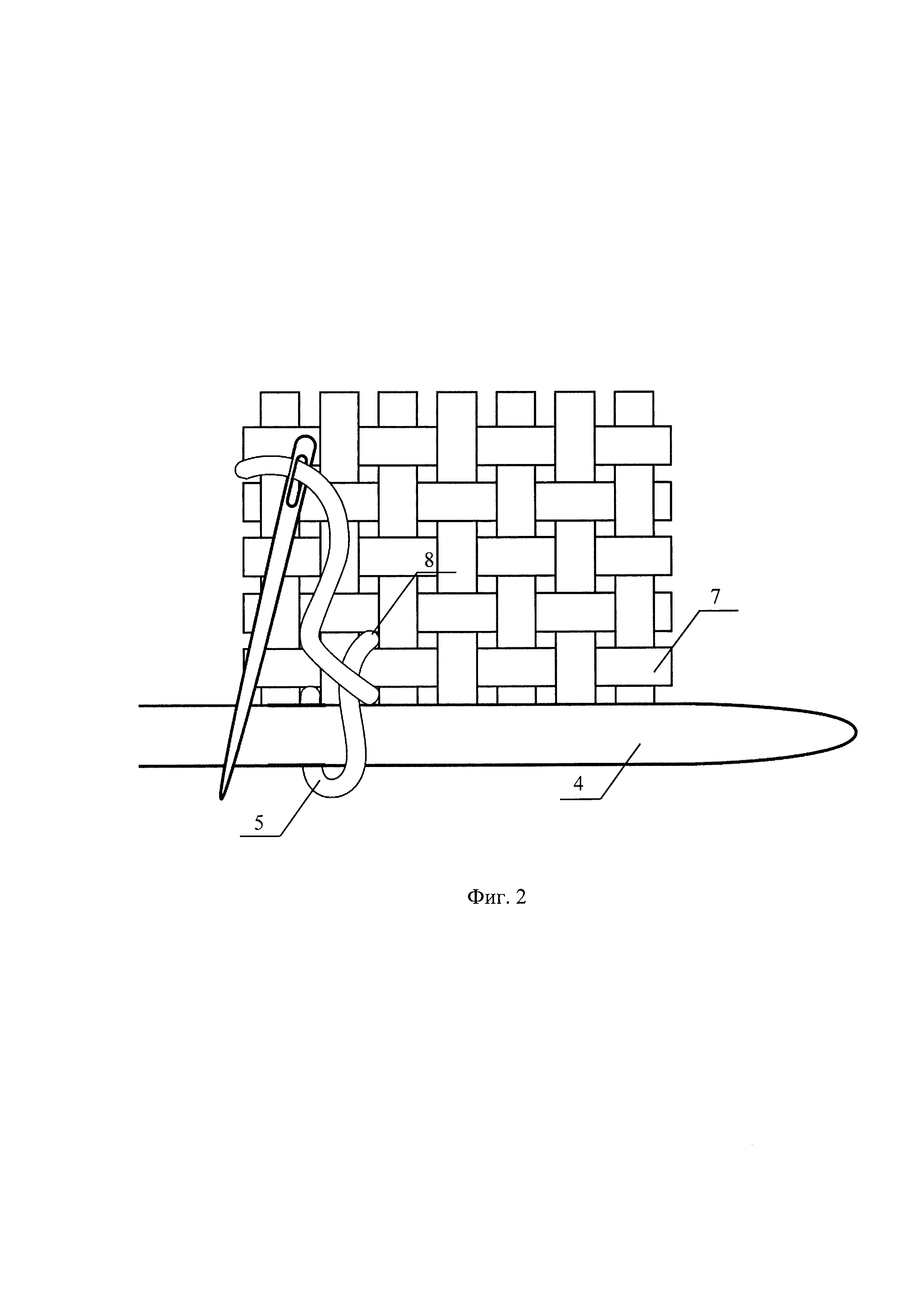 Изобретение относится к области декоративно-прикладного искусства, в частности к способам вышивания, используется при создании декоративного художественного изделия. Вышивание - старейший и широко распространенный вид декоративно-прикладного искусства. Способы вышивания сохранялись и улучшались на протяжении многих лет, создавались новые технические приемы вышивания. Одним из способов вышивания является счетное вышивание, т.е. выполняемое по счету нитей основы для вышивания. Для получения равных стежков используется канва. В такой ткани переплетение состоит из одинакового количества нитей по вертикали и горизонтали. Широко известным способом счетного вышивания является вышивание крестом. Выполняется двумя стежками крест накрест по диагонали, заполняя одну клетку канвы. Для выполнения ряда крестиков работу начинают полукрестом слева направо до конца ряда стежков. Затем возвращаются с наклоном в другую сторону. Недостатками данного способа является отсутствие объемности получаемого изображения, недостаточный тактильный эффект. Задачей изобретения является устранение указанных недостатков, обеспечение возможности создания декоративного художественного изделия, имеющего объем и неоднородную ворсистую поверхность. Технический результат предложения заключается в расширении функциональных возможностей способа изготовления декоративного художественного изделия, расширении ассортиментного ряда изделий без увеличения трудовых и временных затрат на создание изделия. Технический результат достигается тем, что согласно предлагаемому способу изготовления декоративного художественного изделия в игле закрепляют рабочую нить, вводят иглу с рабочей нитью на лицевую сторону основы для вышивания, рабочую нить обвивают вокруг стержня-ограничителя, выводят иглу с рабочей нитью на изнаночную сторону основы для вышивания, образуя таким образом стежок-петлю на стержне-ограничителе; затем рабочую нить вновь вводят на лицевую сторону основы для вышивания, накладывают ее на нить стежка-петли, прижимая последнюю к основе для вышивания, выводят рабочую нить на изнаночную сторону основы для вышивания, закрепляя таким образом стежок-петлю; после выполнения ряда перекрестий, предусмотренных схемой, стержень-ограничитель извлекают из ряда лежащих на нем стежков-петель. В одном из вариантов осуществления предлагаемого способа в качестве стержня-ограничителя используют тело удлиненной формы, высота и ширина которого малы по сравнению с длиной, в том числе, но не ограничиваясь, стержень для шариковой ручки или спицу для вязания или корпус шариковой ручки или карандаш. В следующем варианте осуществления предлагаемого способа стержень-ограничитель имеет круглое или овальное или квадратное или прямоугольное сечение или сечение в форме многоугольника. В следующем варианте осуществления предлагаемого способа стержень-ограничитель изготовлен из материала, не подверженного деформациям в ходе использования, в том числе, но не ограничиваясь, из дерева или пластика или полимерного материала или стекла или металла или резины или их комбинаций. В следующем варианте осуществления предлагаемого способа стержень-ограничитель изготовлен из материала, твердость которого не менее 15 по Шору. В следующем варианте осуществлен