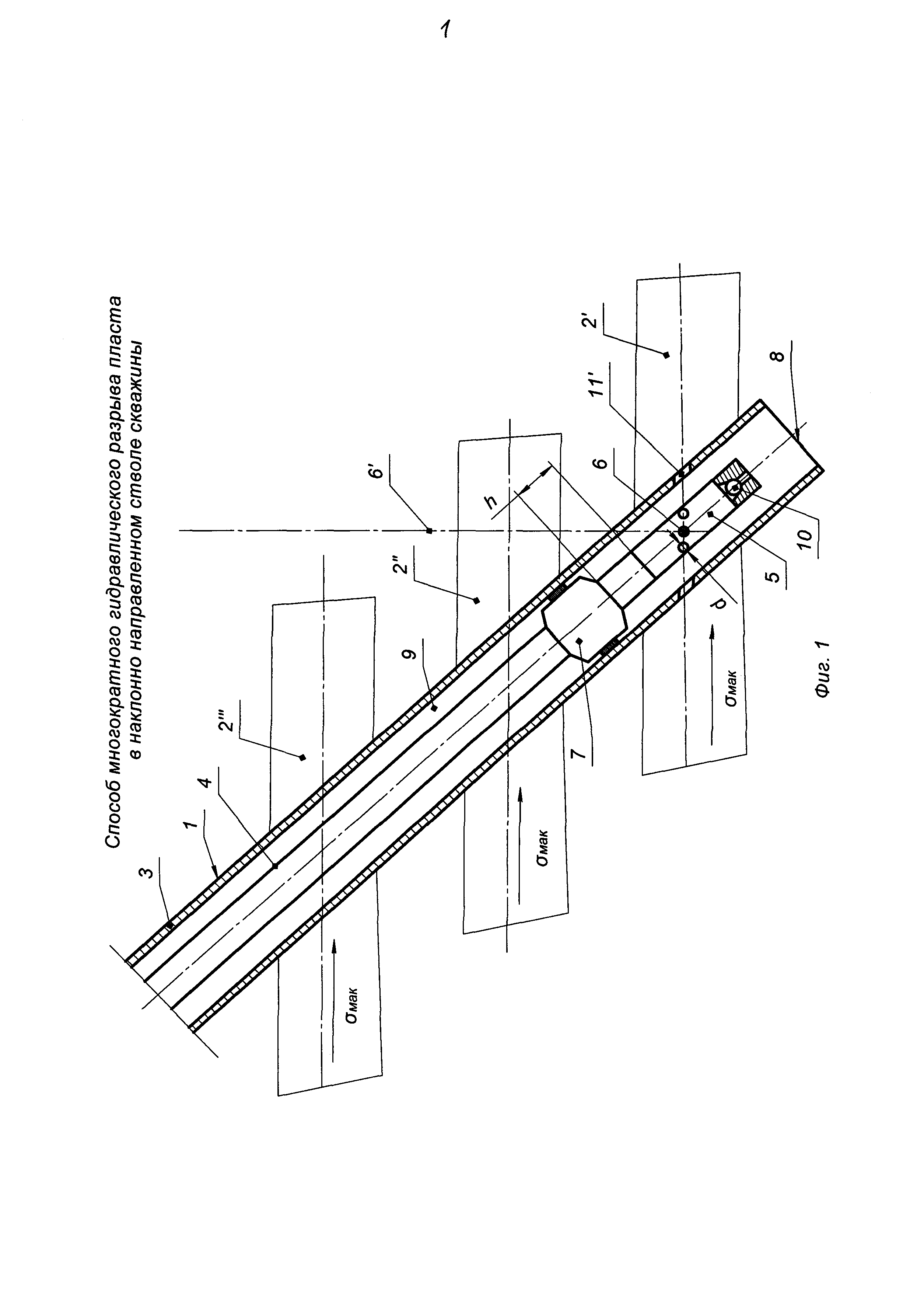 Изобретение относится к нефтегазодобывающей промышленности, в частности к способам гидравлического разрыва в наклонно направленных и горизонтальных стволах скважин продуктивных пластов в слабосцементированных породах. Известен способ многократного гидравлического разрыва пласта в наклонно направленном стволе скважины (патент RU №2526062, МПК Е21В 43/267, опубл. 20.08.2014 г. в бюл. №23), включающий формирование трещин последовательно в различных интервалах продуктивного пласта, вскрытого горизонтальным стволом скважины, путем спуска на колонне труб пакера, его установки в скважине, подачи жидкости гидроразрыва через фильтр, установленный в каждой из соответствующих каждому из этих интервалов частей горизонтального ствола, с изоляцией остальных его частей с образованием трещин, крепление трещин закачкой жидкости-носителя с проппантом, при этом гидравлический разрыв пласта (ГРП) в горизонтальном стволе скважины производят поинтервально в направлении от забоя к устью спуском колонны труб. В качестве колонны труб используют колонну гибких труб с разбуриваемым пакером на конце, а посадку разбуриваемого пакера производят перед каждым участком фильтра горизонтального ствола скважины, формируют трещины, закрепляют их закачкой жидкости-носителя с проппантом, причем для закрепления проппанта в прискважинной зоне по окончании закачки жидкости-носителя с проппантом в колонну труб закачивают закрепляющий состав из расчета 0,5 м3 закрепляющего состава на 1 м длины фильтра и продавливают его в прискважинную зону пласта в полуторном объеме колонны труб, после чего устье скважины герметизируют устьевым сальником, а затрубное пространство скважины обвязывают с гидроаккумулятором, затем, не снижая гидравлического давления в колонне труб, приподнимают колонну труб на 1 м, при этом гидроаккумулятор воспринимает скачок гидравлического давления, возникающий в затрубном пространстве скважины, а разбуриваемый пакер герметично отсекает участок фильтра, в котором проведен ГРП, после чего колонну труб извлекают из скважины, аналогичным образом производят поинтервальный ГРП в следующих участках фильтров горизонтального ствола скважины, по окончании ГРП колонну бурильных труб на устье оснащают сначала разбуриваемым инструментом, а затем гидромониторной насадкой, спускают колонну бурильных труб в скважину и разбуриванием удаляют пакеры от устья к забою, далее отсекают разбуриваемый инструмент и подачей жидкости в колонну бурильных труб с одновременным ее вращением и перемещением от забоя к устью производят гидромониторную обработку внутренней поверхности фильтров через гидромониторную насадку. Недостатками данного способа являются: - во-первых, низкая эффективность выработки нефтенасыщенных пропластков в скважине, расположенных между глинистыми прослоями и вскрытых трещинами, выполненными из интервала перфорации, что в наклонном стволе может привести к прорыву трещины в водонасыщенный слой и преждевременному обводнению скважины; - во-вторых, низкая надежность реализации способа, связанная с вероятностью негерметичной посадки разбуриваемого пакера в одном или нескольких интервалах проведения ГРП; - в-третьих, сложный и длительный процесс реализации способа, связанный с необходимостью использования гидроаккумулятора, пос