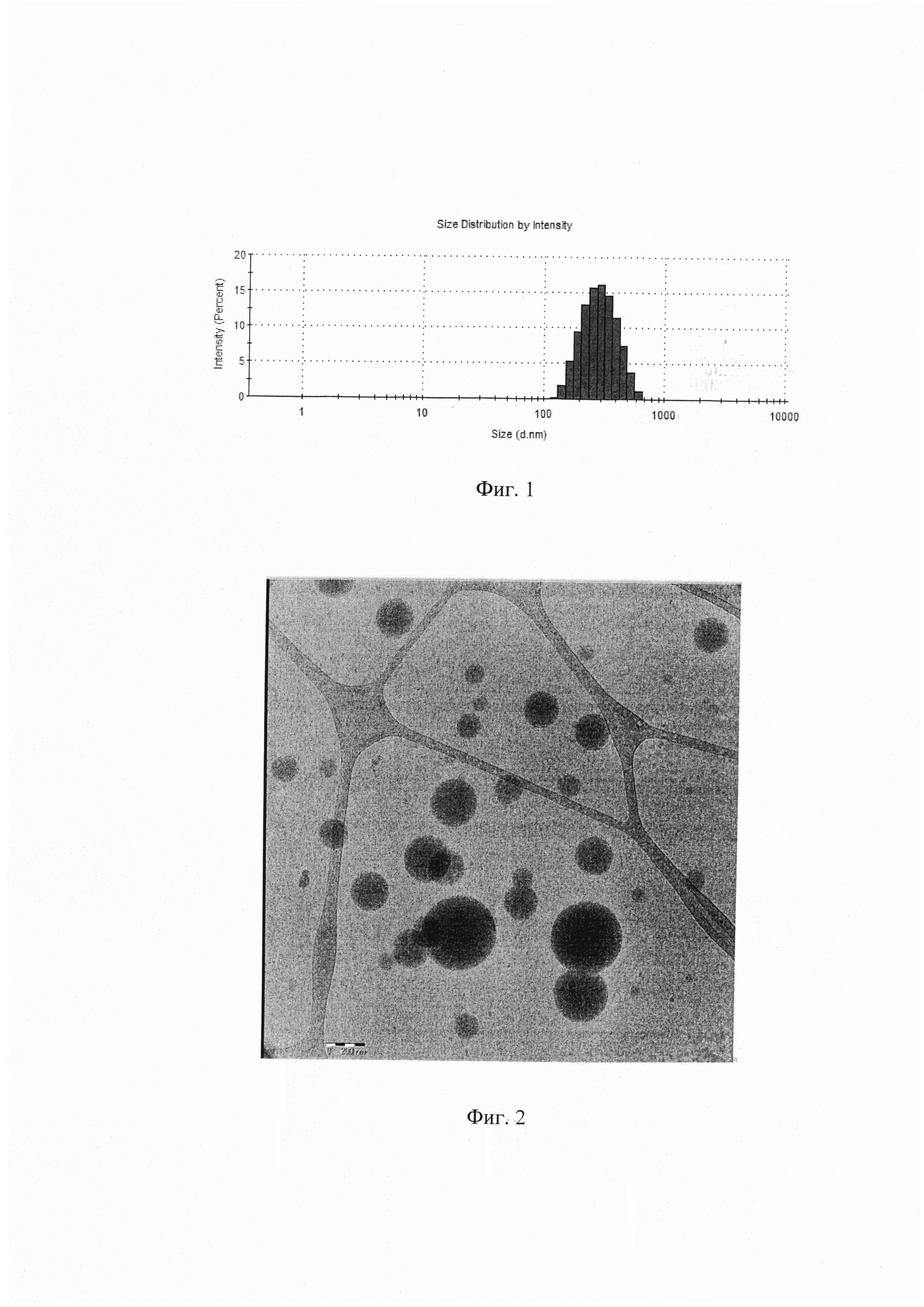 1. Противовоспалительный препарат на основе кетопрофена в виде лиофилизата для приготовления суспензии частиц со средним размером от 200 до 300 нм, содержащий активный компонент - кетопрофен, полимерный компонент - сополимер молочной и гликолевой кислот с соотношением полимерных звеньев 50:50, векторный компонент - додециламид фолиевой кислоты, поверхностно-активное вещество - поливиниловый спирт и хлорид натрия, при следующем соотношении компонентов, мас.%: 2. Способ получения препарата по п. 1, характеризующийся тем, что он включает стадии: растворения кетопрофена и сополимера молочной и гликолевой кислот в органическом растворителе метиленхлориде при соотношении массовых долей кетопрофена и сополимера в растворе равном 1:9,5; внесения в полученный раствор додециламида фолиевой кислоты; добавления полученной смеси в 0,25% раствор поливинилового спирта в воде при объемном соотношении органической и водной фаз равном 1:7; обработки смеси ультразвуком с образованием эмульсии; удаления из полученной эмульсии метиленхлорида путем перемешивания до получения суспензии частиц; добавления к полученной суспензии 20% водного раствора хлорида натрия при массовом соотношении хлорида натрия к сополимеру от 1:2,5 до 1:4; замораживания суспензии и последующей ее лиофилизации с получением лиофилизата; гамма-стерилизации полученного лиофилизата в дозе 10 кГр.Кетопрофен 5-6 Сополимер молочной и гликолевой кислот 60-64 Додециламид фолиевой кислоты 0,006-0,007 Поливиниловый спирт 10-11 Хлорид натрия 20-24