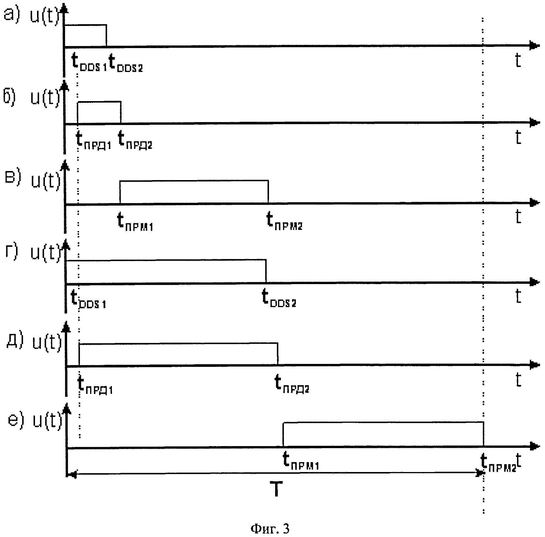 Изобретение относится к СВЧ технике, а именно к РЛС (радиолокационным станциям) с программируемой временной диаграммой и способам их функционирования, в которых формирование временной диаграммы работы радиолокационной станции во время ее работы в реальном времени позволяет настраивать РЛС согласно особенностям сканируемого пространства и поставленным задачам, и может применяться в радиолокационных системах с цифровым синтезатором сигнала и цифровыми методами синхронизации и управления РЛС. В настоящее время существуют РЛС с цифровыми и аналоговыми способами формирования зондирующего сигнала. В отличие от аналоговых цифровые способы позволяют более гибко и точно формировать характеристики зондирующего сигнала, в том числе использовать сложные сигналы с частотной и фазовой модуляцией. Формирование сигнала выполняется методом прямого синтеза в цифровом синтезаторе сигнала. Смена типа сигнала или его характеристик может выполняться в реальном времени посредством управляющих команд. На основе данной технологии разработаны РЛС с одним или несколькими сигналами для решения детерминированного набора задач с установленными ограничениями (дальность действия, разрешение по координатам, типы сигналов). Временные диаграммы работы РЛС задают согласно поставленным задачам при проектировании системы с ожидаемыми характеристиками работы приемного и передающего тракта. Система управления РЛС синхронизирует работу всех ее узлов посредством управляющих сигналов и установленного алгоритма управления. Известна РЛС с изменяемой временной диаграммой (заявка на патент США №2012235857), в которой временная диаграмма разработана только для двух типов сигнала с определенными характеристиками: для покрытия ближней и дальней зоны обзора. Данная РЛС выбрана в качестве прототипа заявленного изобретения. Недостаток РЛС прототипа заключается в том, что ее временную диаграмму и параметры сигнала нельзя изменять в реальном времени и адаптировать под параметры подстилающей поверхности, что ограничивает универсальность РЛС в смысле разнообразия выполняемых ею задач. Задачей заявленного изобретения является создание РЛС с программируемой в реальном времени временной диаграммой и программируемым в реальном времени зондирующим сигналом и способа ее функционирования с увеличенной универсальностью в смысле выполняемых ими задач, которые позволяют снять многие ограничения системы обработки сигнала, при этом обеспечив выполнение ряда новых задач, к которым относятся: увеличение дальности действия РЛС при ограниченной пиковой мощности передатчика; повышение вероятности обнаружения малоразмерных объектов на фоне неоднородной подстилающей поверхности за счет улучшения селекции по доплеровской скорости с использованием сложных сигналов разной базы; уменьшение мертвой зоны для обнаружения близко расположенных объектов. Поставленная задача решена путем создания РЛС с программируемой временной диаграммой, содержащей блок формирования временной диаграммы, который соединен с цифровым синтезатором сигнала и с блоком управления стробами передатчика и приемника, который связан с цифровым синтезатором сигнала, с передающим устройством, с приемным устройством, а также с аналого-цифровым преобразователем, который связан с б
