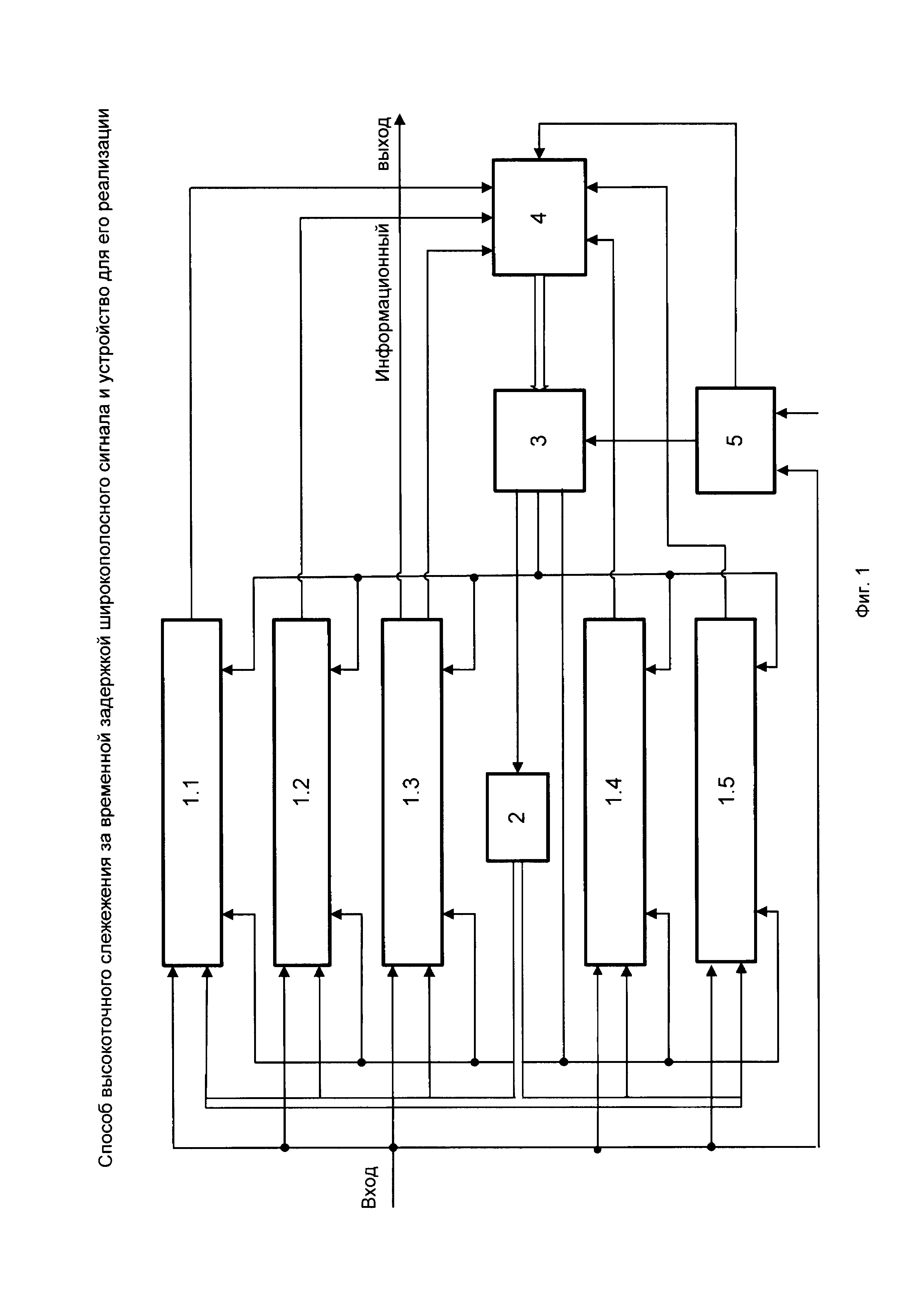 Изобретение относится к области радиотехники, в частности, к способам и устройствам временной синхронизации широкополосного сигнала (ШПС) в системах радиосвязи и сотовых системах связи множественного доступа с кодовым разделением каналов (Code Division Multiple Access - CDMA). Известно, что системы слежения за временной задержкой ШПС в любой цифровой системе связи являются обязательными элементами, без которых невозможна обработка входного сигнала. При этом качество выделяемой информации непосредственно зависит от точности оценки временной задержки ШПС и степени ее близости к истинному значению. Величина возможной ошибки зависит, как правило, от нестабильности частоты опорных генераторов приемника и передатчика и от свойств канала распространения, например, от динамики изменения задержки сигнала за счет перемещения мобильного абонента. В силу данных причин возникает необходимость обеспечения высокоточной (прецизионной) оценки временной задержки входного ШПС и соответствующей ее коррекции (компенсации) в приемнике системы связи. Оценка временной задержки ШПС обычно выполняется с использованием корреляционной обработки или согласованной фильтрации [1]. Временное слежение в системах цифровой радиосвязи реализуется на основе формирования оценки относительной временной ошибки синхронизации входного и опорного сигналов и последующей ее коррекции. Для формирования оценки временной ошибки обычно используются две последовательные процедуры. На первом этапе выполняют процедуру поиска временного положения (оценку) начала ШПС с требуемой точностью. На втором этапе пошагово формируют оценку ошибки временной задержки между входным и опорным сигналом, используя которую выполняют собственно процедуру временной синхронизации. Для формирования оценки временной ошибки часто используют временной дискриминатор, оценивающий производную взаимной корреляционной функции входного и опорного сигналов. При практической реализации системы слежения за временной задержкой возникает ряд дополнительных проблем, решение которых связано с поиском компромисса между сложностью технической реализации, точностью и динамическими характеристиками режима слежения. Кроме того, система слежения за временной задержкой является, как правило, системой автоматического управления с обратной связью. Поэтому одновременно возникает необходимость решать проблему устойчивости. Решению задачи временной синхронизации уделяется достаточно большое внимание в работах [2, 3, 4, 5, 6, 7, 8]. Типичный вариант выполнения цифрового устройства слежения за временной задержкой сигнала и алгоритм его реализации рассмотрен в монографии Витерби [6]. В данном устройстве используется слежение за задержкой типа «опережение-запаздывание», которое работает недостаточно эффективно вследствие постоянного колебания временной позиции демодулятора вокруг истинной временной позиции принимаемого сигнала. Кроме того, недостатком такого способа является медленное вхождение в режим синхронизма и низкая устойчивость используемого алгоритма синхронизации. Наиболее близким аналогом (прототипом) по технической сущности к предлагаемому является способ слежения за временной задержкой сигнала и устройство для его реализации, описанные в патенте [9]. Данный способ слежения за вр
