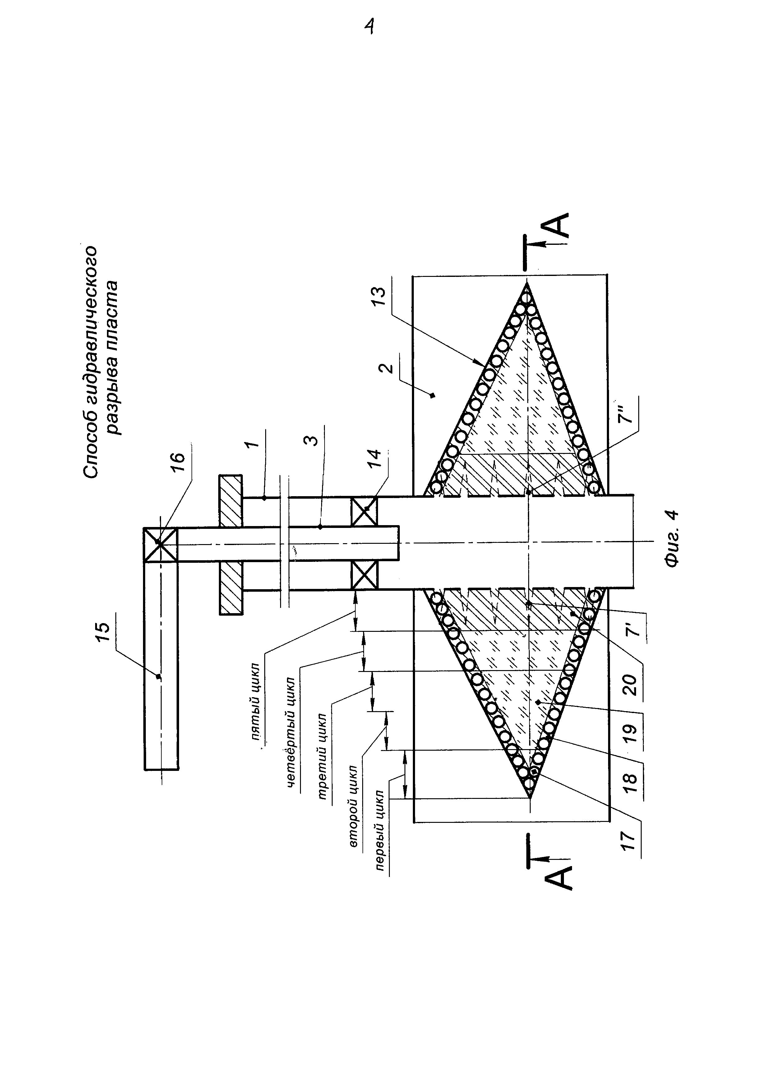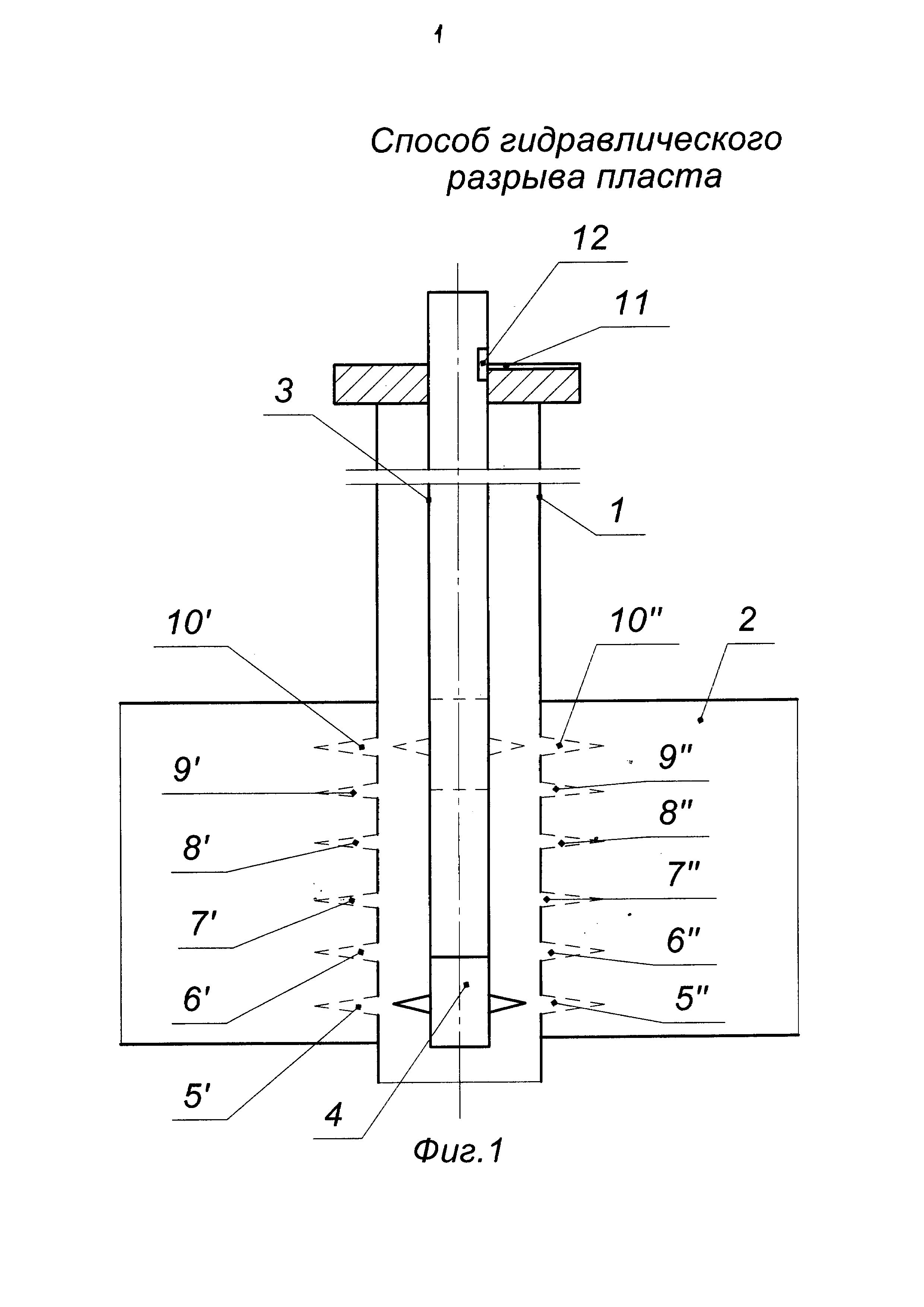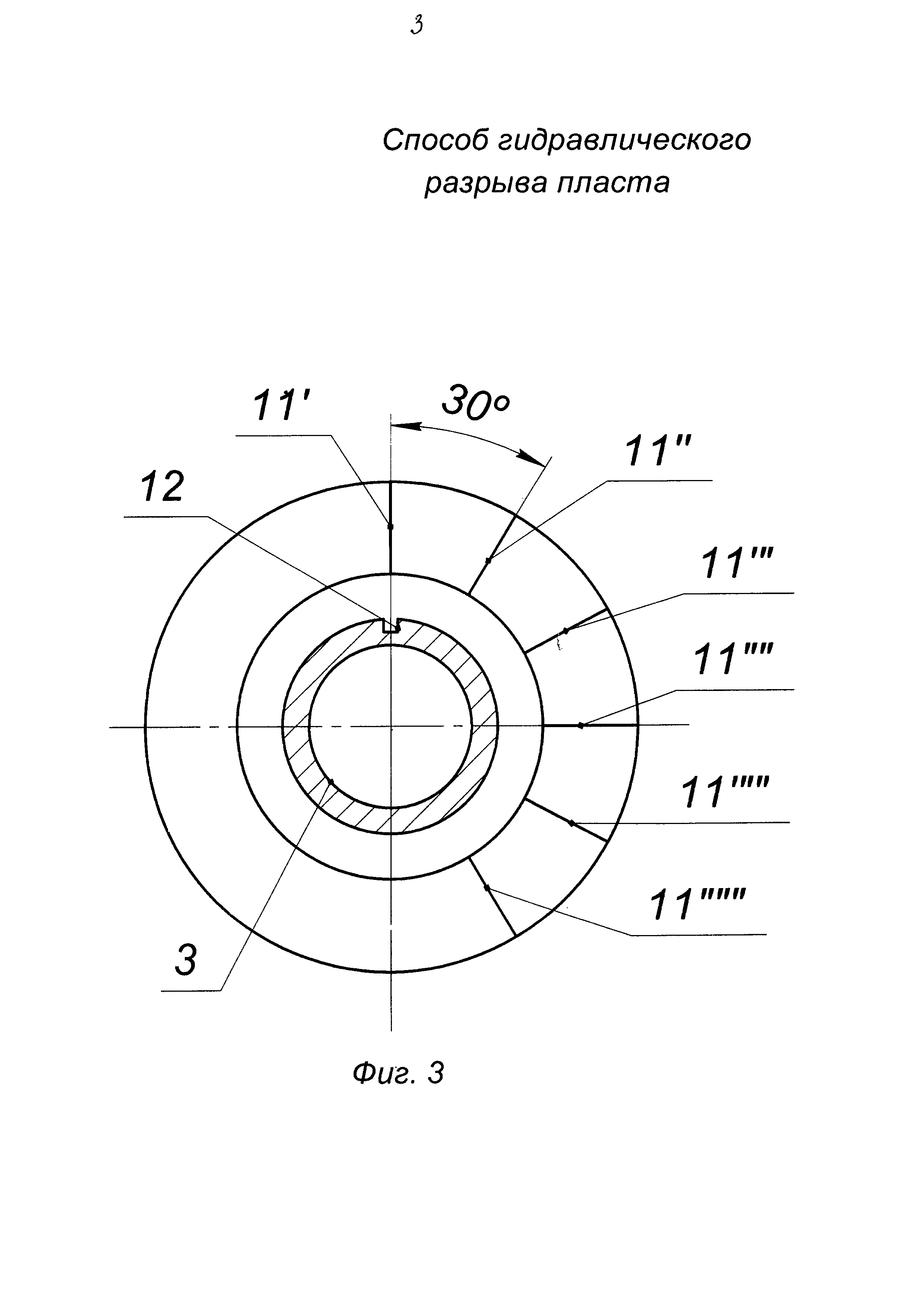 . В процессе образования трещины 13 по колонне труб в пласт 2 была закачана гелированная нефть в объеме, например, 30 м3.