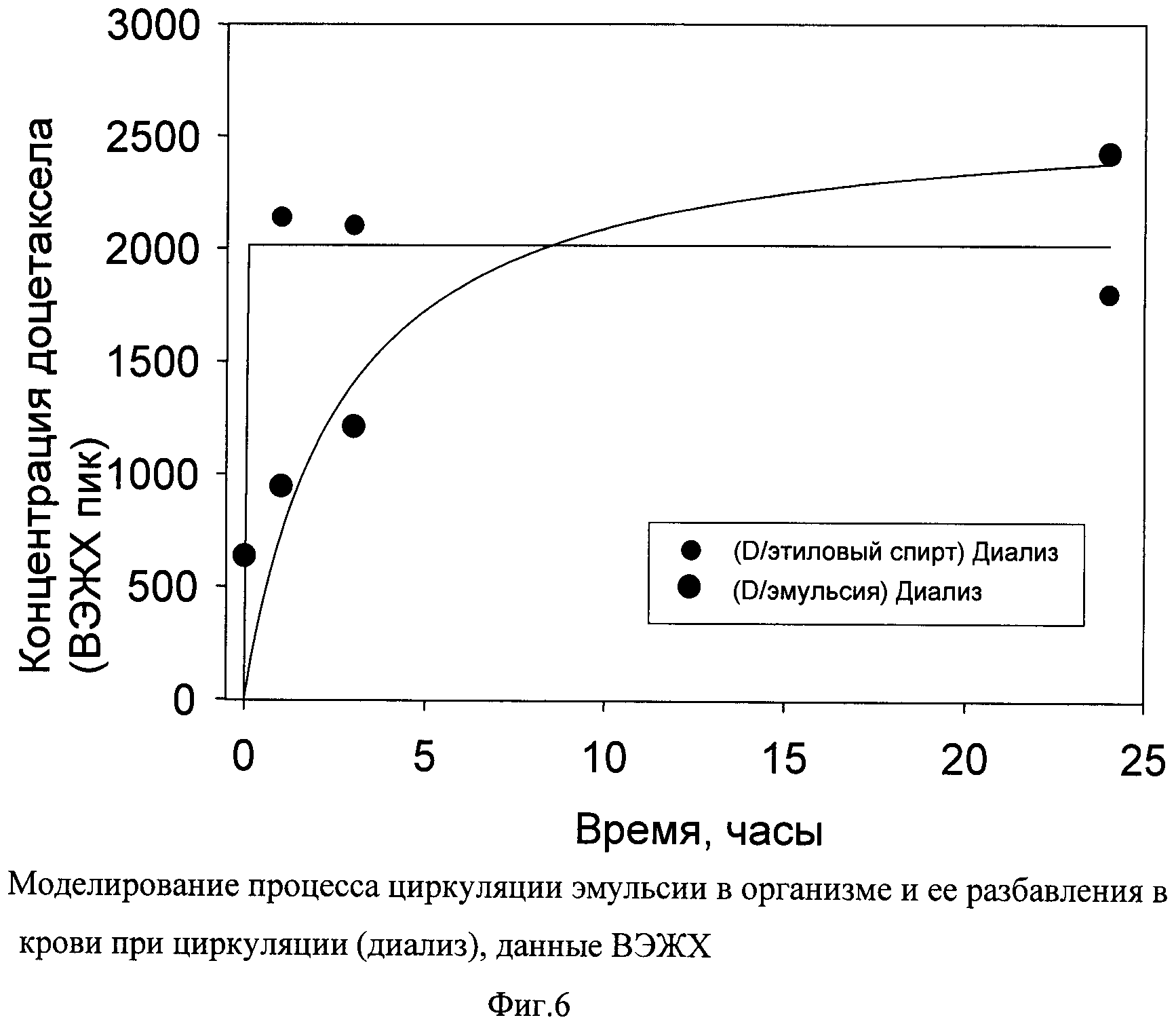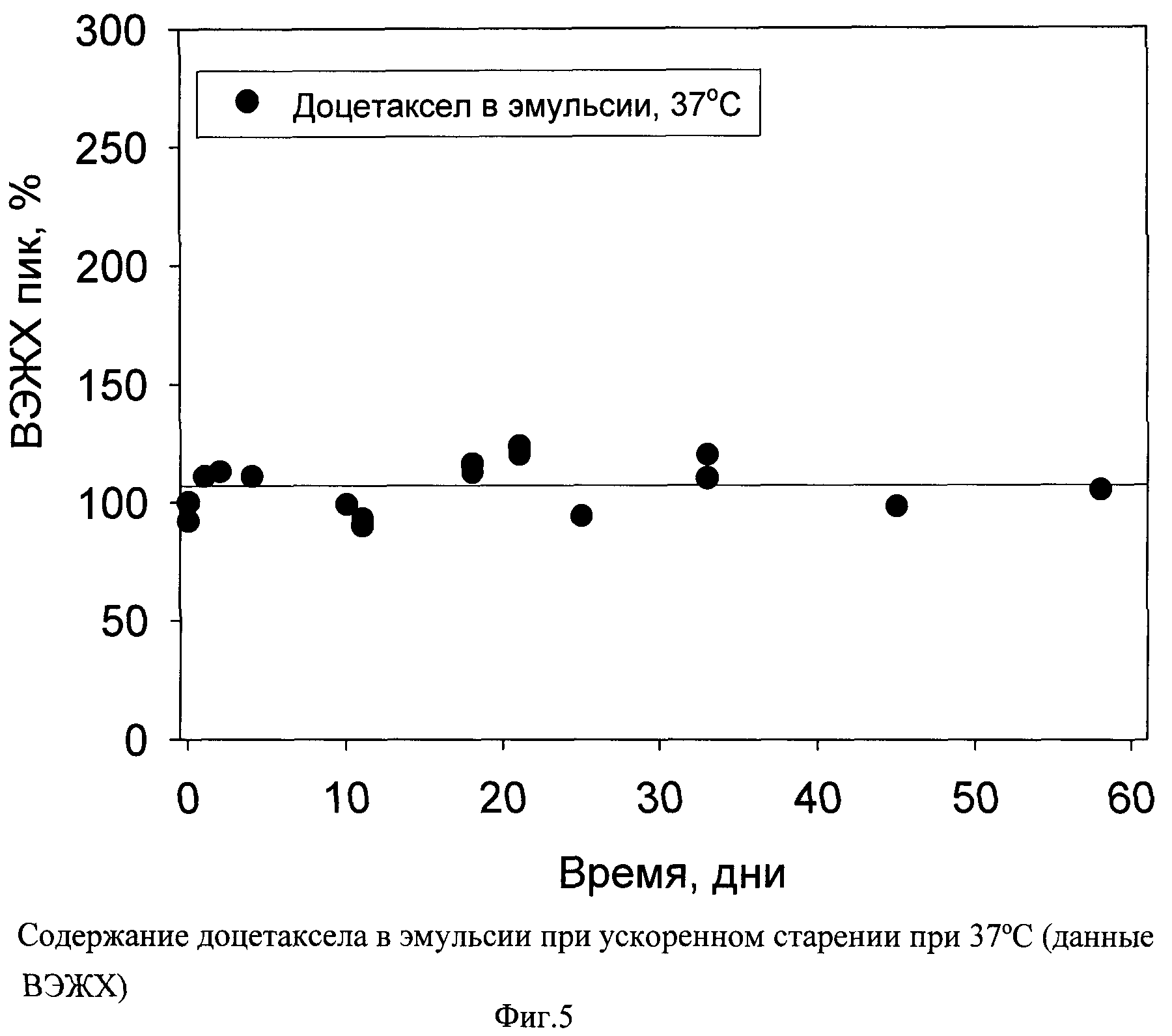1. Эмульсия типа «масло в воде» на основе лецитина, содержащая в качестве активного ингредиента плохо растворимое в воде соединение с противоопухолевой активностью из класса таксанов, предназначенная для парентерального введения человеку с целью терапии опухолевых заболеваний, содержащая названный выше активный ингредиент в интервале концентраций от 1 до 30 мг в 1 мл эмульсии, эффективное количество антиоксиданта, по крайней мере один стабилизатор эмульсии, по крайней мере один сорастворитель активного ингредиента и по крайней мере один стабилизатор активного ингредиента в эмульсии, отличающаяся тем, что в качестве стабилизатора активного ингредиента эмульсия содержит сополимер лактида и гликолида, в качестве сорастворителя активного ингредиента эмульсия содержит диметилсульфоксид в количестве от 0,01 до 3 об.%, при содержании частиц эмульсии с размером менее 100 нм не менее 80%. 2. Эмульсия по п.1, содержащая в качестве таксана паклитаксел. 3. Эмульсия по п.1, содержащая в качестве таксана доцетаксел. 4. Эмульсия по любому из предшествующих пунктов, содержащая в качестве масляной фазы соевое масло, сафлоровое масло, оливковое масло или персиковое масло, по отдельности или в виде смесей. 5. Эмульсия по п.4, содержащая в качестве масляной фазы соевое масло. 6. Эмульсия по п.1, содержащая в качестве антиоксиданта аскорбиновую кислоту, убихинон, токоферол или бензиловый спирт. 7. Эмульсия по п.1, содержащая в качестве стабилизатора эмульсии жирорастворимые или водорастворимые блок-сополимеры этиленоксида и пропиленоксида. 8. Эмульсия по п.7, содержащая в качестве водорастворимого Плюроника: F127, F108, F88, F68, L121, Р123; в качестве жирорастворимого Плюроника: L61, Р85, L101, Р103, L81, L43, L92, L62 и другие. 9. Эмульсия по п.1, содержащая качестве стабилизатора эмульсии ПАВ типа эфиров полиэтиленгликолей. 10. Эмульсия по п.9, в которой под эфирами полиэтиленгликолей подразумевают Brij 96, Brij 99, Твин 80. 11. Эмульсия по п.1, содержащая в качестве стабилизатора эмульсии гликохолат натрия, дезоксихолат натрия, олеат натрия или холестерин. 12. Эмульсия по п.1, в которой сополимер лактида и гликолида представляет собой сополимер D-лактида и L-гликолида. 13. Эмульсия по п.12, в которой отношение D-лактида к L-гликолиду составляет от примерно 70:30 до примерно 30:70. 14. Эмульсия по п.1, дополнительно содержащая добавку, препятствующую слипанию частиц при замораживании. 15. Эмульсия по п.14, в которой добавки выбирают среди сахаров, полимеров или аминокислот. 16. Эмульсия по п.1, содержащая дополнительно изотонический агент. 17. Эмульсия по п.16, в которой изотонический агент выбирают среди сахаров и полимеров. 18. Эмульсия по п.1 для парентерального введения путем внутривенной инъекции. 19. Эмульсия по п.1 для парентерального введения путем внутривенной инфузии. 20. Эмульсия по п.1 для парентерального введения путем внутриопухолевой инъекции. 21. Способ получения эмульсии по любому из пп.1-20, характеризующийся тем, что 22. Способ по п.21, в котором под активным ингредиентом подразумевают соединение класса таксанов. 23. Способ по п.21, в котором под таксанами подразумевают доцетаксел или паклитаксел. 24. Способ по п.21, в котором к водной фазе добавляют антиоксидант. 25. Способ по п.24, в котором в качестве антиоксиданта добавляют аскорбиновую кислоту. 26. Способ по п.21, в котором к масляной фазе добавляют антиоксидант. 27. 