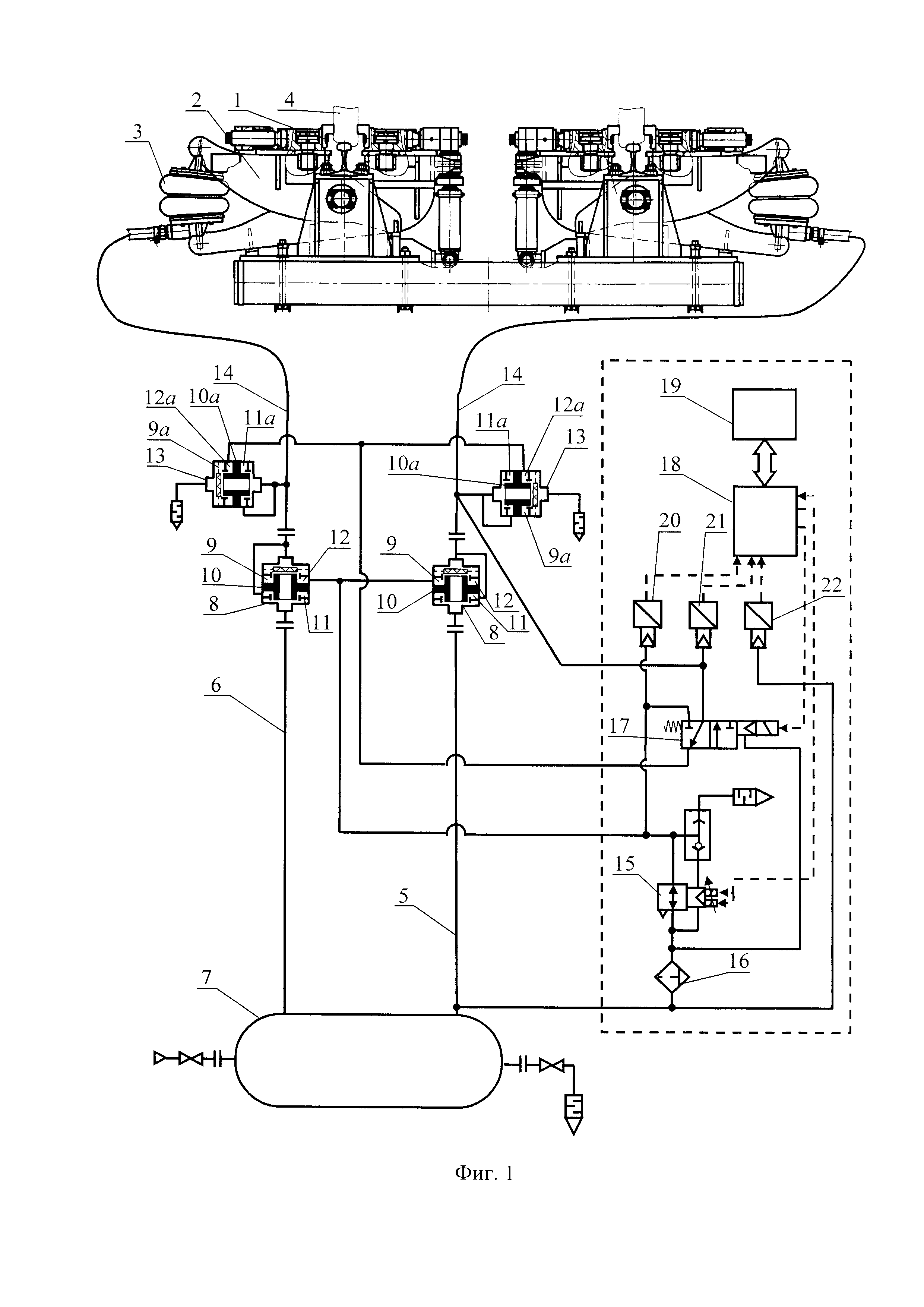 Изобретение предназначено для использования на железнодорожном транспорте, и относится к устройствам автоматики и телемеханики для управления вагонозамедлителями на сортировочных горках. Известно устройство для управления вагонозамедлителем (патент RU №2021935 от 17.04.1991), содержащее тормозные и растормаживающие электропневматические клапаны и пневмоэлектрический преобразователь давления воздуха, подключенные к тормозной воздушной магистрали, блок формирования команд управления и блок коммутации, дешифратор, блок переключения, два выхода которого соединены с соответствующими тормозными электропневматическими клапанами, два других - с соответствующими растормаживающими электропневматическими клапанами. Известно устройство для плавного управления вагонозамедлтелем (патент RU №2324615 от 30.05.2006), содержит тормозные и растормаживающие электропневмоклапаны, пневмоэлектрический преобразователь давления воздуха, микропроцессорный модуль плавного изменения давления, информационный интерфейс задания требуемого уровня давления, преобразователь сигнала обратной связи, микропроцессорный модуль плавного изменения давления, подключенный к информационному интерфейсу задания требуемого уровня давления. Известен воздухосборник с автоматическим управлением пневматического вагонного замедлителя (патент RU №2368524 от 04.04.2007), содержит пневмомагистраль, воздушный компрессор, пневмосеть вагонного замедлителя, блок клапанов, содержащий, по меньшей мере, один тормозной клапан и, по меньшей мере, один растормаживающий клапан, электропневматический блок управления тормозными и растормаживающими клапанами, подключенный при помощи дополнительного трубопровода к пневмомагистрали, а для бесступенчатого регулирования сжатого воздуха в пневмосети вагонного замедлителя используется регулятор давления, конструкция которого не раскрыта. Известно устройство управления пневматическим приводом вагонного замедлителя (Руководство по эксплуатации ДУВК.665212.002РЭ, прототип), имеющее механизмы с пневмоцилиндрами торможения правых и левых колес вагона, каждый пневмоцилиндр пневмопривода которого соединен правой и левой пневмомагистралями с воздухосборником под давлением, содержащее: установленный в каждой пневмомагистрали тормозной клапан, вход которого подсоединен к воздухосборнику, а выход - к пневмоцилиндру вагонозамедлителя, управляемый от поршневого пневмоцилиндра, поршень которого делит пневмоцилиндр на первую и вторую управляющую полости тормозного клапана; растормаживающий клапан, установленный в каждой пневмомагистрали, вход которого подсоединен к участку пневмомагистрали между выходом тормозного клапана и пневмоцилиндром вагонозамедлителя, а выход соединен с атмосферой, при этом растормаживающий клапан конструктивно идентичен тормозному клапану и является управляемым от поршневого пневмоцилиндра, поршень которого делит пневмоцилиндр на первую и вторую управляющие полости растормаживающего клапана; первый пневмоклапан с электропневматическим управлением, вход которого соединен через воздушный фильтр с источником воздуха под давлением, а выход - с первыми управляющими полостями поршневых пневмоцилиндров тормозных клапанов; второй пневмоклапан с электропневматическим управлением, вход которого соед