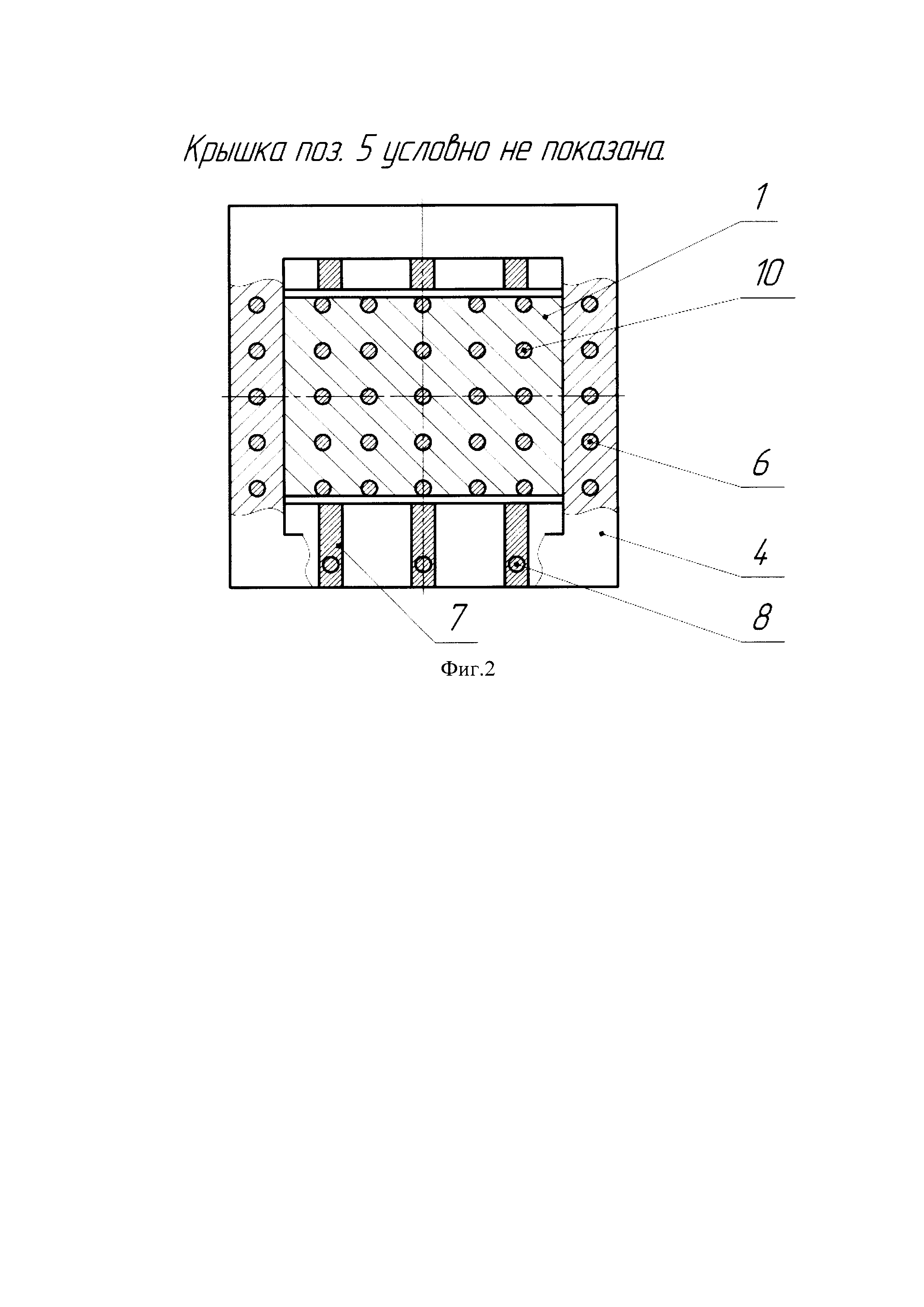 Изобретение относится к электронной технике и может быть использовано при изготовлении гибридных СВЧ интегральных схем повышенной надежности, герметизируемых шовно-роликовой или лазерной сваркой. К важным требованиям, предъявляемым к корпусу мощной СВЧ интегральной схемы относятся: - герметичность и надежность с точки зрения защиты от воздействия окружающей среды, отрицательно влияющей на параметры прибора; - эффективный отвод тепла от тепловыделяющих элементов схемы, с целью получения максимально допустимой выходной СВЧ мощности; - обеспечение работы полупроводникового СВЧ прибора в требуемом диапазоне частот; - минимальные массогабаритные характеристики. Известен металлокерамический корпус для установки кристаллов микросхем, содержащий основание из керамического материала, коваровые рамку и крышку, контактные площадки, выведенные на боковые и нижнюю поверхности основания, проводники, соединяющие внутренние контактные площадки с внешними, отличающийся тем, что основания корпусов изготовлены по технологии с низкой температурой обжига, проводники продублированы проводящими столбиками в слоях керамики [1]. Данное техническое решение направлено на уменьшение габаритных размеров корпуса и шага внешних выводов, но не направлено на обеспечение работы СВЧ микросхемы в требуемом диапазоне частот. Известен металлокерамический корпус микросхемы, содержащий металлизированную керамическую плату с углублением для кристалла, металлический ободок, соединенный пайкой с платой, и металлическую крышку, приваренную к ободку, в котором соединение крышки с корпусом осуществляется через две рамки, соединенных твердым припоем. Одна из рамок имеет на наружной поверхности фаску, ограничивающую ширину паяного шва между рамками [2]. Данное техническое решение направлено на повышение качества и надежности герметизации микросхем методом односторонней контактной шовной сварки, но не направлено на обеспечение работы СВЧ микросхемы в требуемом диапазоне частот. Ближайшим аналогом является корпус интегральной схемы СВЧ диапазона, содержащий металлическое основание, расположенную на нем одной своей стороной с внешними выводами диэлектрическую пластину с микрополосковыми линиями на ее противоположной стороне по периферии для электрического соединения с интегральной схемой СВЧ-диапазона, которые электрически соединены с внешними выводами посредством сквозных металлических проводников в диэлектрической пластине, и крышку, герметично соединенную по периметру с диэлектрической пластиной, в центре диэлектрической пластины выполнено отверстие для размещения в нем интегральной схемы СВЧ-диапазона с возможностью теплового контакта интегральной схемы СВЧ-диапазона с основанием. Крышка с металлическим основанием электрически соединена металлизацией с металлическим основанием [3]. Основным недостатком данного корпуса является отсутствие возможности вывода резонансной частоты корпуса за пределы диапазона рабочих частот микросхемы. Совпадение резонансной частоты корпуса с диапазоном рабочих частот микросхемы может спровоцировать возбуждение генерации микросхемы. Известно, что паразитные реактивности корпусов существенно влияют на электрические характеристики СВЧ микросхем, в частности, на рабочий диапазон част