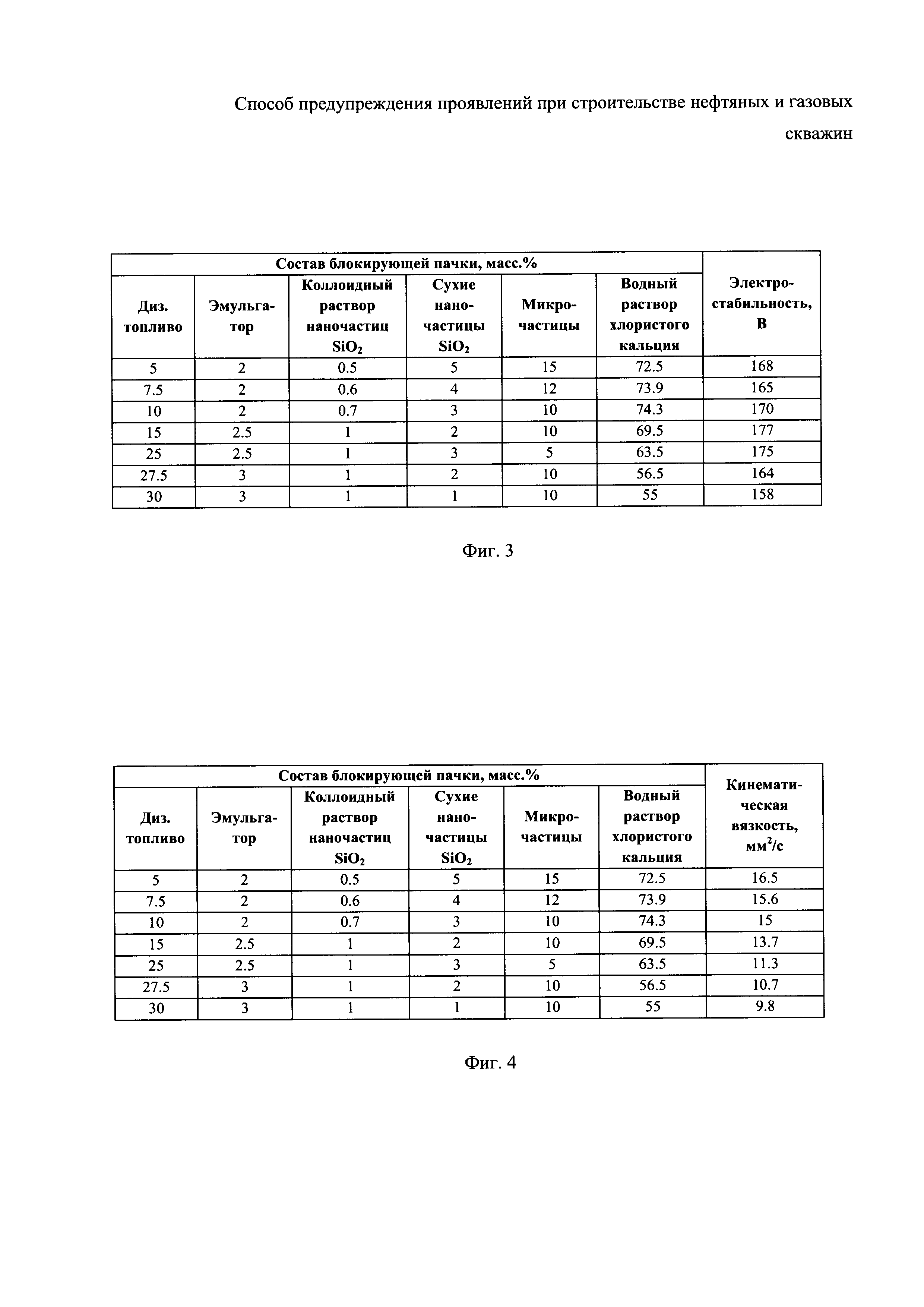 1. Способ предупреждения проявлений при строительстве нефтяных и газовых скважин, включающий последовательную закачку в пласт блокирующей пачки и продавочной жидкости, при этом в качестве блокирующей пачки используют эмульсионно-суспензионную систему, содержащую (мас.%): дизельное топливо или подготовленную нефть с пункта подготовки и перекачки нефти - 5-20, эмульгатор - 2-3, коллоидный раствор наночастиц двуокиси кремния с размером частиц от 5 до 100 нм - 0,5-1, сухую аморфную двуокись кремния (92-99%) с размером частиц от 5 до 500 нм - 3-5, микрочастицы ильменита или тетраоксида тримарганца с размером частиц от 0,2 до 5 мкм - 10-15, водный раствор хлористого кальция или хлористого калия - остальное, а в качестве продавочной жидкости используют водный раствор хлористого кальция или хлористого калия. 2. Способ по п. 1, отличающийся тем, что в качестве коллоидного раствора наночастиц двуокиси кремния используют композицию, содержащую (мас.%) двуокись кремния - 31-32,5 в монометиловом эфире пропиленгликоля - 67, воду - остальное. 3. Способ по п. 1, отличающийся тем, что в качестве коллоидного раствора наночастиц двуокиси кремния используют композицию, содержащую (мас.%) двуокись кремния - 30-31 в изопропаноле - 67-69 и метиловом спирте - остальное. 4. Способ по п. 1, отличающийся тем, что в качестве коллоидного раствора наночастиц двуокиси кремния используют композицию, содержащую (мас.%) двуокись кремния - 29-31 в этиленгликоле - остальное. 5. Способ по п. 1, отличающийся тем, что в качестве эмульгатора используют композицию, содержащую (мас.%): эфиры высших ненасыщенных кислот жирного ряда и смоляных кислот - 40-42, окись амина - 0,7-1, высокомолекулярный органический термостабилизатор - 0,5-1, дизельное топливо - остальное.