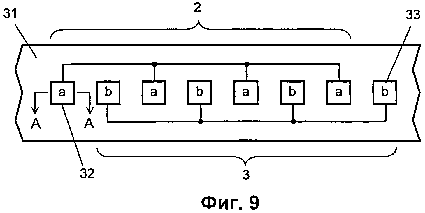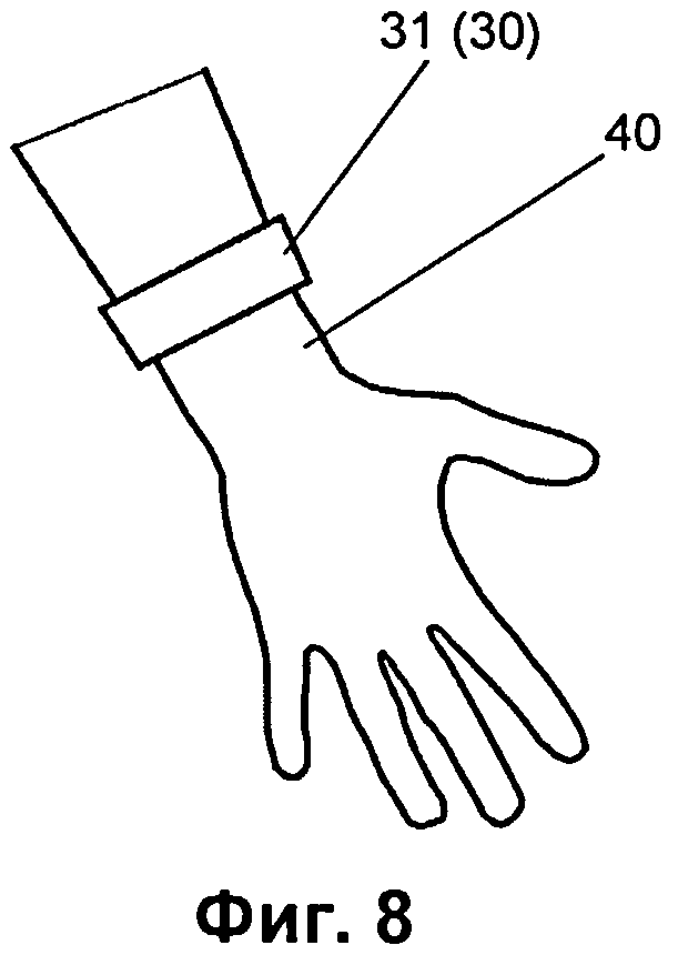 1. Устройство для регистрации сигналов пульсовой волны и дыхательного цикла человека, включающее 2. Устройство по п.1, характеризующееся тем, что частота несущего сигнала, генерируемая микроконтроллером на выходе первого порта ввода-вывода, составляет от 1 кГц до 4 МГц. 3. Устройство по п.1, характеризующееся тем, что упомянутая полоса частот, соответствующая полосе частот сигнала пульсовой волны, составляет от 1 Гц до 25 Гц. 4. Устройство по п.1, характеризующееся тем, что упомянутая полоса частот, соответствующая полосе частот сигнала дыхательного цикла, составляет от 0,1 Гц до 25 Гц. 5. Устройство по п.1, характеризующееся тем, что верхнее плечо частотно-зависимого делителя напряжения выполнено в виде параллельной RC цепочки, а цепочки нижнего плеча частотно-зависимого делителя напряжения образованы двумя отдельными последовательными RC цепочками, одни концы которых объединены и являются упомянутым общим концом цепочек нижнего плеча упомянутого делителя, а два других конца являются упомянутыми раздельными концами цепочек нижнего плеча упомянутого делителя. 6. Устройство по п.1, характеризующееся тем, что верхнее плечо частотно-зависимого делителя напряжения выполнено в виде параллельной RC цепочки, а цепочки нижнего плеча частотно-зависимого делителя напряжения образованы двумя последовательными RC цепочками, имеющими общий резистор, свободный конец которого является упомянутым общим концом цепочек нижнего плеча упомянутого делителя, а свободные концы конденсаторов являются упомянутыми раздельными концами цепочек нижнего плеча упомянутого делителя. 7. Устройство по п.1, характеризующееся тем, что верхнее плечо частотно-зависимого делителя напряжения выполнено в виде параллельной RC цепочки, а цепочки нижнего плеча частотно-зависимого делителя напряжения образованы двумя последовательными RC цепочками, имеющими общий конденсатор, свободный конец которого является упомянутым общим концом цепочек нижнего плеча упомянутого делителя, а свободные концы резисторов являются упомянутыми раздельными концами цепочек нижнего плеча упомянутого делителя. 8. Устройство по п.1, характеризующееся тем, что имеет держатель, в котором размещены компоненты электрической схемы устройства, включая упомянутые электроды, первый и второй операционные усилители, амплитудный детектор, переключаемый частотно-зависимый делитель напряжения и микроконтроллер, при этом держатель выполнен с возможностью закрепления вокруг запястья человека так, чтобы электроды примыкали к запястью, каждый из электродов выполнен секционным, причем секции одного и другого электродов расположены попеременно в один ряд на внутренней поверхности держателя. 9. Устройство по п.8, характеризующееся тем, что число секций каждого электрода составляет по меньшей мере три. 10. Устройство по п.8, характеризующееся тем, что каждая секция обоих электродов имеет контактную площадь по меньшей мере 1 см2. 11. Устройство по п.8, характеризующееся тем, что держатель выполнен в виде гибкой ленты, закрепляемой на запястье с помощью застежки. 12. Устройство по п.8, характеризующееся тем, что держатель выполнен в виде браслета, имеющего секции, шарнирно соединенные между собой. 13. Устройство по п.8, характеризующееся тем, что держатель выполнен в виде надеваемой на запястье манжеты. 14. Устрой