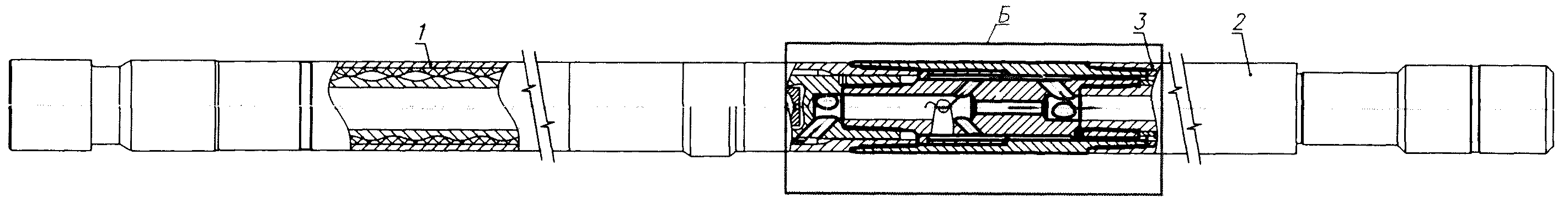 Полезная модель относится к гидравлическим забойным двигателям, размещаемым в скважине и применяется для бурения и ремонта нефтяных и газовых скважин. В качестве прототипа принято описание изобретения «Забойный двигатель» к патенту РФ №2232244, кл. E21B 4/02, опубл. 10.07.2004 г.Упомянутый забойный двигатель содержит двигательную секцию и шпиндельную секцию, состоящую из корпуса, полого входного вала, осевой опоры, радиальных опор. В корпусе шпиндельной секции выше верхней радиальной опоры неподвижно по отношению к корпусу расположена проточная втулка с каналами (пазами) на ее внутренней поверхности, служащая дополнительной радиальной опорой, а полый выходной вал или соединительная муфта имеют окна для протока бурового раствора внутрь полого выходного вала к долоту, которые при вращении полого выходного вала от двигательной секции периодически перекрываются внутренней поверхностью проточной втулки, а осевая опора полого выходного вала подпружинена тарельчатыми пружинами, дающими возможность осевого перемещения полого выходного вала относительно корпуса на 1-2 мм в пределах жесткости пружин и осевого усилия на долоте. Признаки известного забойного двигателя, совпадающие с признаками заявляемой полезной модели, заключаются в наличии двигательной секции, проточной втулки с пазами на внутренней поверхности и шпиндельной секции, состоящей из корпуса, полого выходного вала, осевой и радиальной опор. Причина, препятствующая получению в известном техническом решении технического результата, который обеспечивается полезной моделью, заключается в том, что в прототипе для потока рабочей жидкости предусмотрено единое русло, составленное из полости двигательной секции, соединенной с полостью проточной втулки, которая связана с полостью выходного вала шпиндельной секции окнами. При вращении полого выходного вала окна периодически перекрываются выступами проточной втулки, вследствие чего перекрывается также поток рабочей жидкости, создавая его прерывающуюся пульсацию. При этом при перекрытых окнах полого выходного вала создается возможность запирания рабочей жидкости в полости двигательной секции. При прекращении движения рабочей жидкости двигатель останавливается. Повторный запуск двигателя сопряжен с дополнительными эксплуатационными затратами и трудностями. Задача, на решение которой направлена полезная модель, заключается в улучшении эксплуатационных возможностей винтового забойного двигателя. Технический результат, обеспечивающий решение указанной задачи, заключается в исключении запирания рабочей жидкости в полости двигателя, а следовательно и его несанкционированной остановки вследствие перекрытия окон полого выходного вала выступами проточной втулки. Указанный технический результат достигается тем, что в винтовом забойном двигателе, включающем двигательную секцию, проточную втулку с пазами на ее внутренней поверхности, шпиндельную секцию, состоящую из корпуса, полого выходного вала, осевых и радиальных опор, согласно полезной модели проточная втулка жестко закреплена в промежуточном корпусе, расположенном между двигательной и шпиндельной секциями, и в котором соосно проточной втулке установлен дополнительный полый вал, полость которого соединена с полостью полого выходного вала шпиндельно