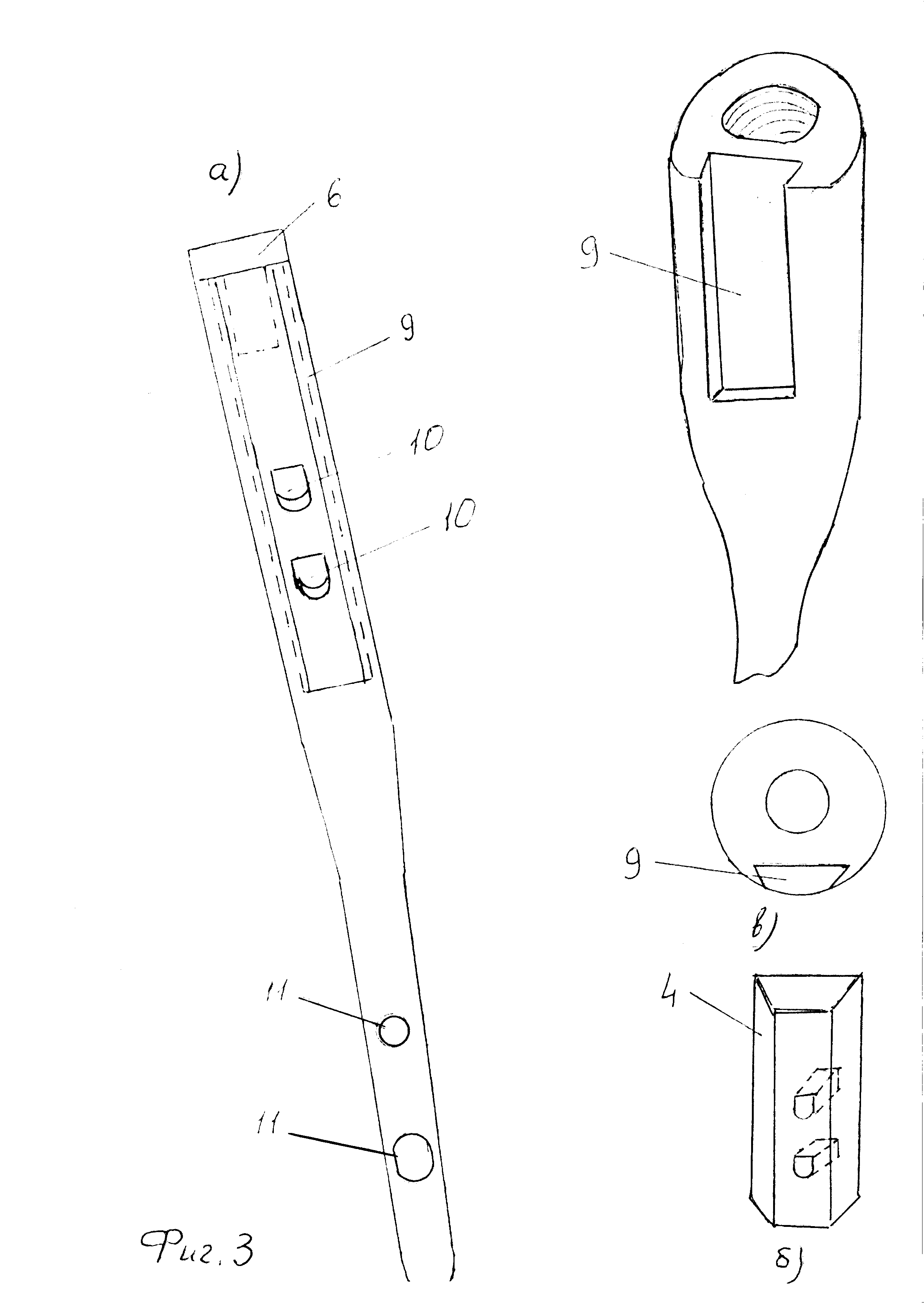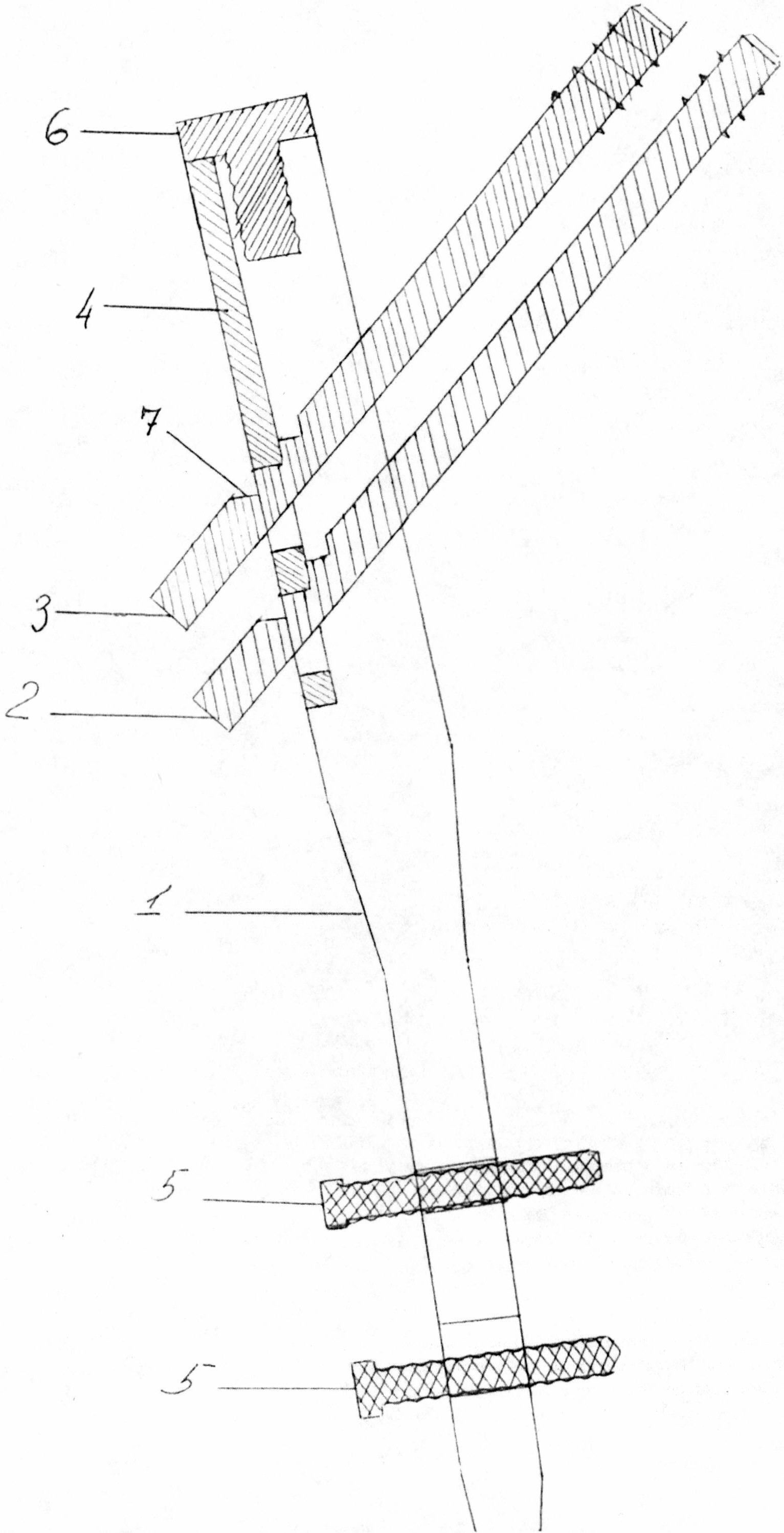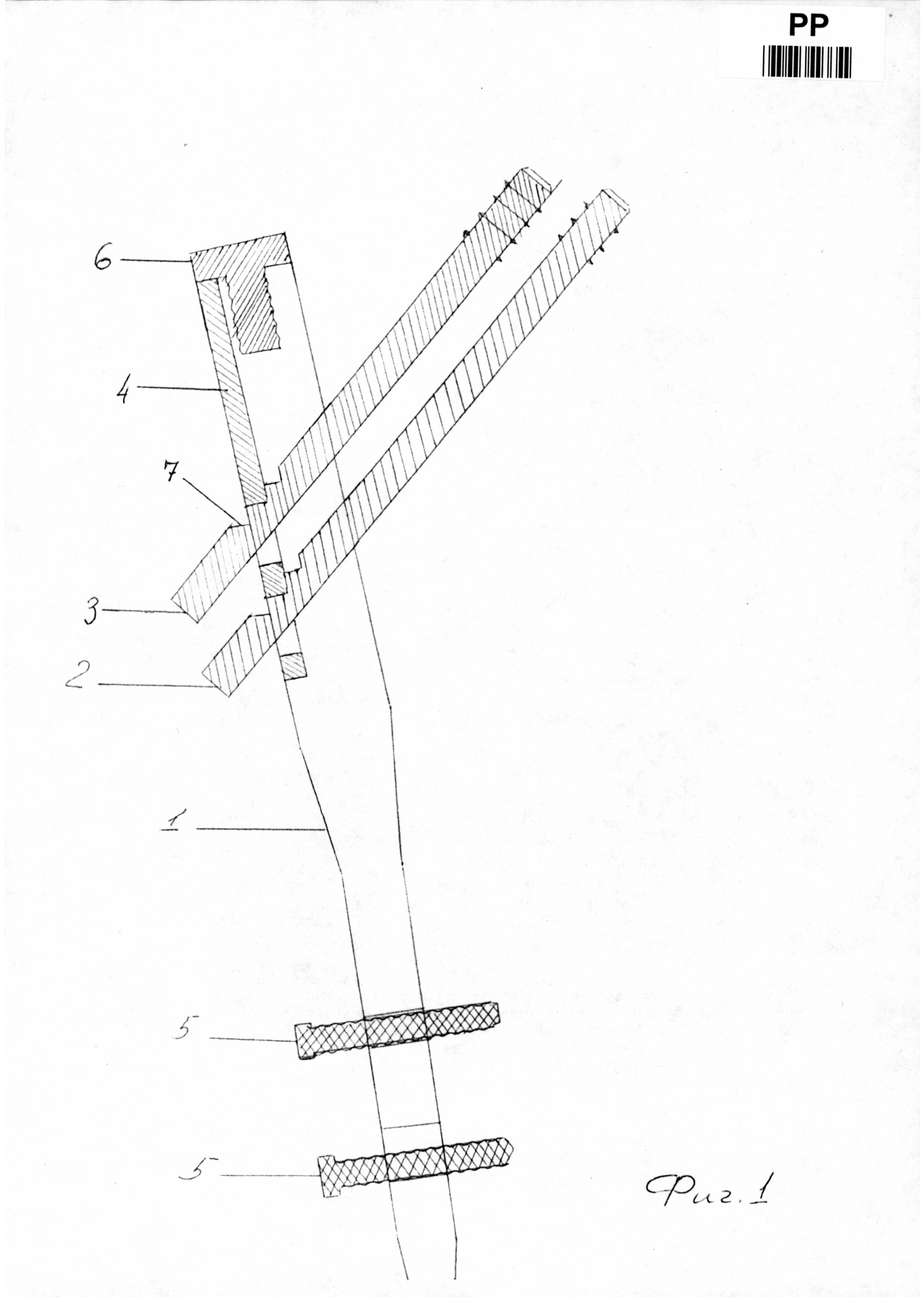 Предложение относится к медицине, а именно к травматологии и ортопедии и может быть использовано для хирургического лечения оскольчатых (нестабильных) переломов проксимального отдела бедренной кости. Переломы проксимального отдела бедренной кости являются распространенной патологией, особенно у пожилых пациентов (от 10 до 20% всех повреждений опорно-двигательного аппарата), и их лечение является чрезвычайно актуальной проблемой оперативной травматологии. При остеосинтезе данного типа переломов необходима надежная фиксация отломков, компенсирующая нагрузку (вертикальную, осевую, ротационную) при опоре на оперированную конечность и, таким образом, предотвращающая вторичное смещение отломков, что особенно важно в условиях остеопороза. Лечение переломов проксимального отдела бедренной кости остается сложной проблемой в связи с большими трудностями, возникающими у хирурга при выборе конструкции фиксатора. Существующие фиксаторы в большинстве своем не обеспечивают нейтрализации рычаговых свойств периферического костного фрагмента (Пичхадзе И.М. Системный подход к выбору и компьютеризации стабильного чрескостного остеосинтеза при переломах длинных костей. Автореферат дисс. доктора мед. наук., М., 1994.). Трудность решения вопроса усугубляется тем, что оперативное вмешательство должно быть как можно менее травматичным, т.е. через минимальный разрез мягких тканей и минимальное повреждение костной ткани. Одним из основных видов устройств, используемых в настоящее время для металлоостеосинтеза при переломах проксимального отдела бедренной кости, является интрамедуллярный стержень (проксимальный бедренный штифт, вертельный стержень). Практика последних лет показала, что использование внутрикостных штифтов для лечения переломов бедренной кости сокращает сроки госпитализации с 6 месяцев в гипсе до 2-3 недель в стационаре и без гипса. К тому же возможность ранней активизации позволяет пациентам встать на костыли (ходунки) вскоре после операции и дать раннюю нагрузку на конечность. Это позволяет разрабатывать движения в бедренном, коленном и голеностопном суставах и способствует дополнительному сокращению сроков выздоровления. Устройства этого типа представляют собой конструкцию из интрамедуллярного стержня, который блокируется в костномозговом канале бедренной кости блокирующим винтом, несущего (основного) винта, который вводят в шейку бедренной кости по ее оси через отверстие в интрамедуллярном стержне. Несущий винт препятствует вертикальному смешению, а интрамедуллярный стержень - излишнему смещению по оси шейки бедренной кости. Ротационную стабильность самой конструкции достигают блокированием несущего винта в интрамедуллярном стержне с помощью винта, который водят в канал в торце интрамедуллярного стержня. Главным недостаткам устройств такого типа являются возможность ротационного смешения проксимального отломка на несущем винте, а также возможная миграция винтов по типу Z-эффекта. Это обуславливает необходимость в проведении деротационного винта при оскольчатом (нестабильном) характере перелома или низком качестве костной ткани (остепороз). Известно устройство для металлоостеосинтеза при переломах проксимального отдела бедренной кости (пат РФ 2271768). Устройство для лечения сложных переломов
