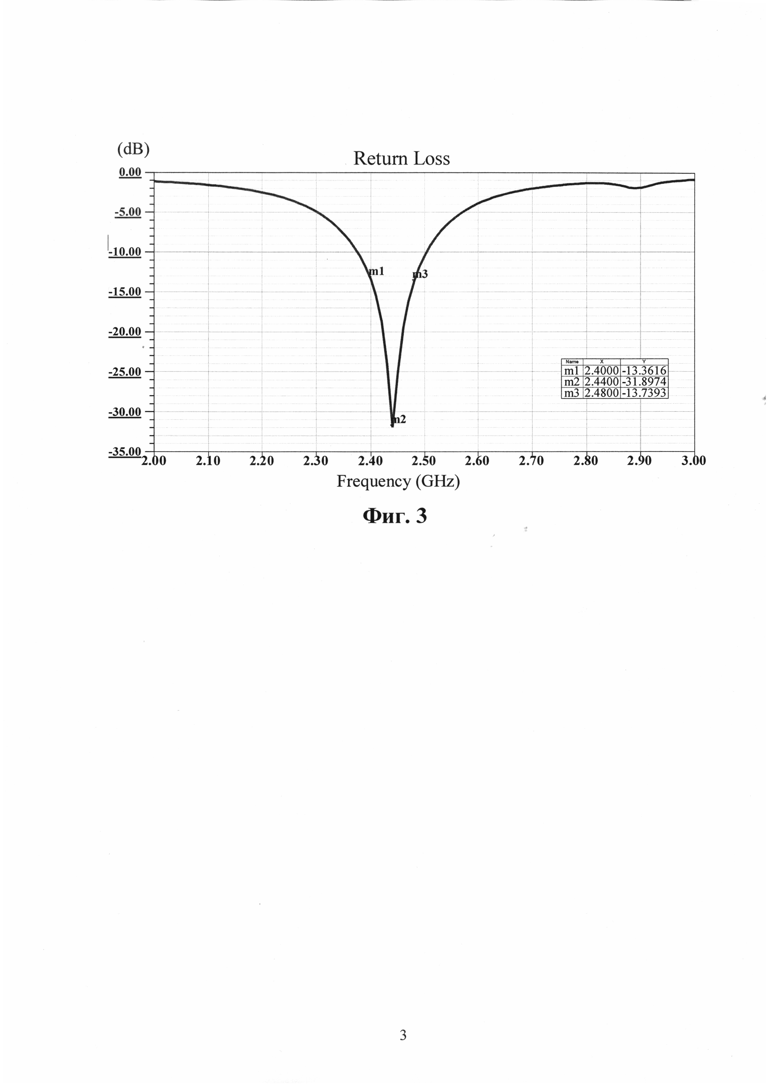 Встроенная печатная J-образная антенна, содержащая параллельные плечи антенны в виде проводников разных размеров на печатной плате радиоустройства, соединяющий их у основания проводник на печатной плате радиоустройства, а также точки подключения линии питания, соединяющей антенну с приёмопередатчиком, установленным на печатной плате радиоустройства, отличающаяся тем, что в качестве проводника, соединяющего параллельные плечи антенны, используется общий полигон земли печатной платы радиоустройства, площадь которого больше суммы площадей параллельных проводников, а соединение антенны с приёмопередатчиком, расположенным на общей печатной плате радиоустройства, выполнено в виде проводника в нижнем слое печатной платы радиоустройства, который соединяется через переходное металлизированное отверстие с излучателем большей длины, причём этот проводник расположен под плечом антенны меньшего размера и переходит под большее плечо антенны около переходного металлизированного отверстия.