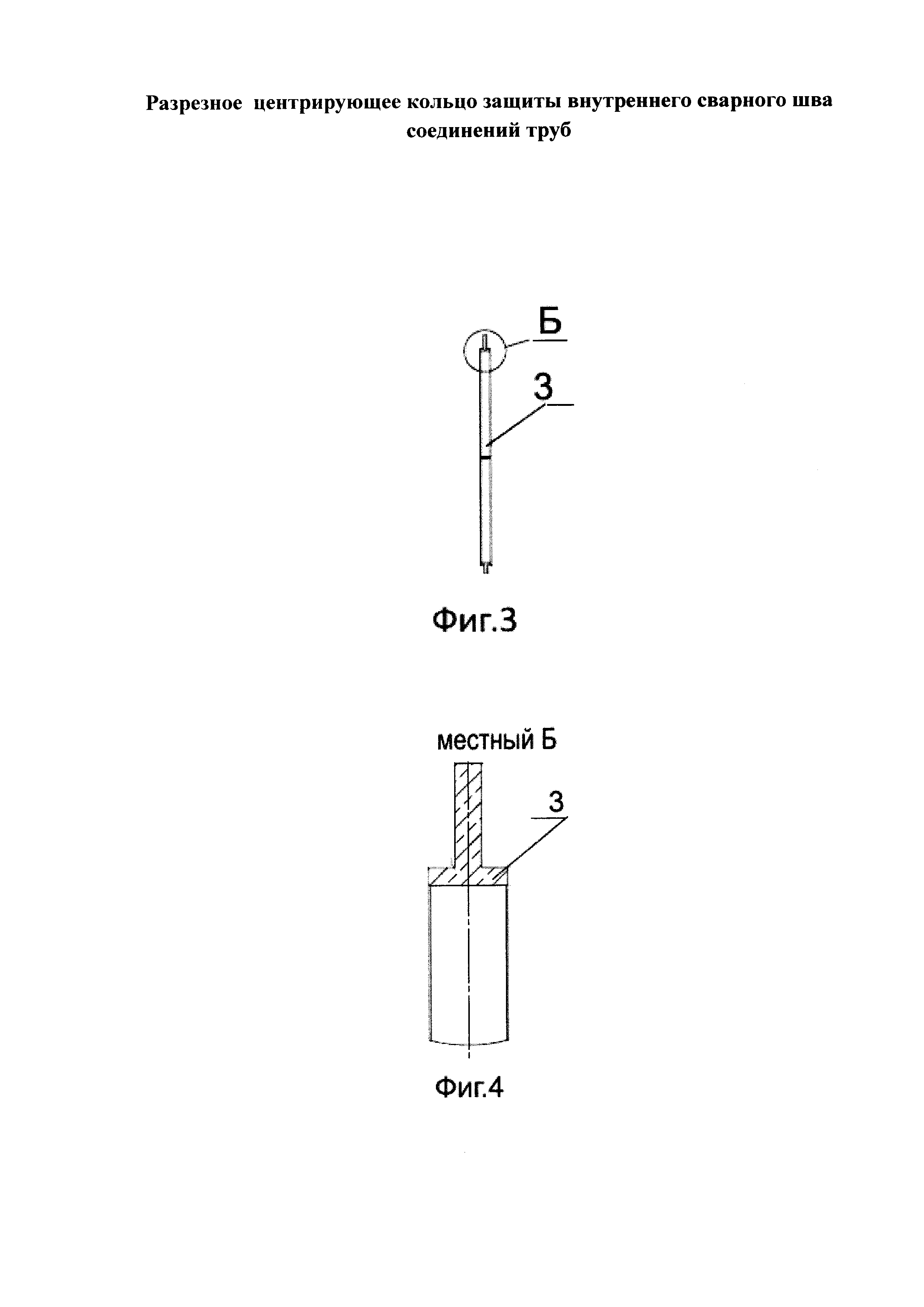 1 Разрезное центрирующее кольцо защиты внутреннего сварного шва соединений труб, включает разрезное кольцо, выполненное из листового металла методом пластической деформации и имеющее профильное углубление - полость и расплавляемую вставку, выполненную из профилированной сварочной проволоки, помещенную и завальцованную в профильное углубление - полость, отличающееся тем, что оно имеет ребра жесткости. 2. Разрезное центрирующее кольцо по п. 1, отличающееся тем, что функцию ребер жесткости выполняют отогнутые под 90° края разрезного кольца.