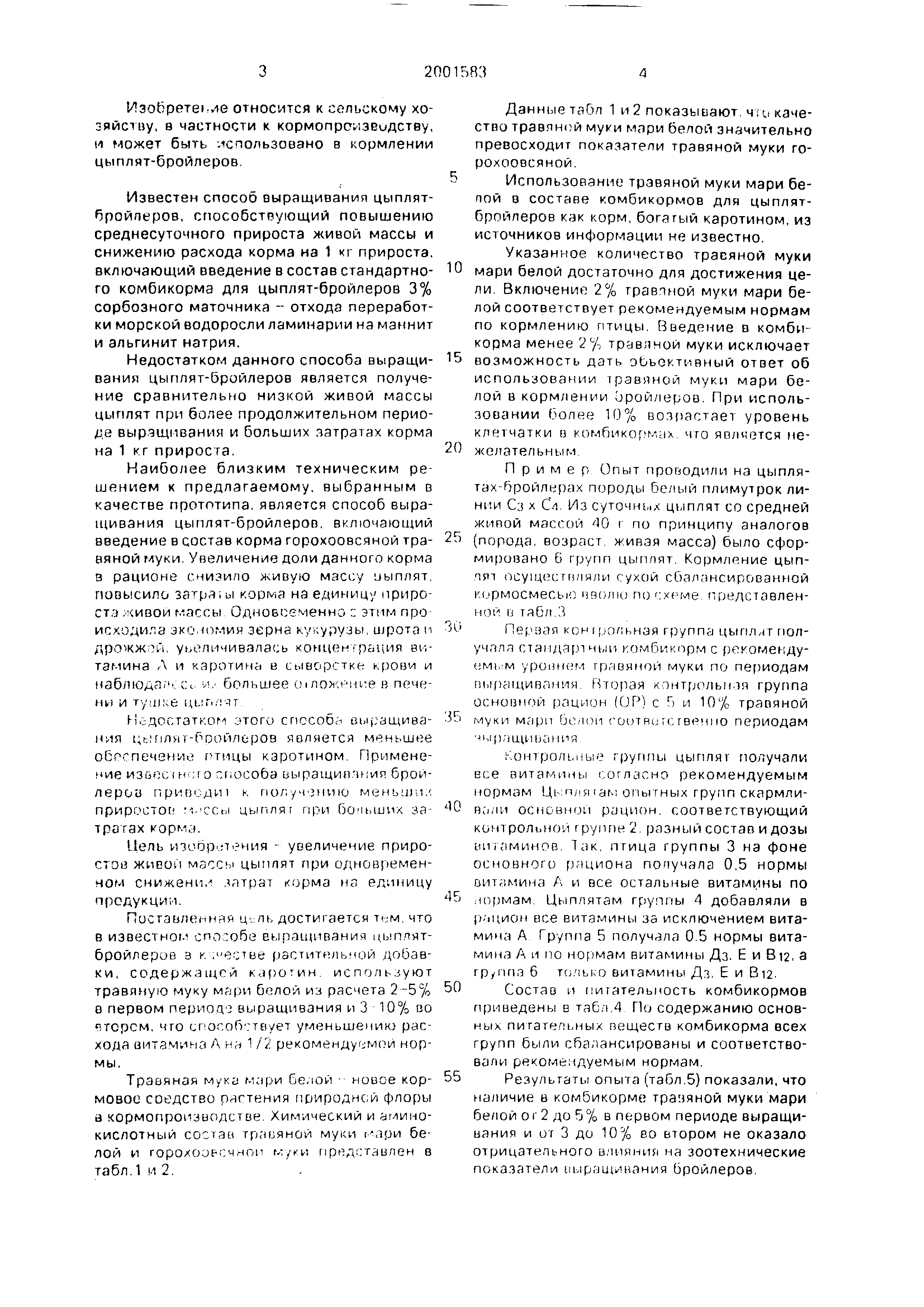 Chenopodium album, причем в возрасте от 1 до 28 дней скармливают 2 - 5% мари бе-