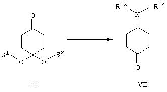 формулы II подвергают гидроаминированию соединением формулы HNR04R05 с образованием производного 4-аминоциклогексанона формулы VI после чего при необходимости в любой последовательности и при необходимости неоднократно проводят ацилирование, алкилирование