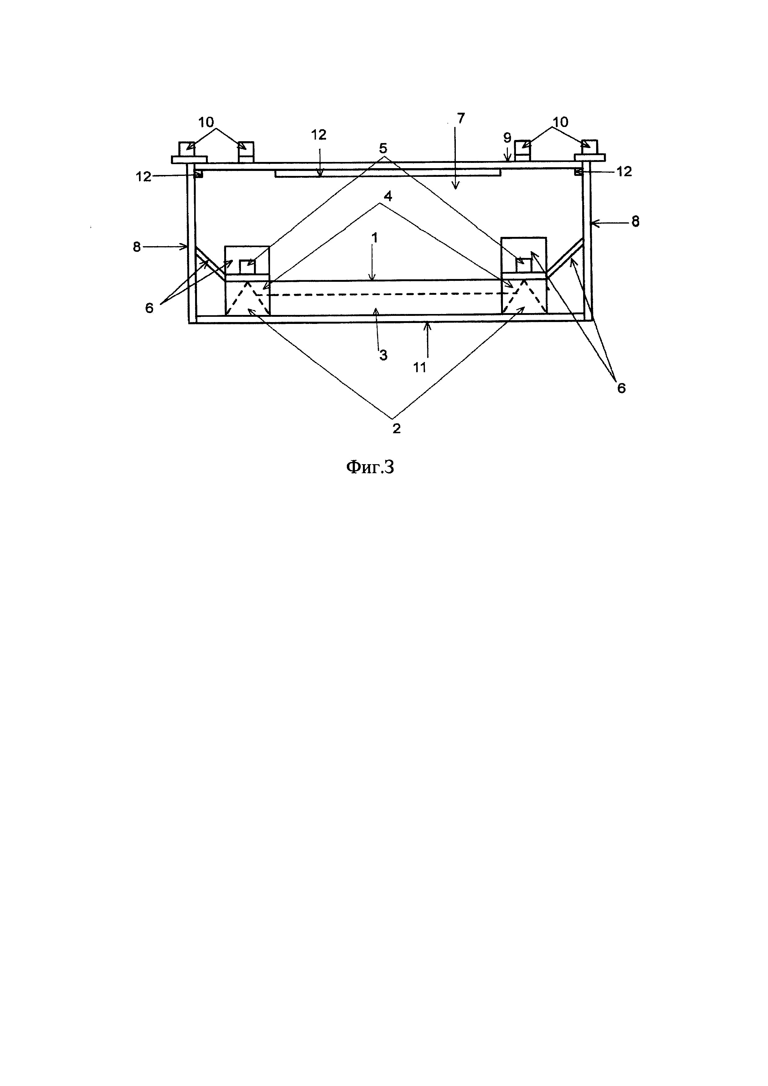 фиг.3 - схематичное изображение поперечного сечения устройства для перевозки контейнеров в полувагоне.