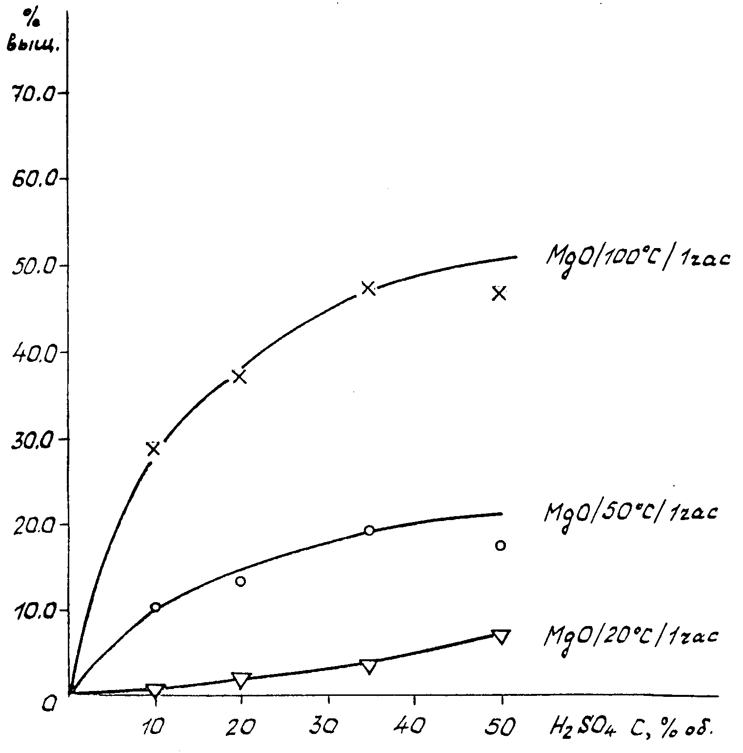 кинетические кривые процесса вскрытия в зависимости от концентрации серной кислоты и температуры. П р и м е р 1. 250 г серпентинита, фракция 0,25-0,1 мм