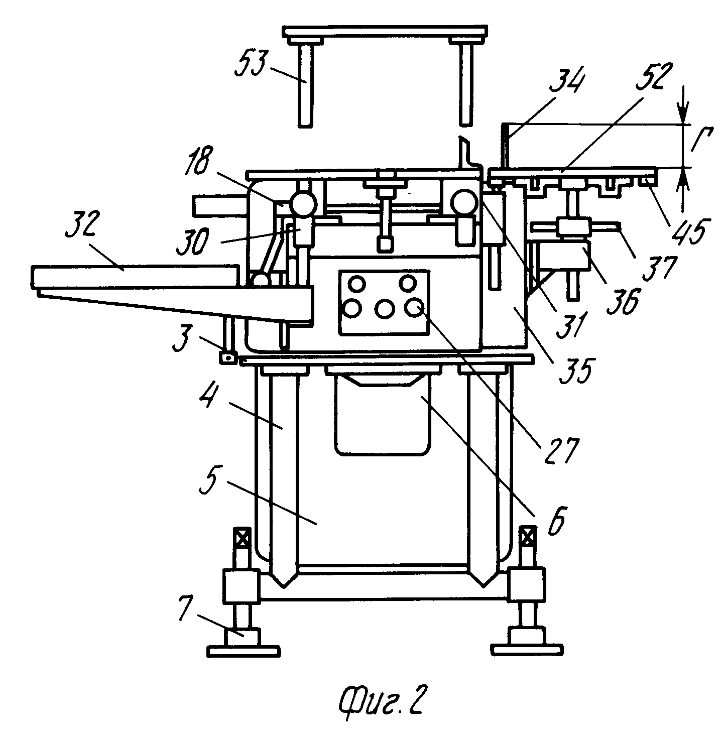Кроме того, площадь стола 38 увеличивают с помощью съемного стола 53, который устанавливается через отверстия В и Д в столах 10 и 24 и закрепляется на необходимой высоте во втулках 29 и 30 (при этом дополнительный стол 32 должен быть снят).