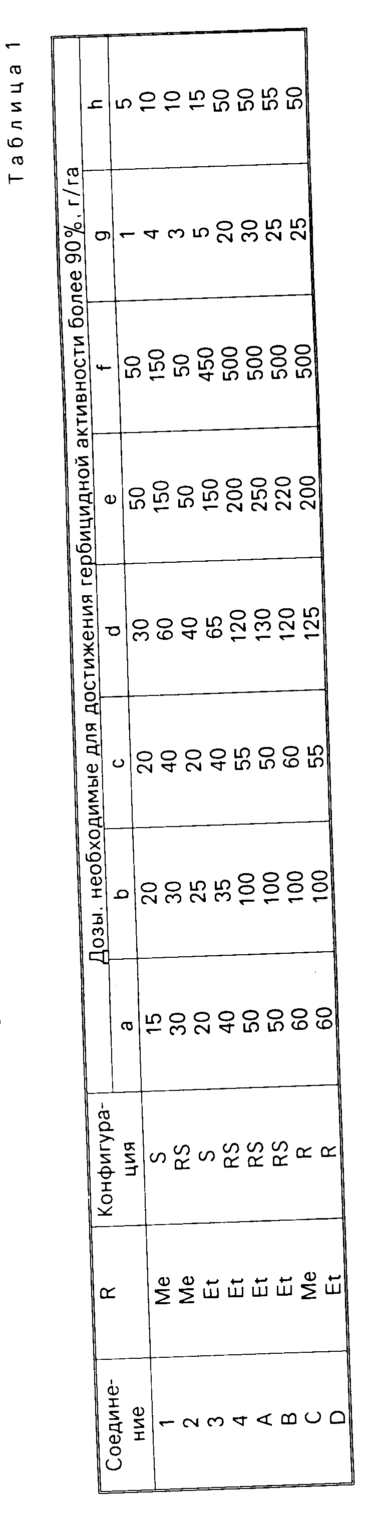 (г/га), при которых гербицидная активность превышает 90% в случае (RS)-изомера в 1,5-3, а в случае (R)-антипода в 3-10 раз выше, чем при использовании (S)-антипода. Было обнаружено,