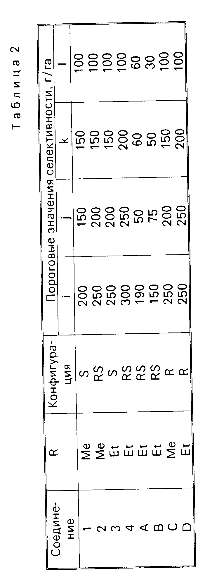 и D дозы, при которых гербицидная активность превышает 90% (табл.1), и пороговые расходы по селективности относительно отдельных сорняков и культурных растений (табл.2) близки между собой. Названия и