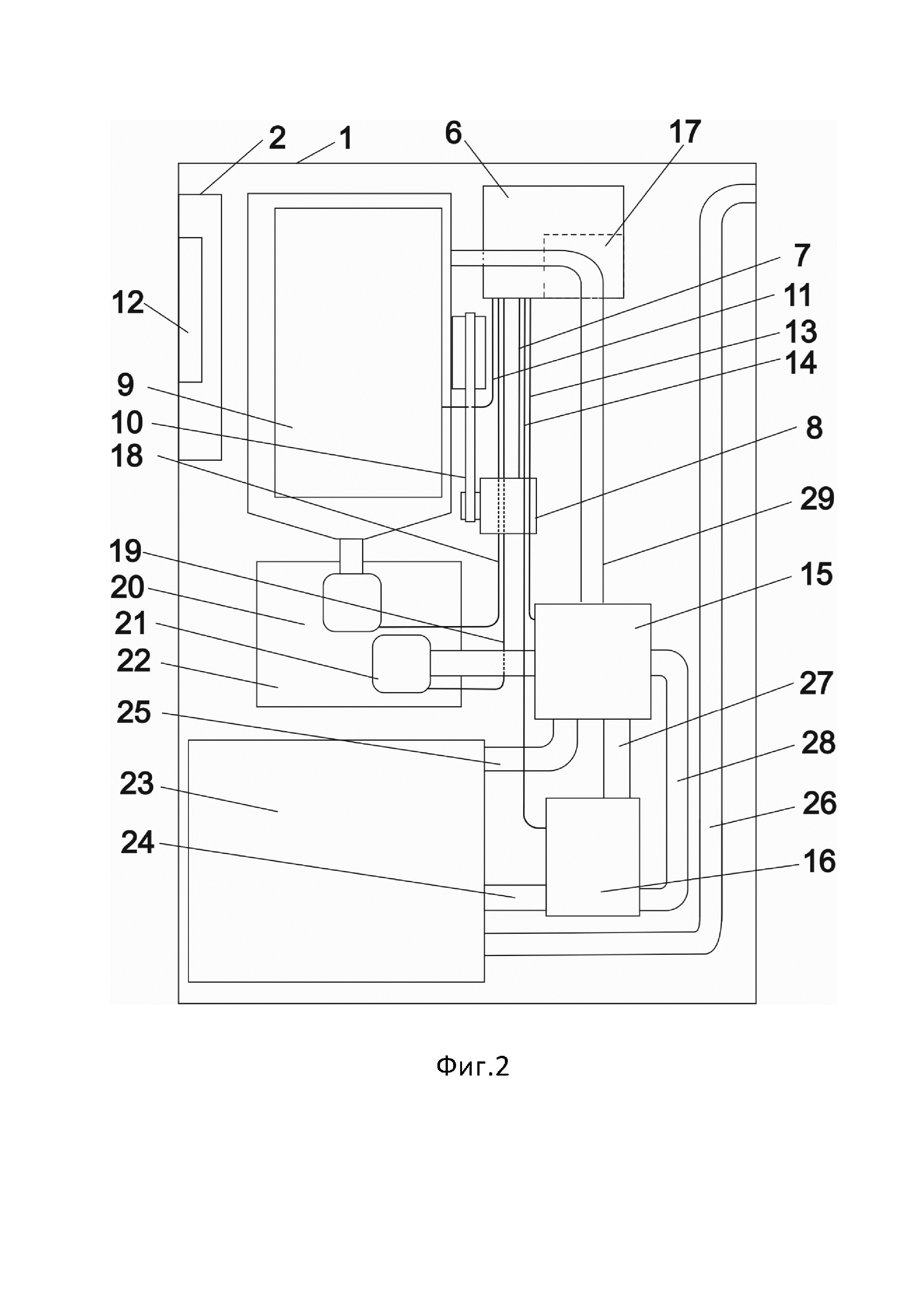 20 – первый мутнометр, 21 – второй мутнометр, 22 – фильтр, 23 – резервуар для воды, 24 – первый патрубок для воды, 25 – второй патрубок для воды, 26 – патрубок для залива воды, 27 – третий патрубок для воды, 28 – четвертый патрубок для воды,