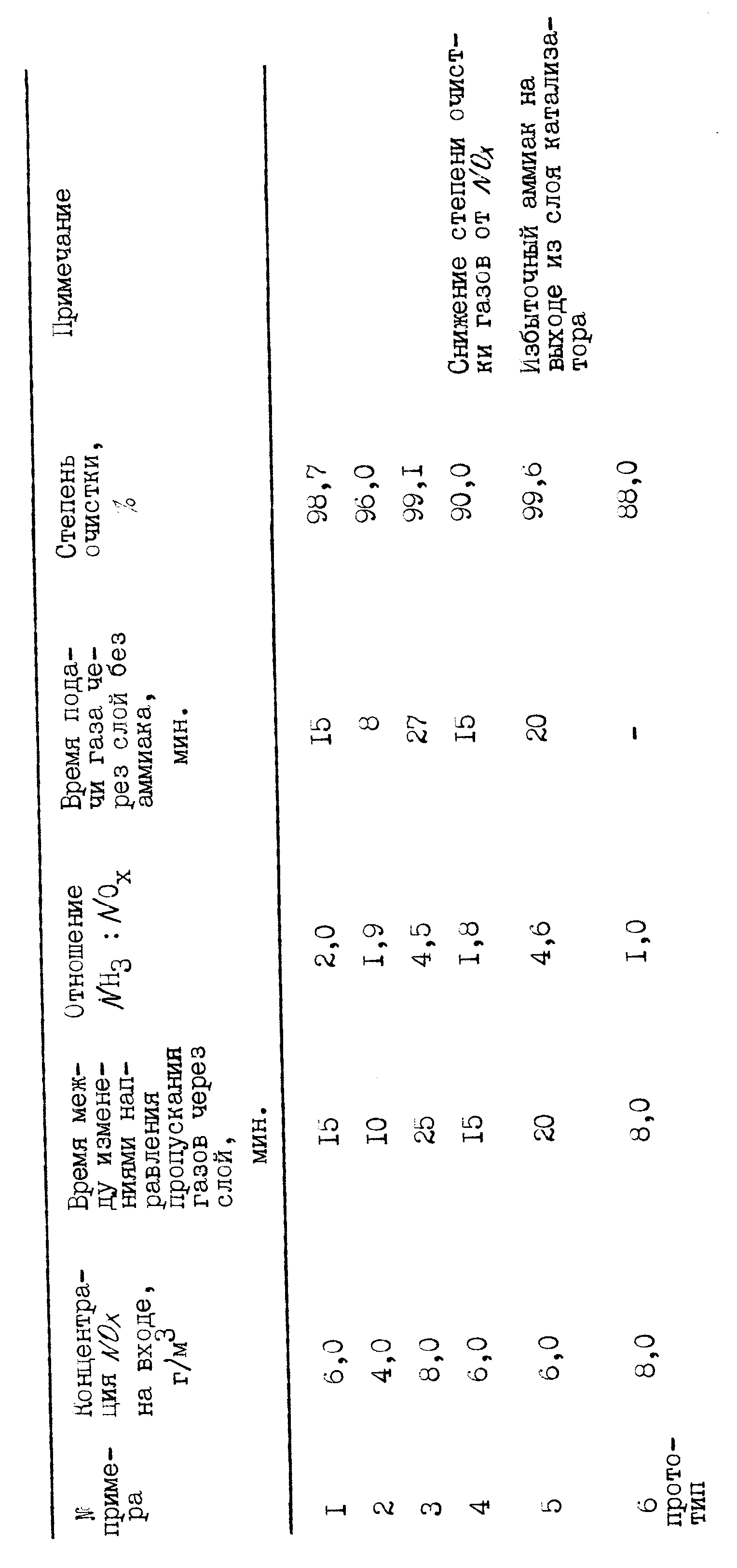 осуществления процесса, так как требует использования быстродействующей арматуры, переключающей поток газообразного аммиака. 2. Степень очистки газов от оксидов