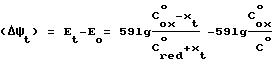 где C° ox,C°red концентрации окисленной и восстановленной форм ОВС до начала реакции. При этом значении рН соотношение объемов исследуемой пробы и ОВС, температура подбираются таким образом, чтобы скачок потенциала находился в пределах 10 120 мв. Нижняя граница (10 мв) связана с точностью измерения потенциала на потенциометрической установке, верхняя граница (120 мв) связана с опасностью нарушения равновесия и возникновения неопределенных смешанных потенциалов.