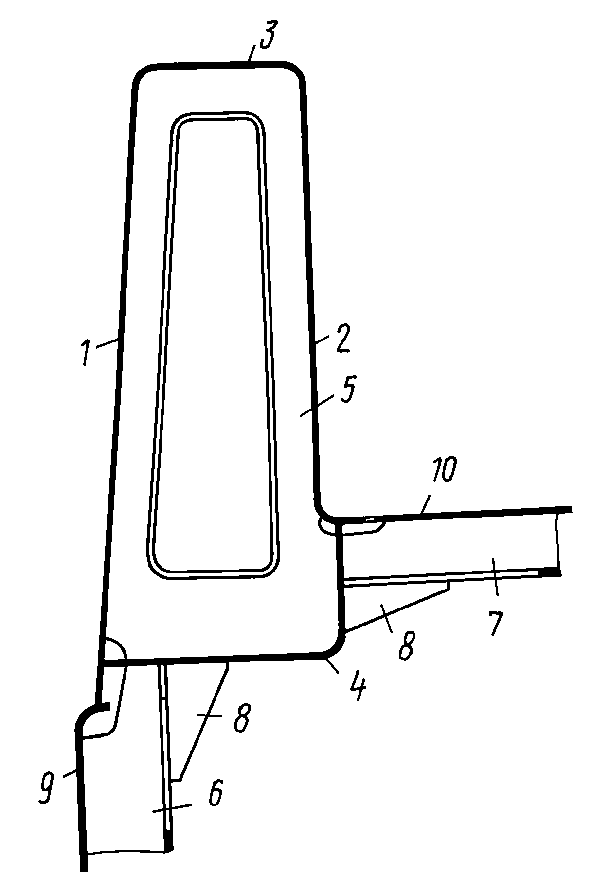 сечением, внутри которой установлены контрфорсы в плоскостях шпангоутов. Кроме того, наружная стенка фальшборта наклонена относительно внутренней стенки, которая установлена
