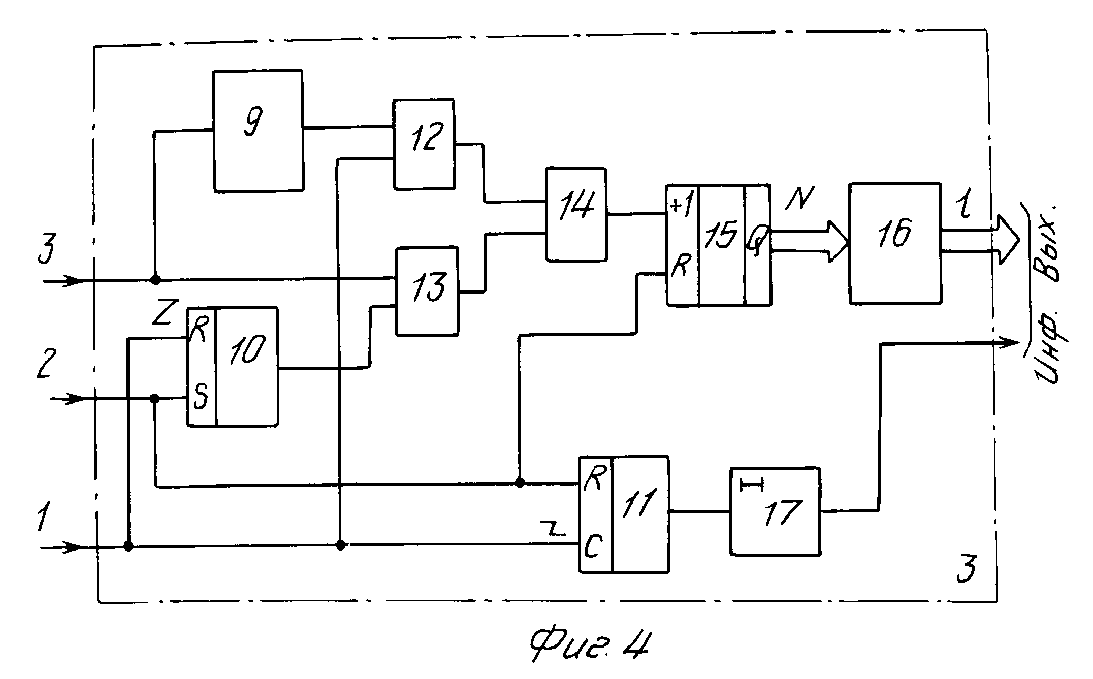 происходит подсчет количества тактовых импульсов частотой f, проходящих с третьего входа блока 3 через открытый элемент И 13 и на счетный вход счетчика 15 (фиг. 4).