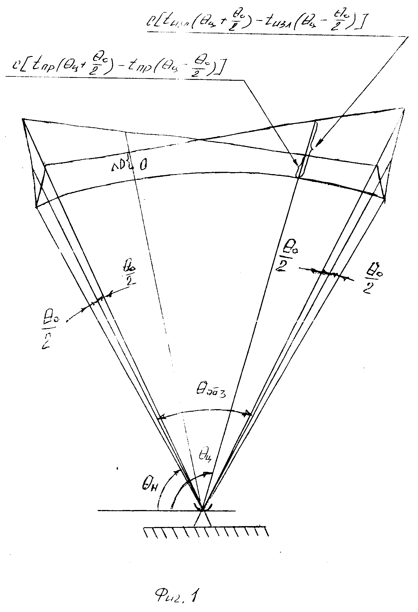 априорно известных временных законов сканирования антенны при излучении tизл(θ) и приеме tпр(θ) сигнала осуществляют путем решения следующего уравнения: Сущность способа