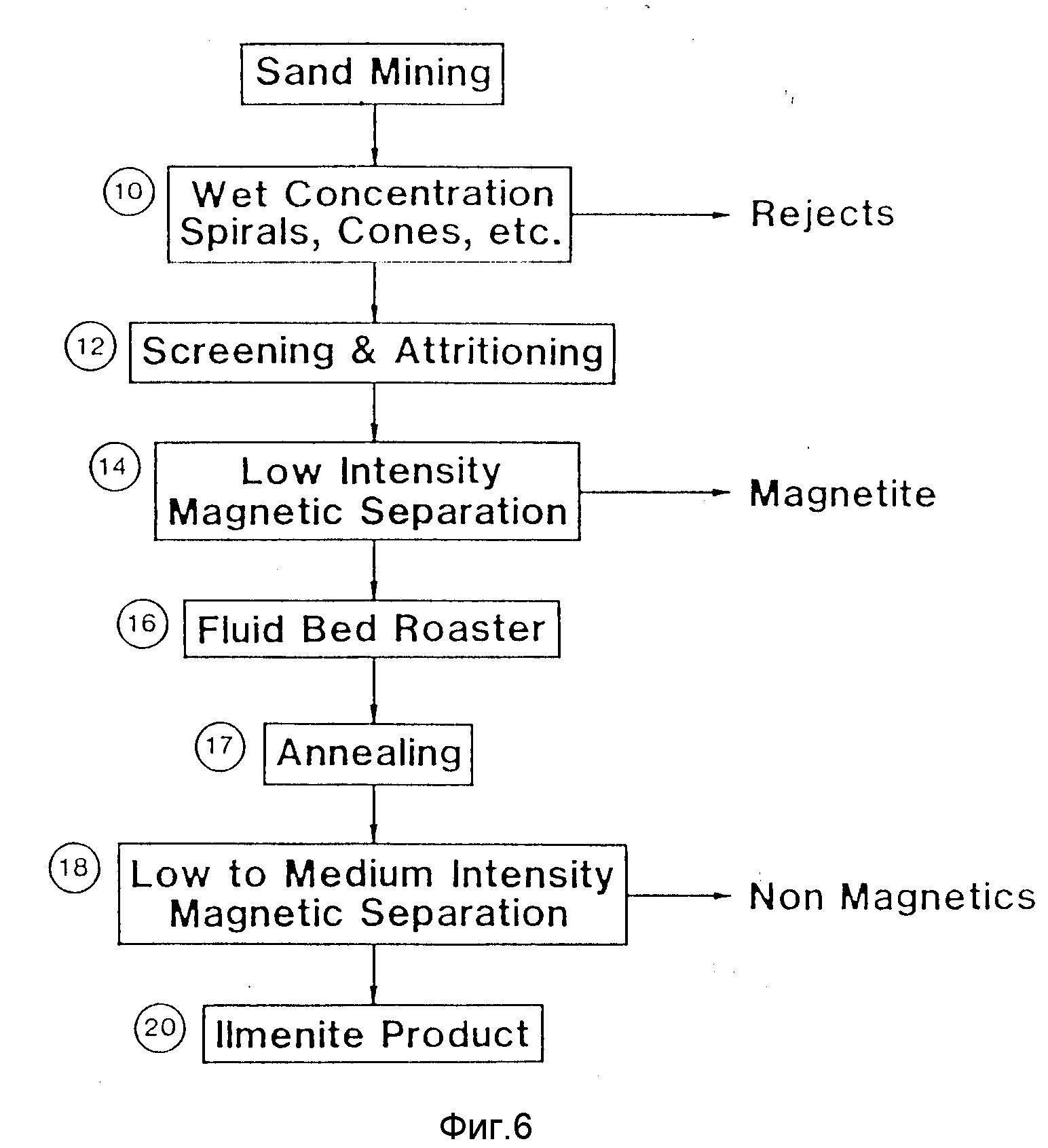 атмосфере с повышенным содержанием кислорода при температуре 800oC в течение 40 мин. Эта операция повышает магнитные свойства ильменита, благодаря чему появляется возможность осуществления