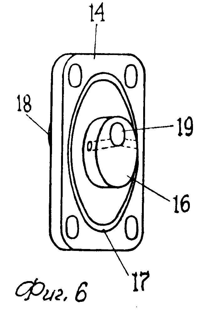 стенок и гильзы. С наружной стороны передняя по фиг. 5 (левая по фиг.8) крышка имеет соосное смещенному валу коническое