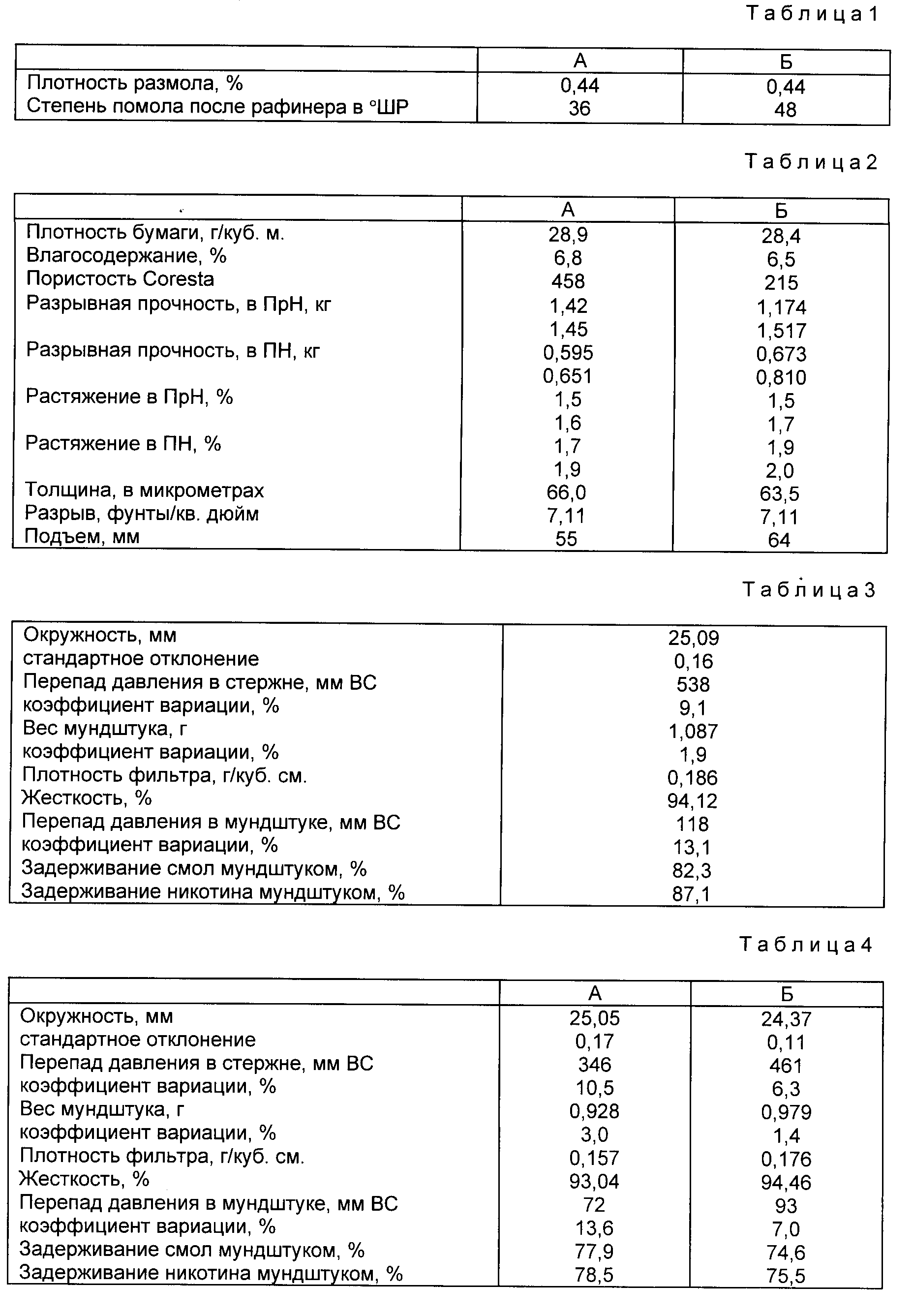 себе конструкции сигарет, отличные от тех, что в качестве примера приведены выше. Преимущество изобретения состоит в том, что сигареты с низким выходом смол могут быть изготовлены при низкой степени