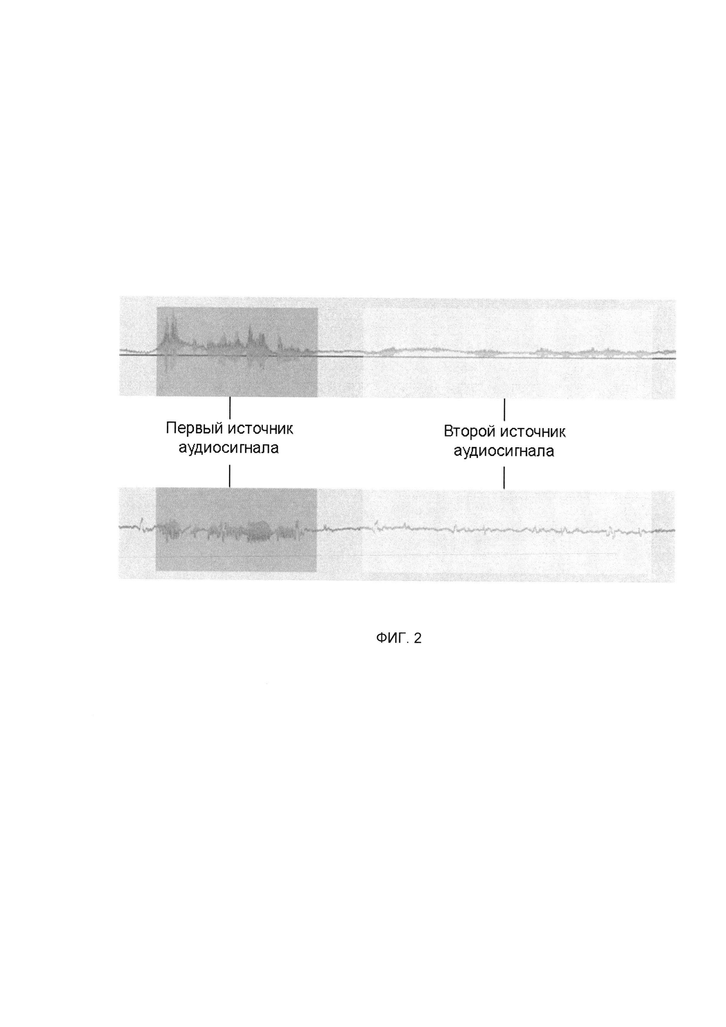 1. Аудиобейдж, содержащий размещенные в едином корпусе и соединенные между собой один микрофон, акселерометр и вычислительное устройство, при этом вычислительное устройство выполнено с возможностью получения синхронных данных цифрового аудиосигнала и принятых от акселерометра данных механических колебаний поверхности тела для: определения характеристического значения для механических колебаний, причем упомянутое характеристическое значение характеризует значение мощности сигнала механических колебаний, возникающих вследствие произнесения звуков речи; разметки данных цифрового аудиосигнала по критерию принадлежности аудиосигнала первому или второму источнику звукового сигнала на основании анализа величины характеристического значения. 2. Аудиобейдж по п. 1, характеризующийся тем, что для определения характеристического значения для механических колебаний вычислительное устройство выполнено с возможностью: выполнения спектрального анализа данных механических колебаний для получения спектра колебаний, отражающего изменение мощности механических колебаний в зависимости от времени; анализа величины мощности, приходящейся на по меньшей мере один участок спектра сигнала механических колебаний, характерного для колебаний, возникающих вследствие произнесения звуков речи; выбора величины мощности, приходящейся на по меньшей мере один участок спектра сигнала механических колебаний, в качестве характеристического значения для характеристики механических колебаний. 3. Аудиобейдж по п. 2, характеризующийся тем, что в качестве спектра сигнала, характерного для колебаний, возникающих вследствие произнесения звуков речи, выбирается диапазон частот от 50 до 300 Гц. 4. Аудиобейдж по п. 2, характеризующийся тем, что спектральный анализ сигнала механических колебаний выполняется посредством разложения сигнала механических колебаний в ряд Фурье. 5. Аудиобейдж по п. 1, характеризующийся тем, что по меньшей мере один микрофон реализован на базе МЭМС технологии. 6. Аудиобейдж по п. 1, характеризующийся тем, что вычислительное устройство выполнено с возможностью разделения данных механических колебаний на временные ряды. 7. Аудиобейдж по п. 1, характеризующийся тем, что для разметки данных цифрового аудиосигнала по критерию принадлежности аудиосигнала первому или второму источнику звукового сигнала на основании анализа величины характеристического значения сигнала механических колебаний вычислительное устройство выполнено с возможностью: сравнения характеристического значения с заранее заданным пороговым значением; разметки блока данных цифрового аудиосигнала как относящемуся к первому источнику звукового сигнала, если величина характеристического значения сигнала механических колебаний оказывается больше порогового значения; разметки блока данных цифрового аудиосигнала как относящемуся ко второму источнику звукового сигнала, если величина характеристического значения сигнала механических колебаний оказывается меньше порогового значения.